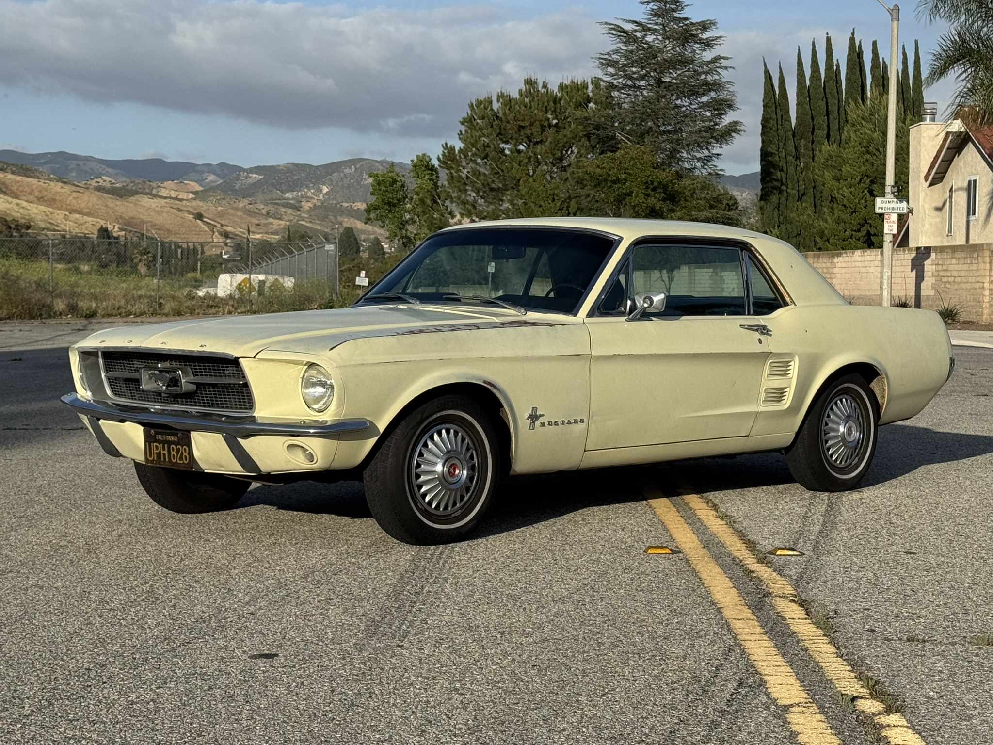 Built at Ford's San Jose assembly plant on June 6, 1967 and delivered new through Wayne Gossett Ford in Redlands, CA, this T-Code coupe is a true survivor and ready for the next owner. With rust-free body and floors, no signs of accidents or body work, and the original paint, this car has lived its best California life. According to the owner's manual, the first owner lived in Yucca Valley, CA, with the first three service records are noted in the owner’s manual. It must have been garaged most of its life, which helped preserve its floors and body. It carries its original California black-and-yellow plates, a clean California title, and current registration paid through May 2027.