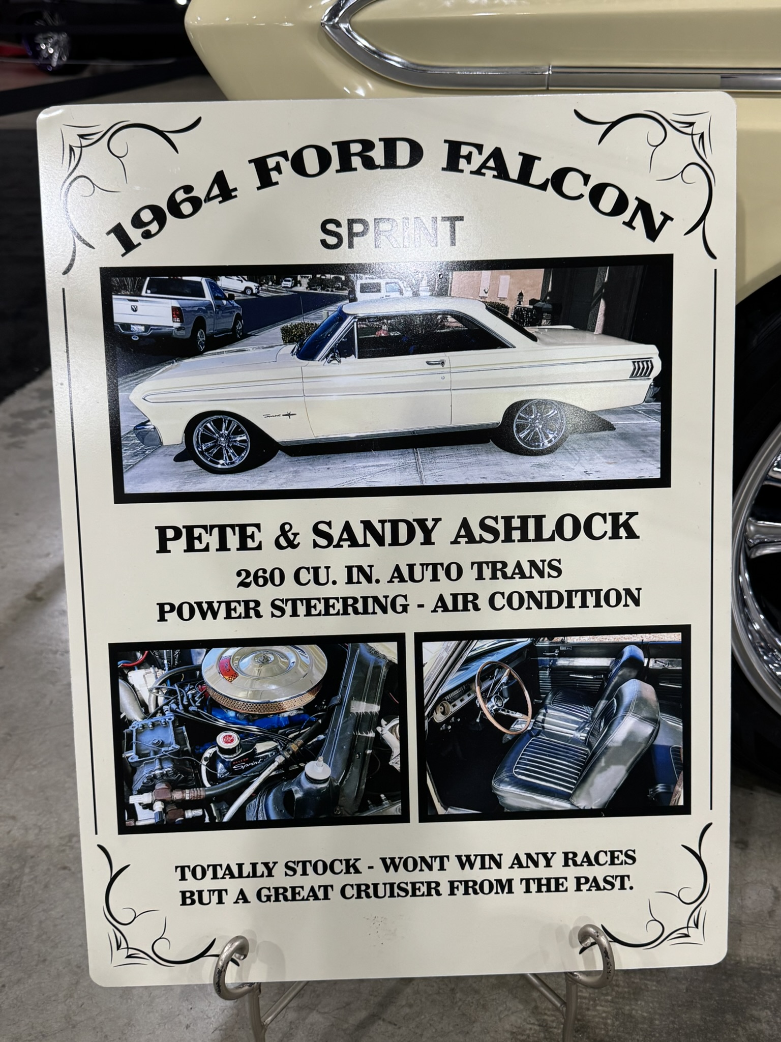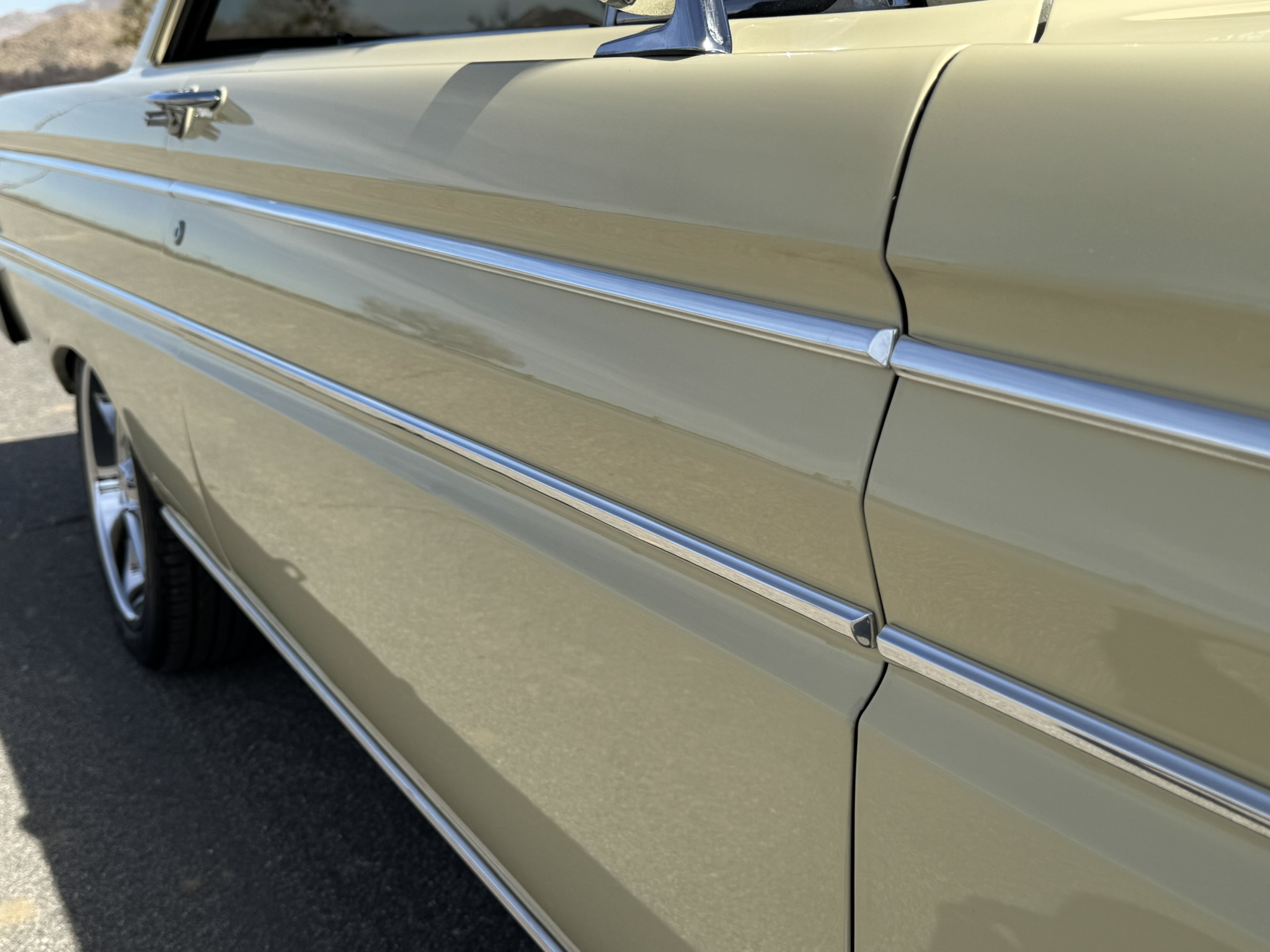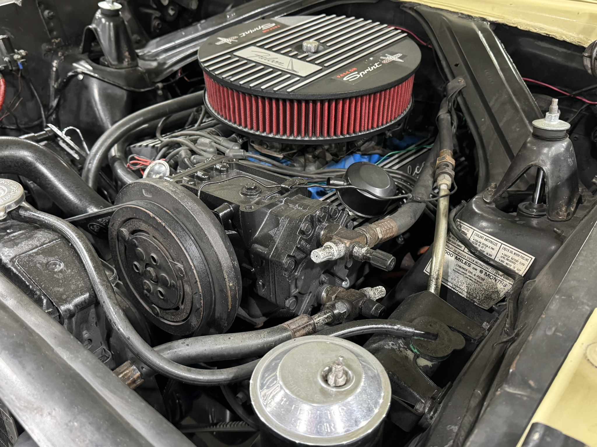 The current owner purchased this Sprint in January 2025 from Streetside Classics in Fort Worth, TX. The car was in good driver condition but needed cosmetic updates and mechanical sorting to satisfy the new owner’s standards. As a Navy veteran who owned a 1964 Falcon before being sent overseas, the owner was drawn to this Sprint as the perfect cruiser - a car meant to be driven and enjoyed rather than trailered and stored. Over the past 14 months, he has systematically upgraded and refined the car with fresh paint, re-polished trim, interior improvements, suspension work, and mechanical sorting. The result is a turn-key driver that he regularly cruises, including a 400 mile round trip to Las Vegas and the 90 mile round trip to the Grand National Roadster Show in Pomona, CA where it arrived under its own power while other cars rolled off trailers. The owner has always followed a “one car at a time” philosophy, so that he could truly enjoy the car and drive it anywhere, anytime, as evidenced by the 3,600 miles he drove this Falcon. He wants his last car to be a Tri-Five Chevy, so the proceeds from this Falcon will go directly into his new ride.