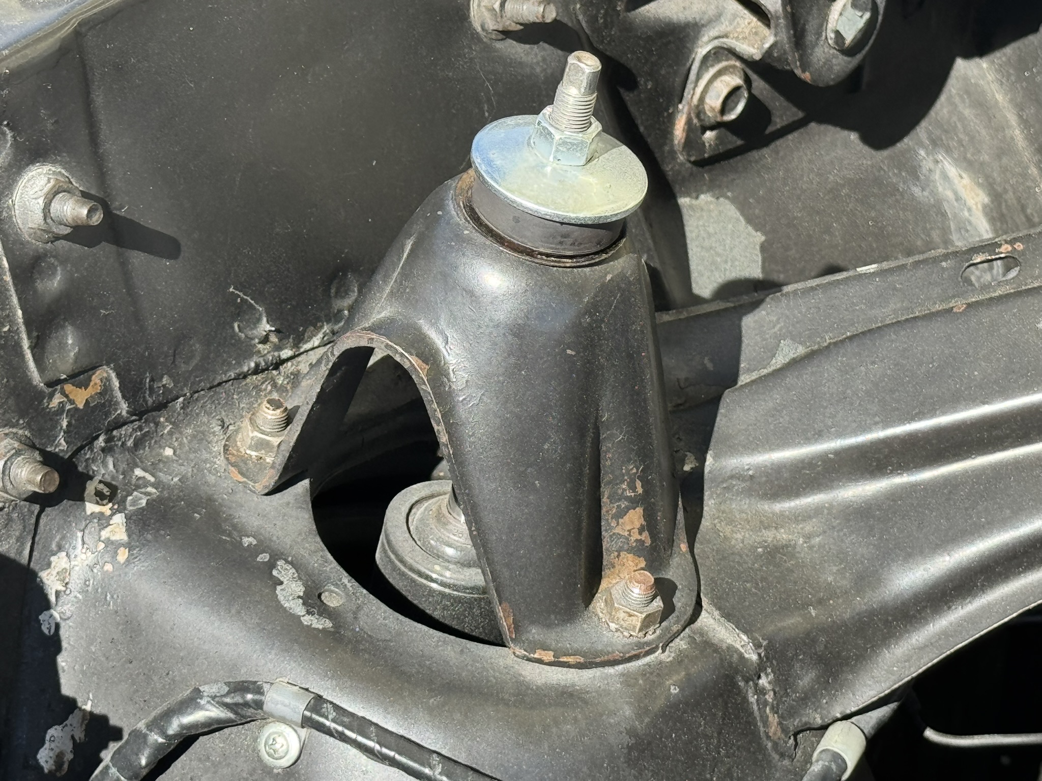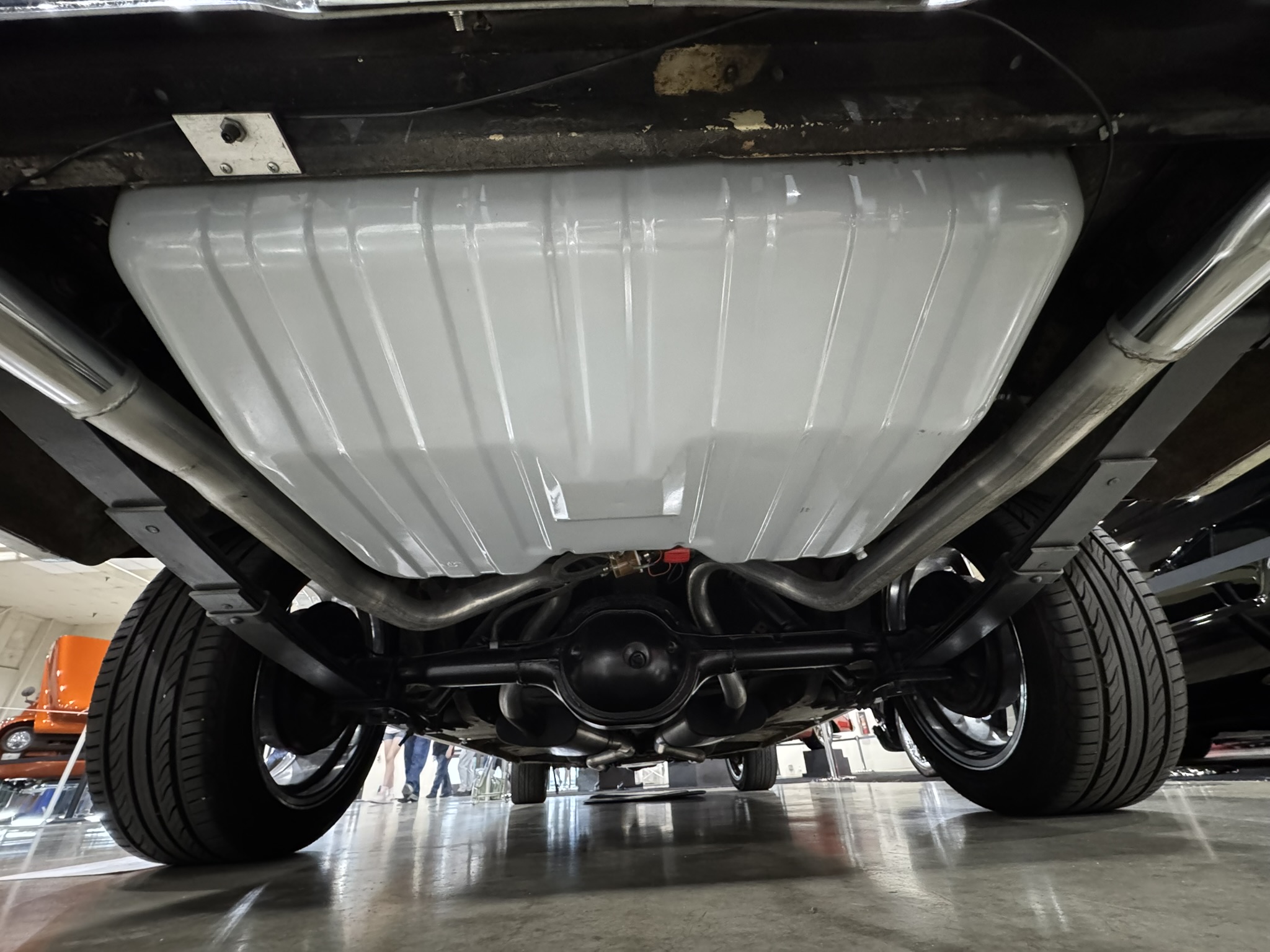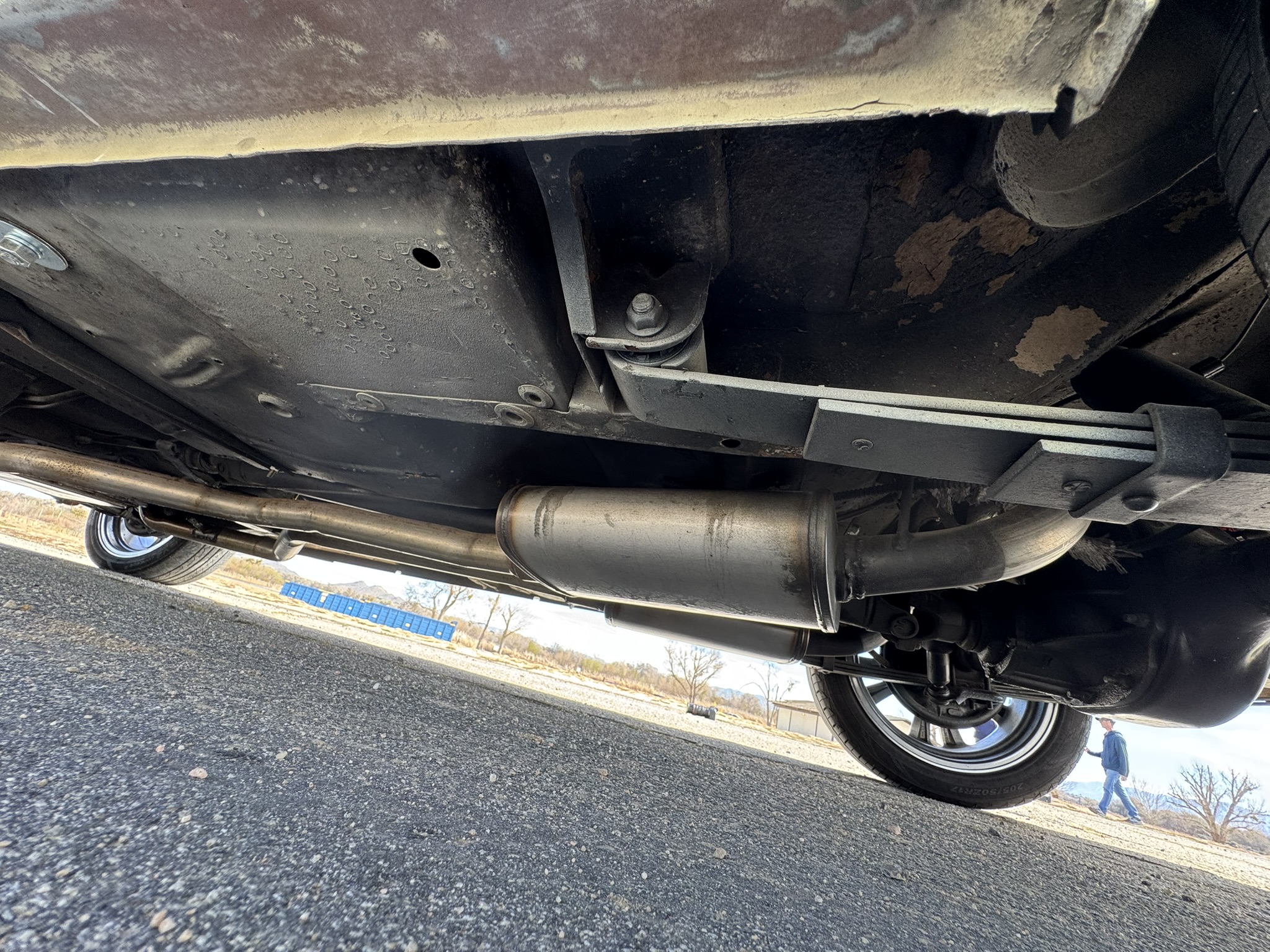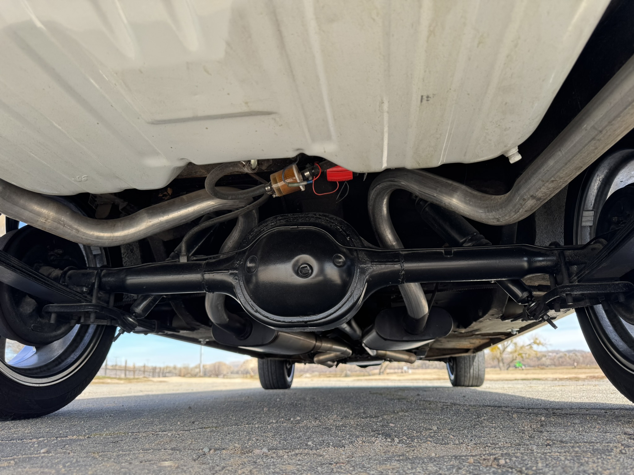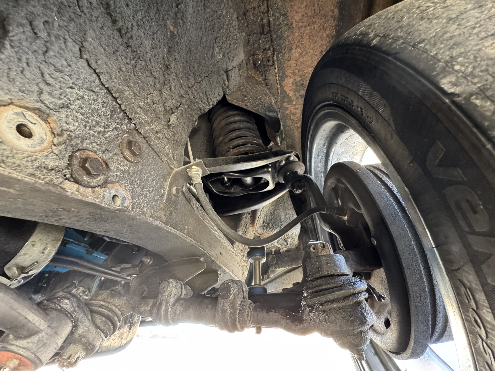 The entire front suspension was rebuilt with new upper and lower control arms, new spring perches, new strut rod bushings, and new idler arm. Factory power steering is in place with a new pump that was just installed to solve a fluid leak. New rear brake wheel cylinders were installed and pads adjusted. The car rides on 17-inch Foose wheels with Hankook 205/50R17 tires.