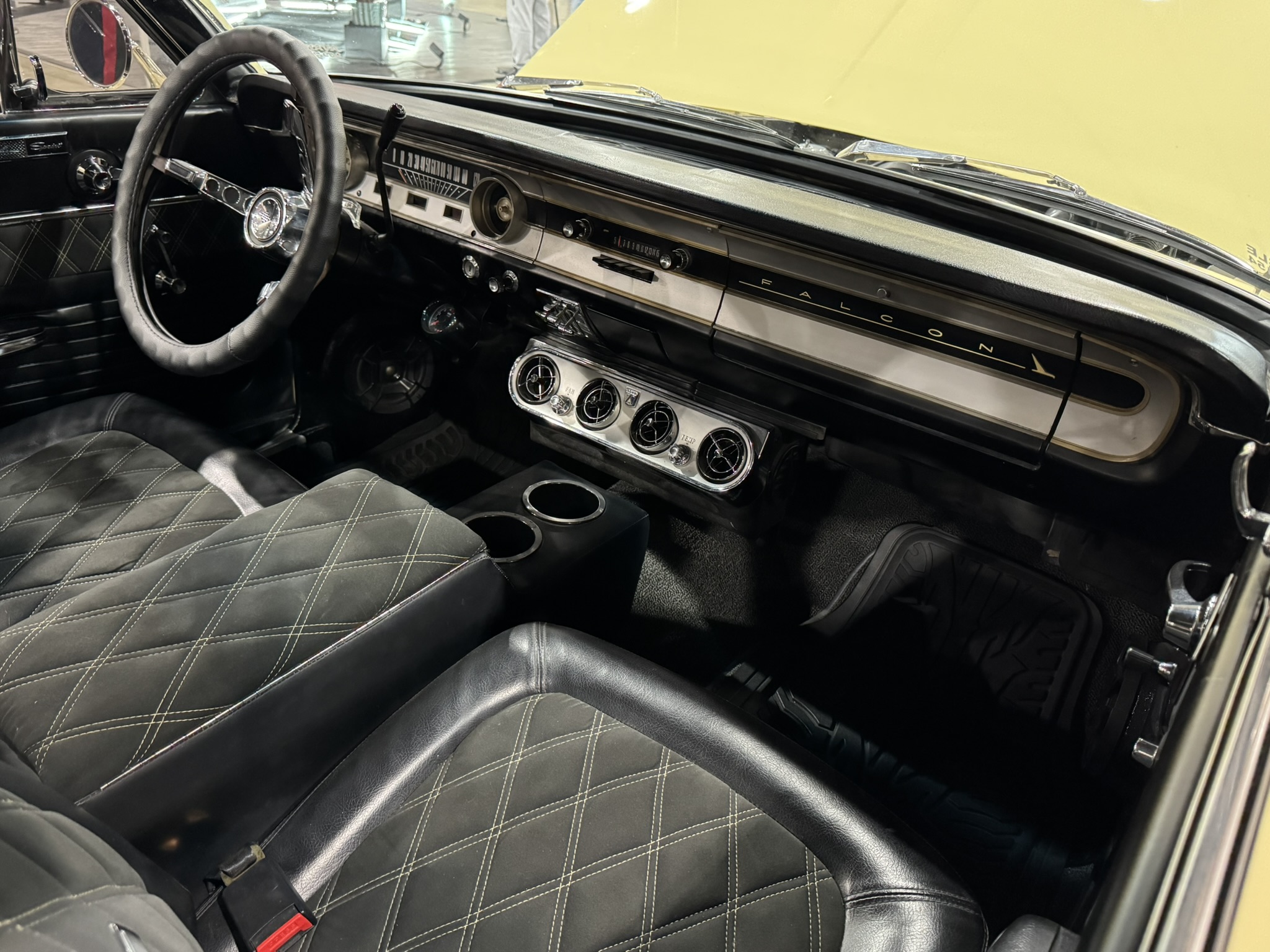 This 1964 Ford Falcon Sprint rolled off the assembly line in Atlanta, GA on October 17, 1963, wearing Phoenician Yellow paint and black vinyl bucket seat interior. The Sprint package, introduced mid-year in 1963, transformed the economy-minded Falcon into a genuine sports compact. Named to capitalize on Ford's success in international rally competition, the Sprint featured bucket seats, chassis stiffening, upgraded suspension, and Ford's new 260ci V8 - the same small-block that would power the first Mustangs just months later. Production numbers were modest, with only 17,310 Sprint hardtops built in 1964, making them considerably less common than their Mustang successors.