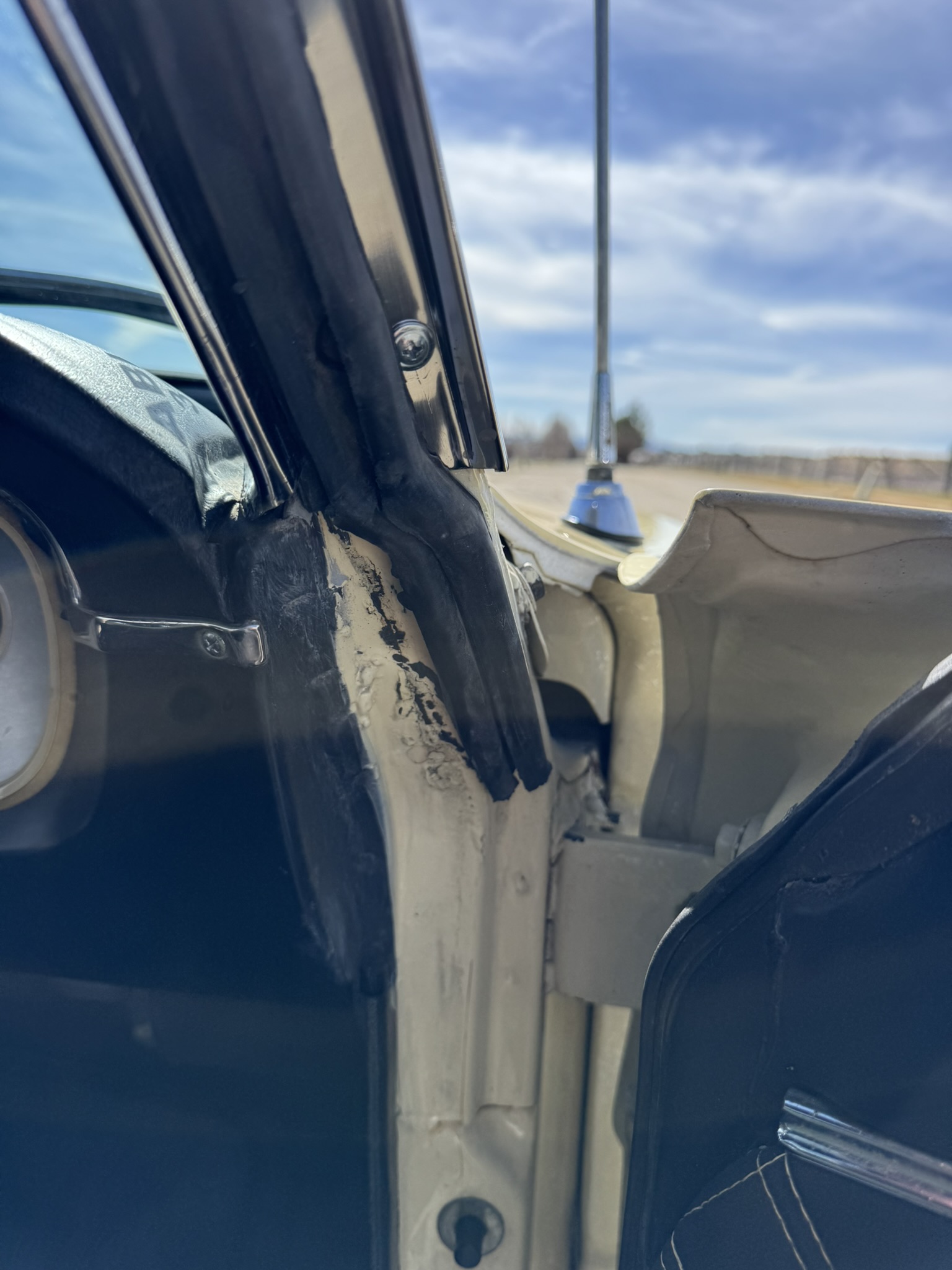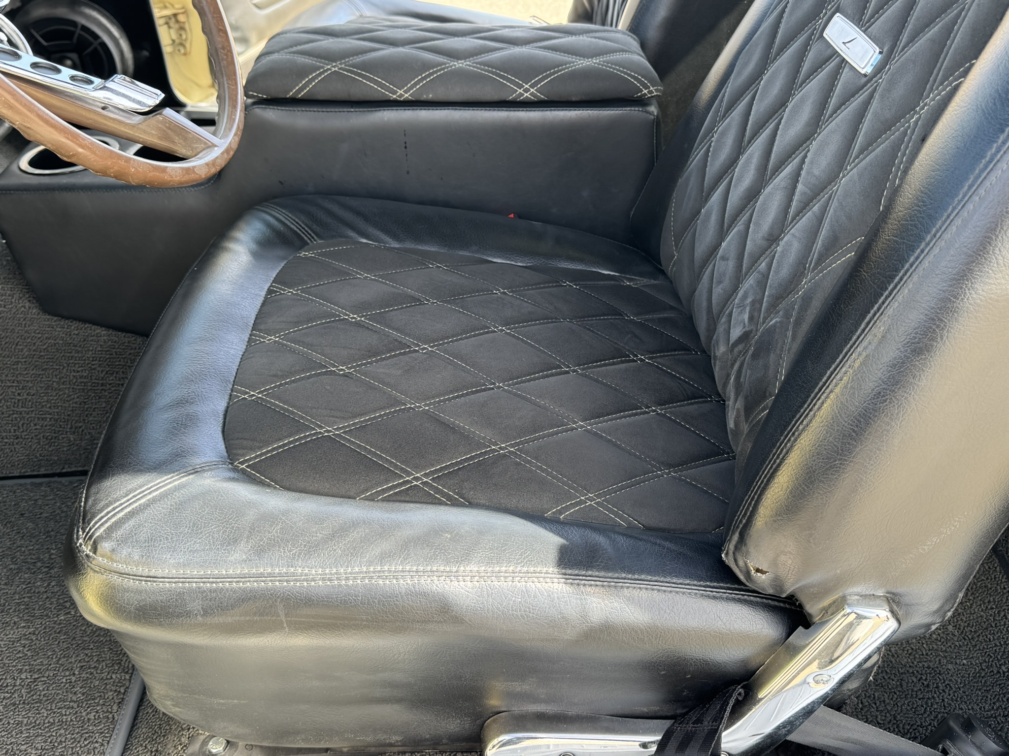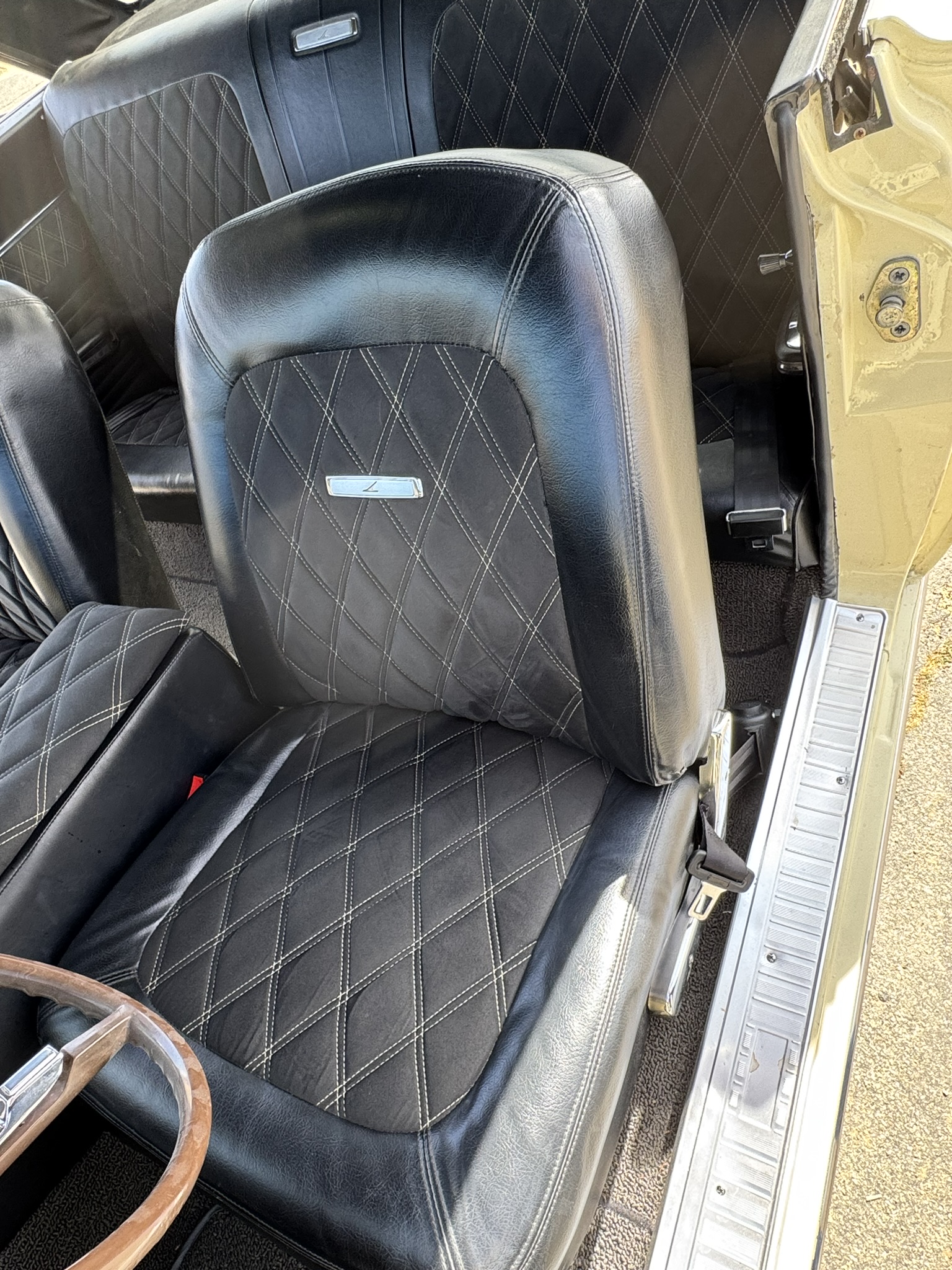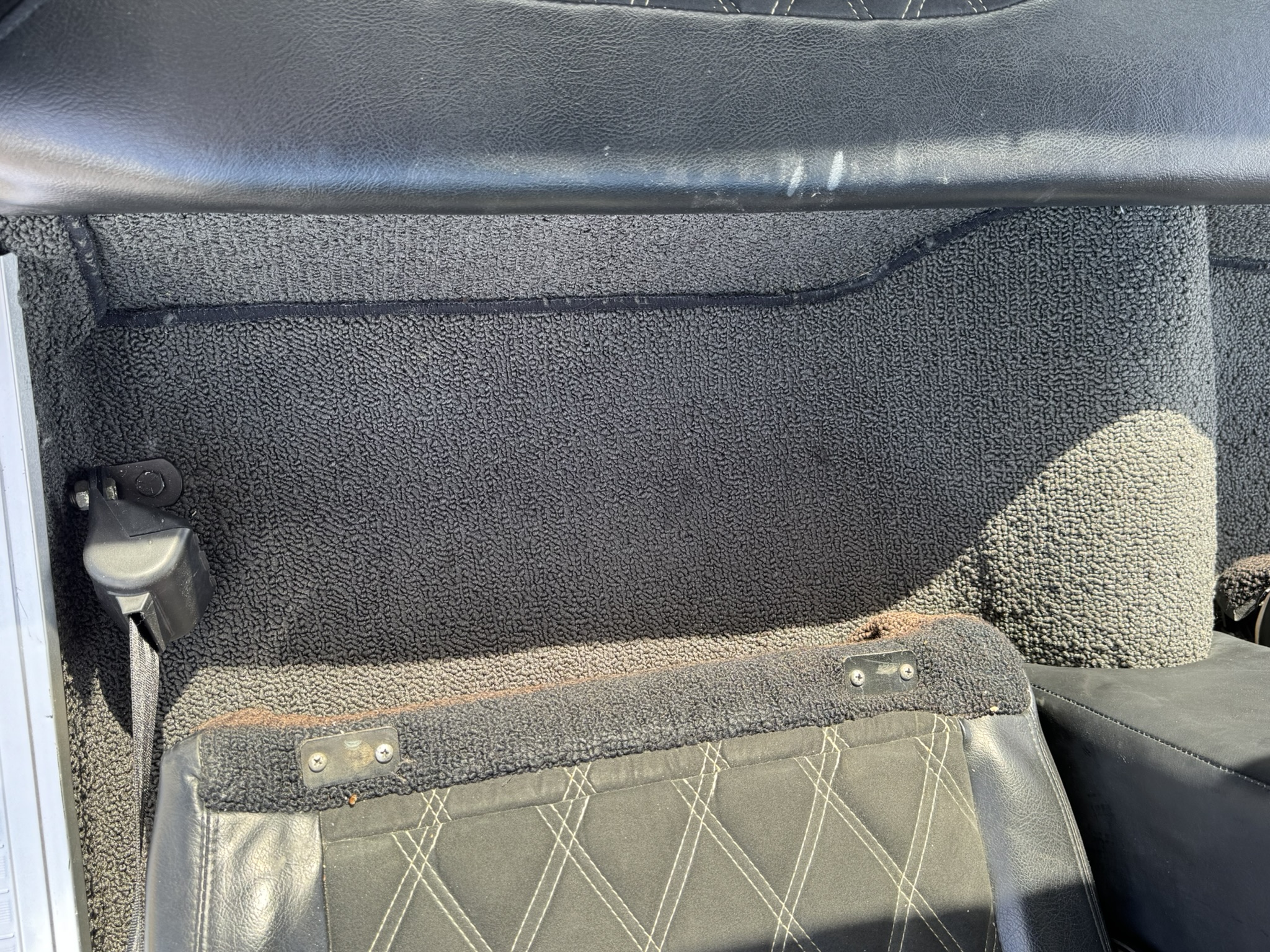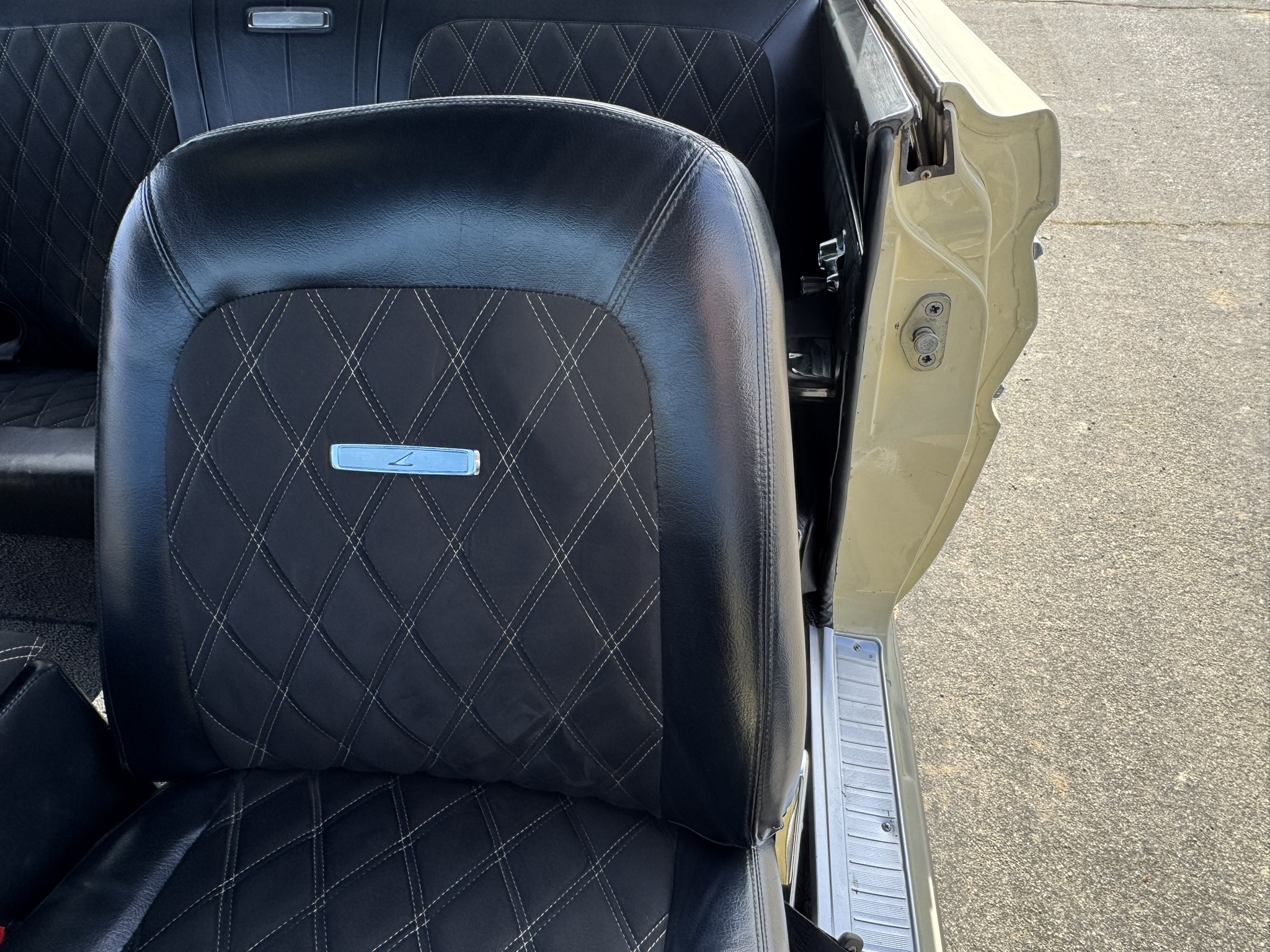 Door panels do not sit completely flush on the bottom edge. There is a small hole in the driver seat upholstery on the bottom side. There is some overspray from the re-paint as pictured.