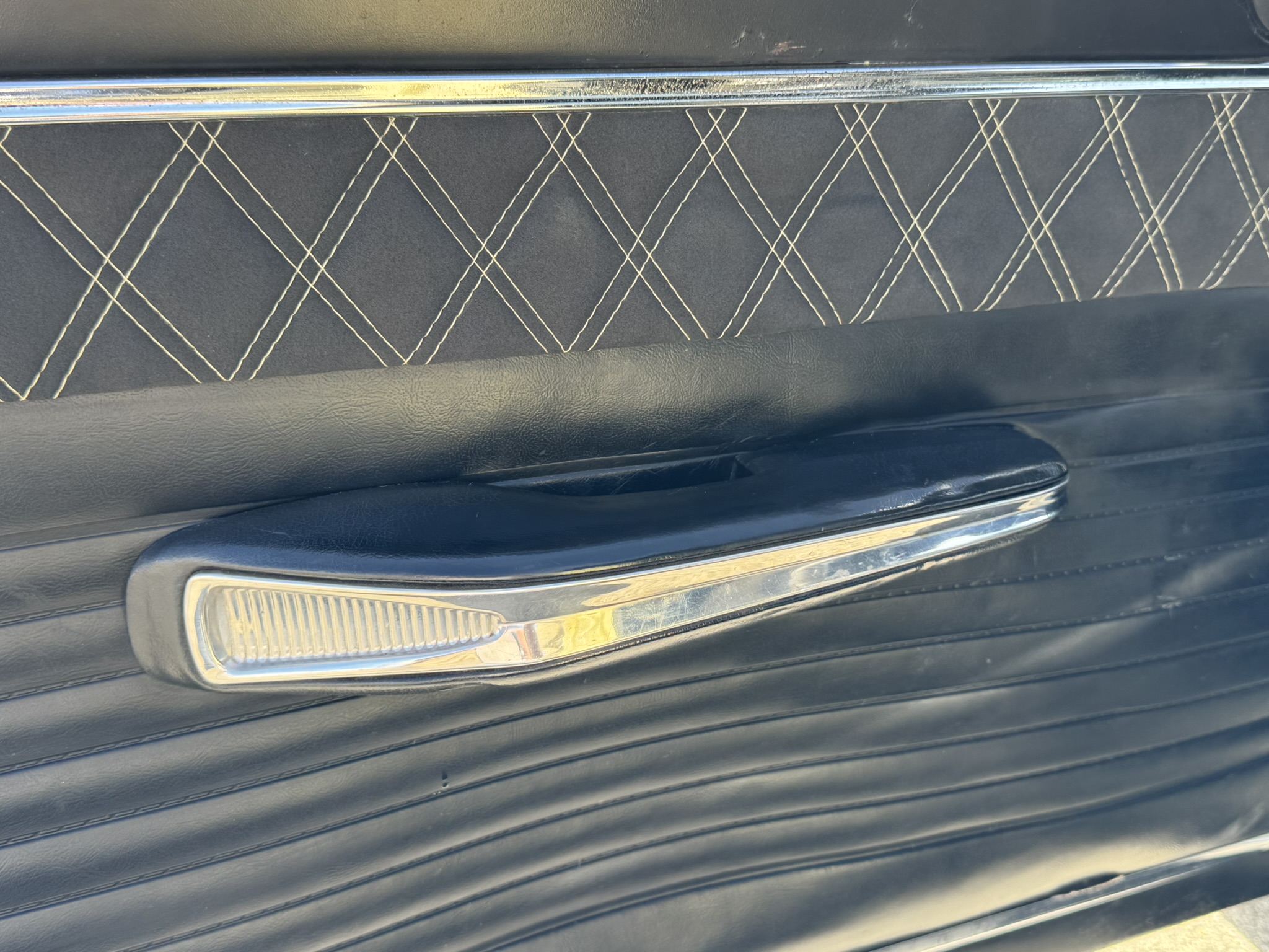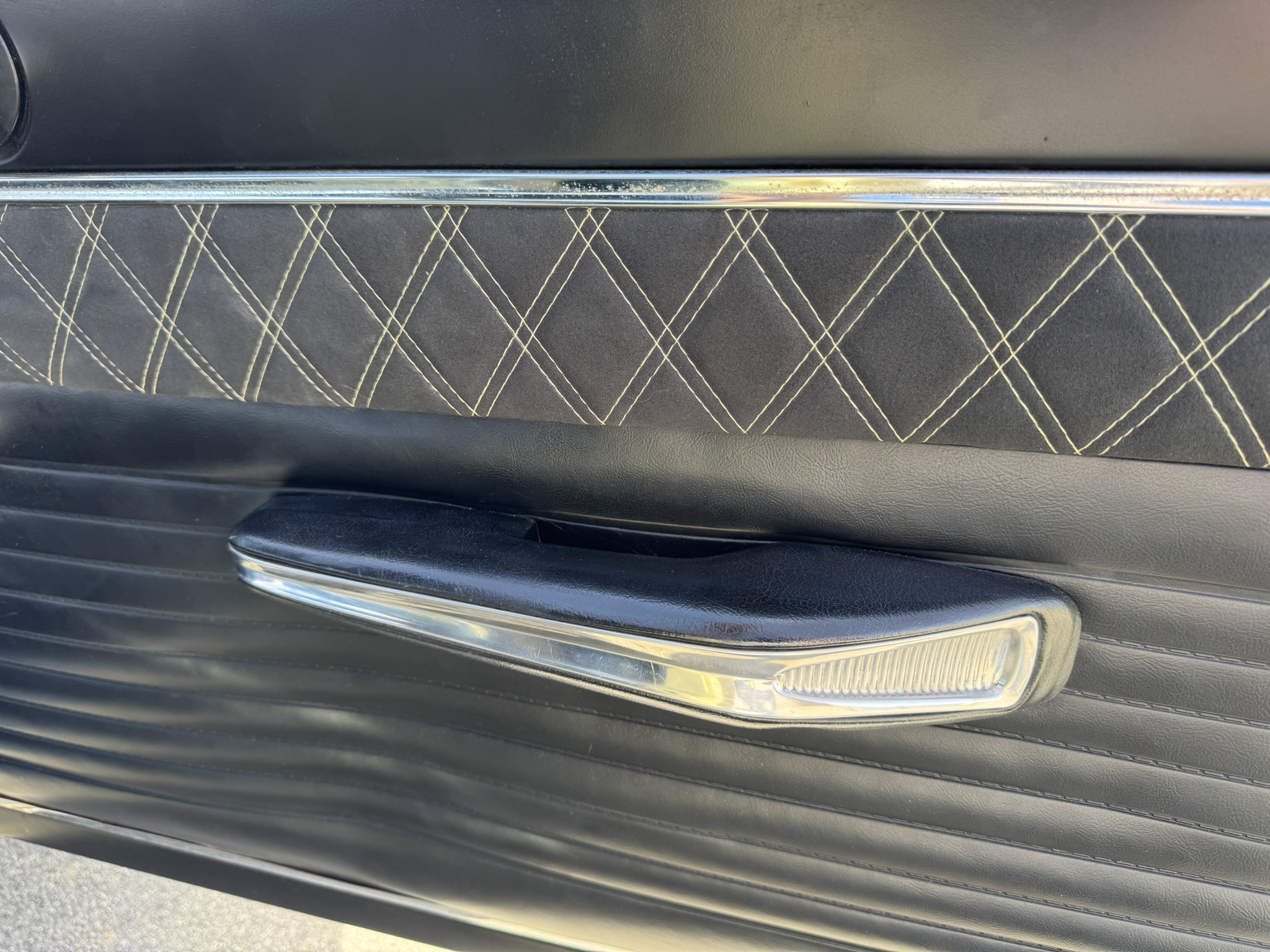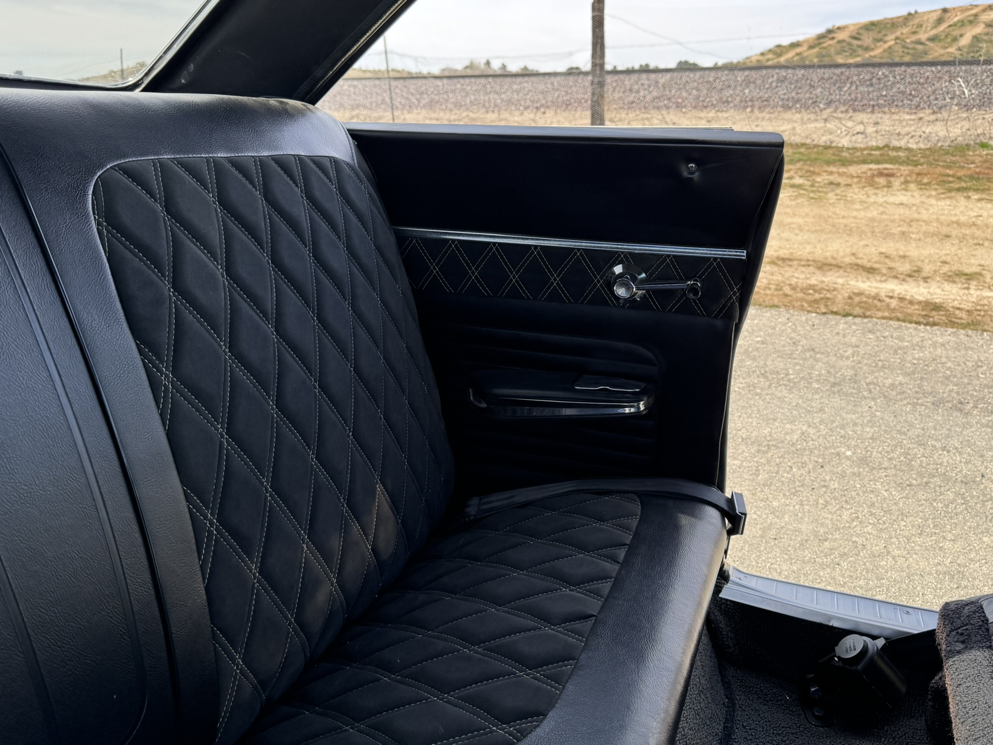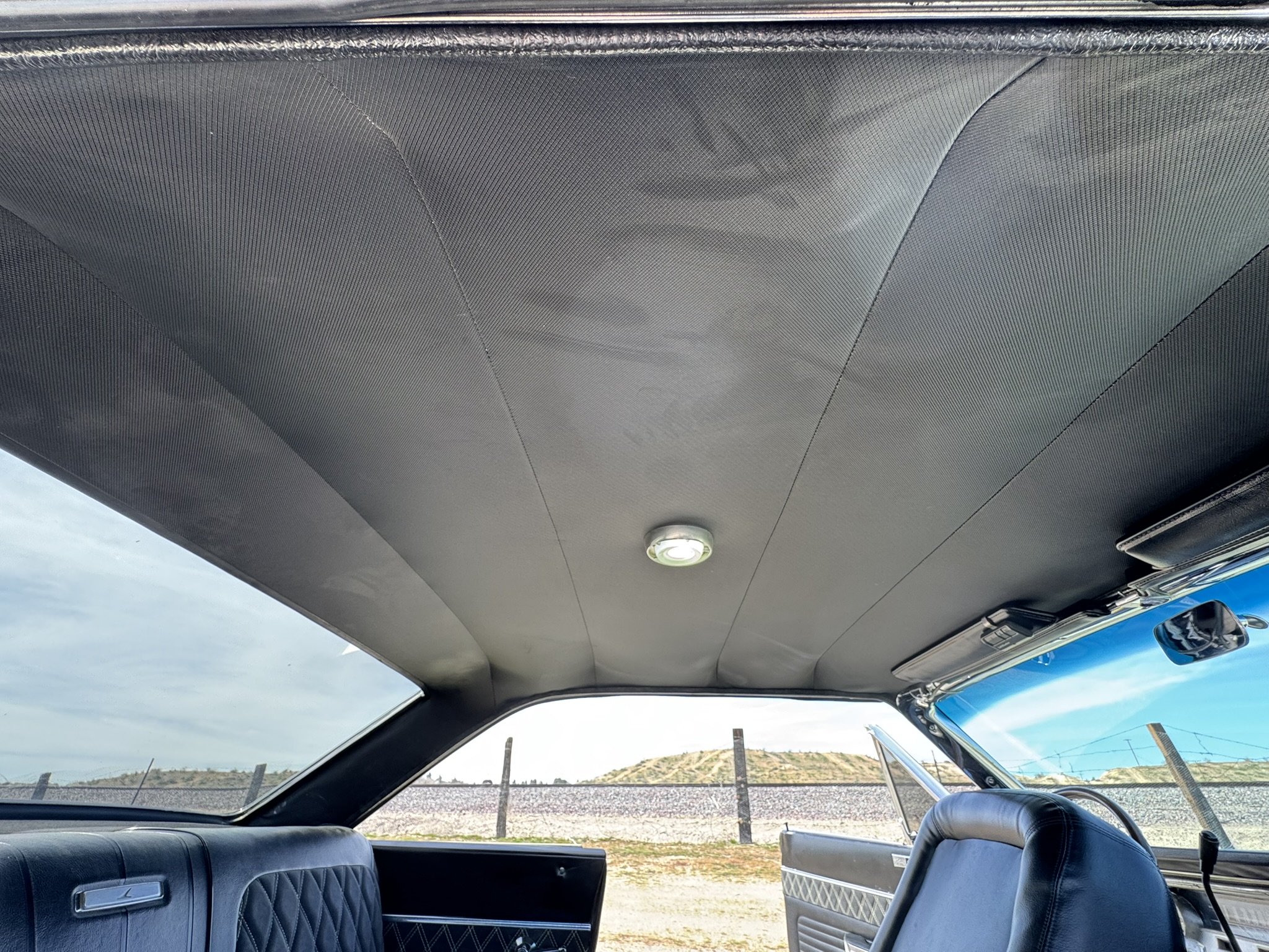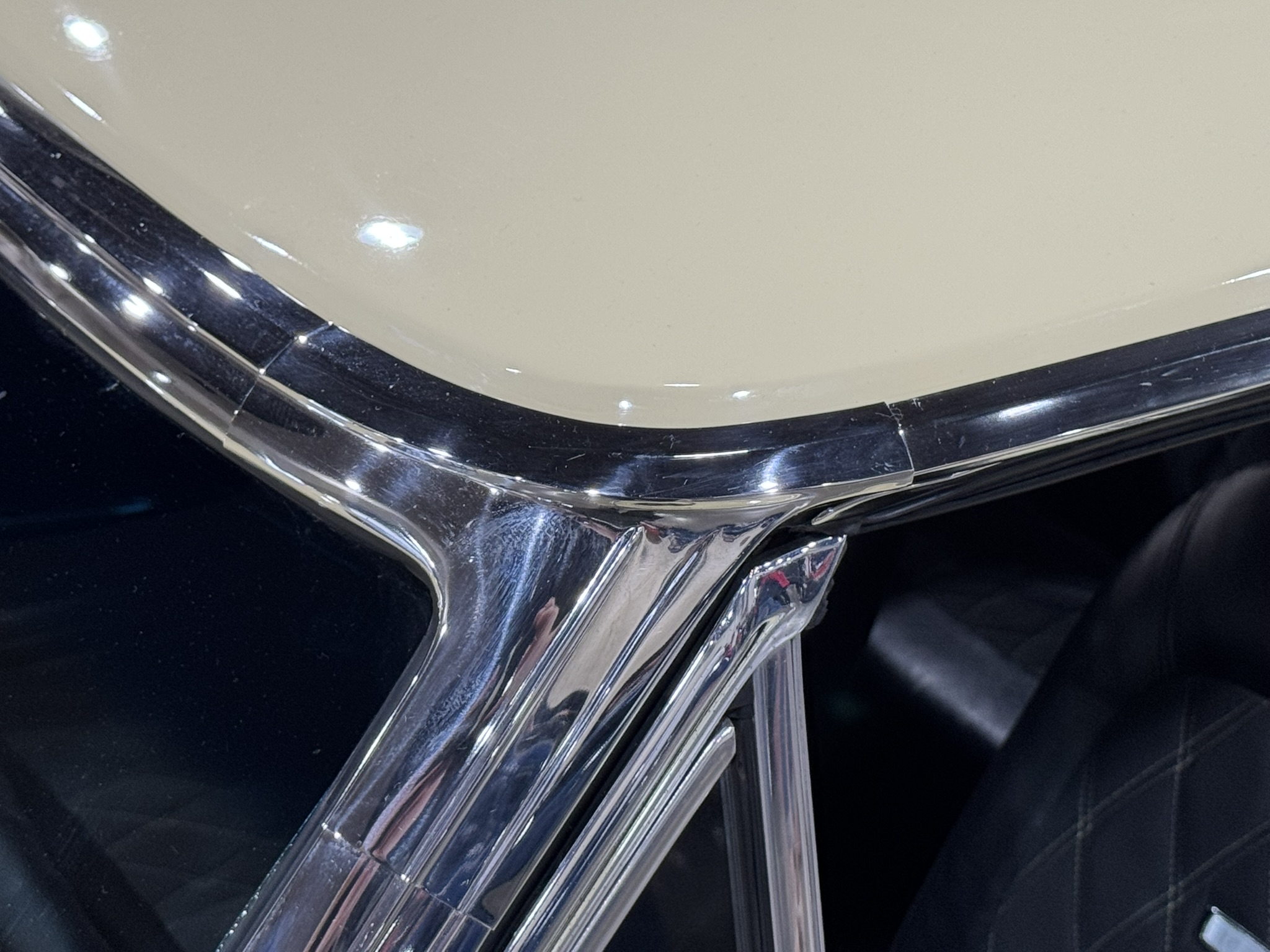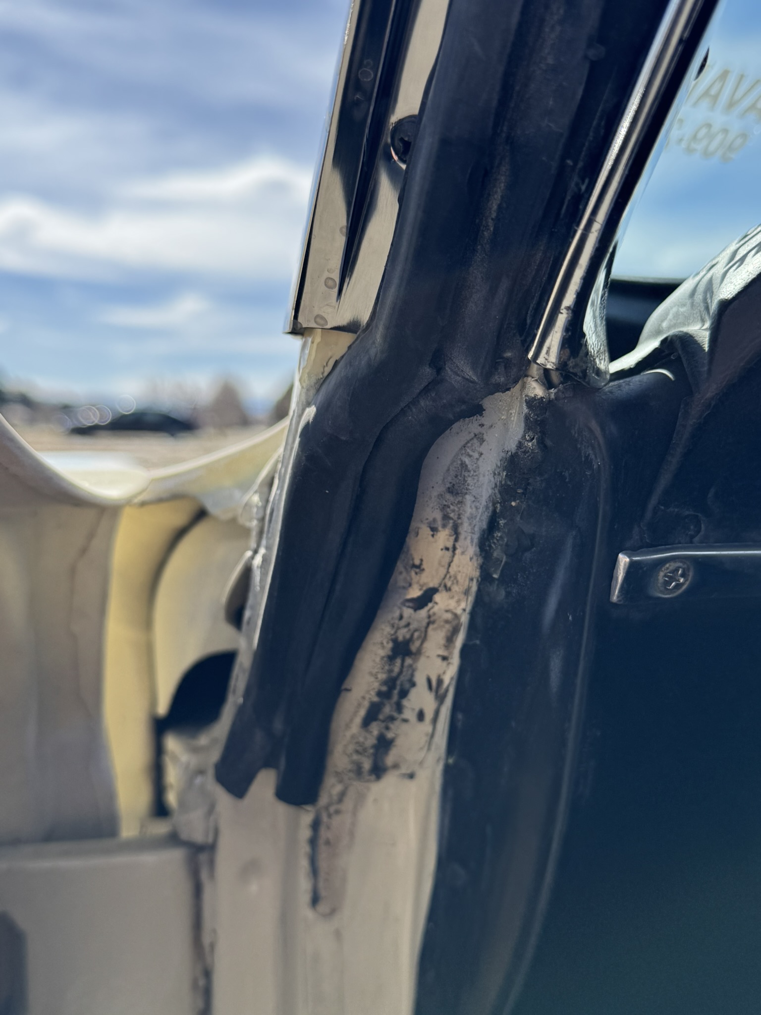Door panels do not sit completely flush on the bottom edge. There is a small hole in the driver seat upholstery on the bottom side. There is some overspray from the re-paint as pictured.