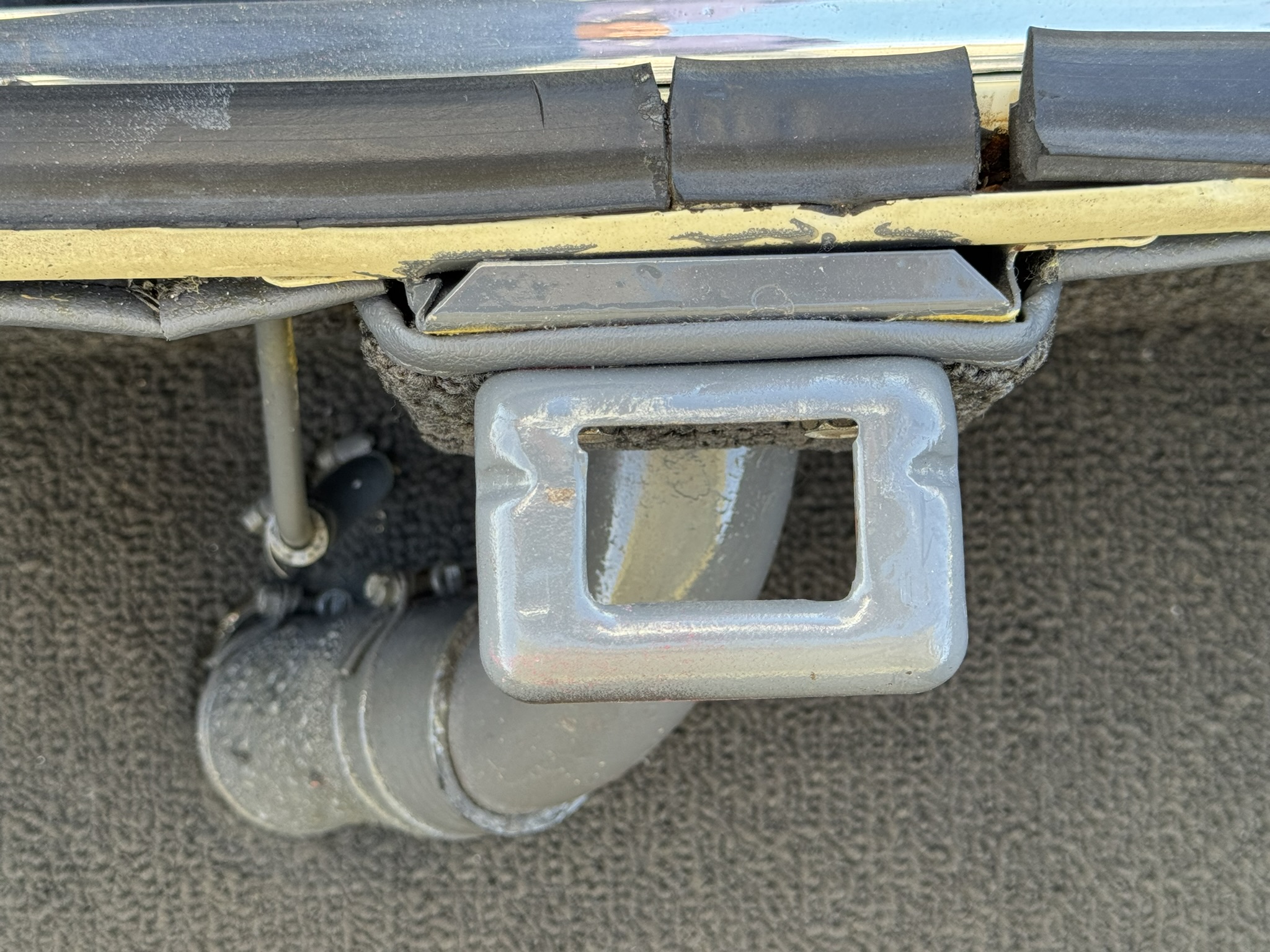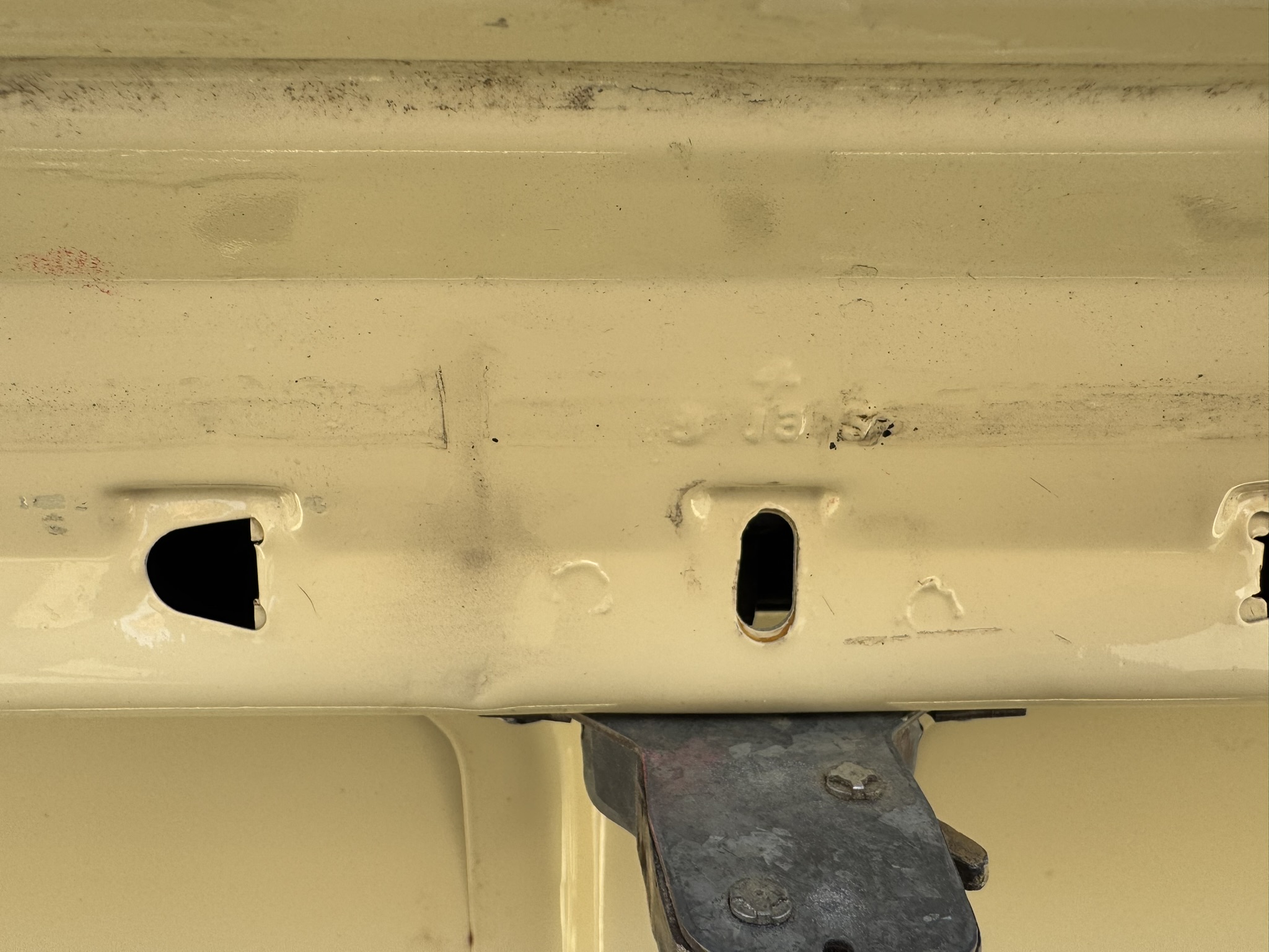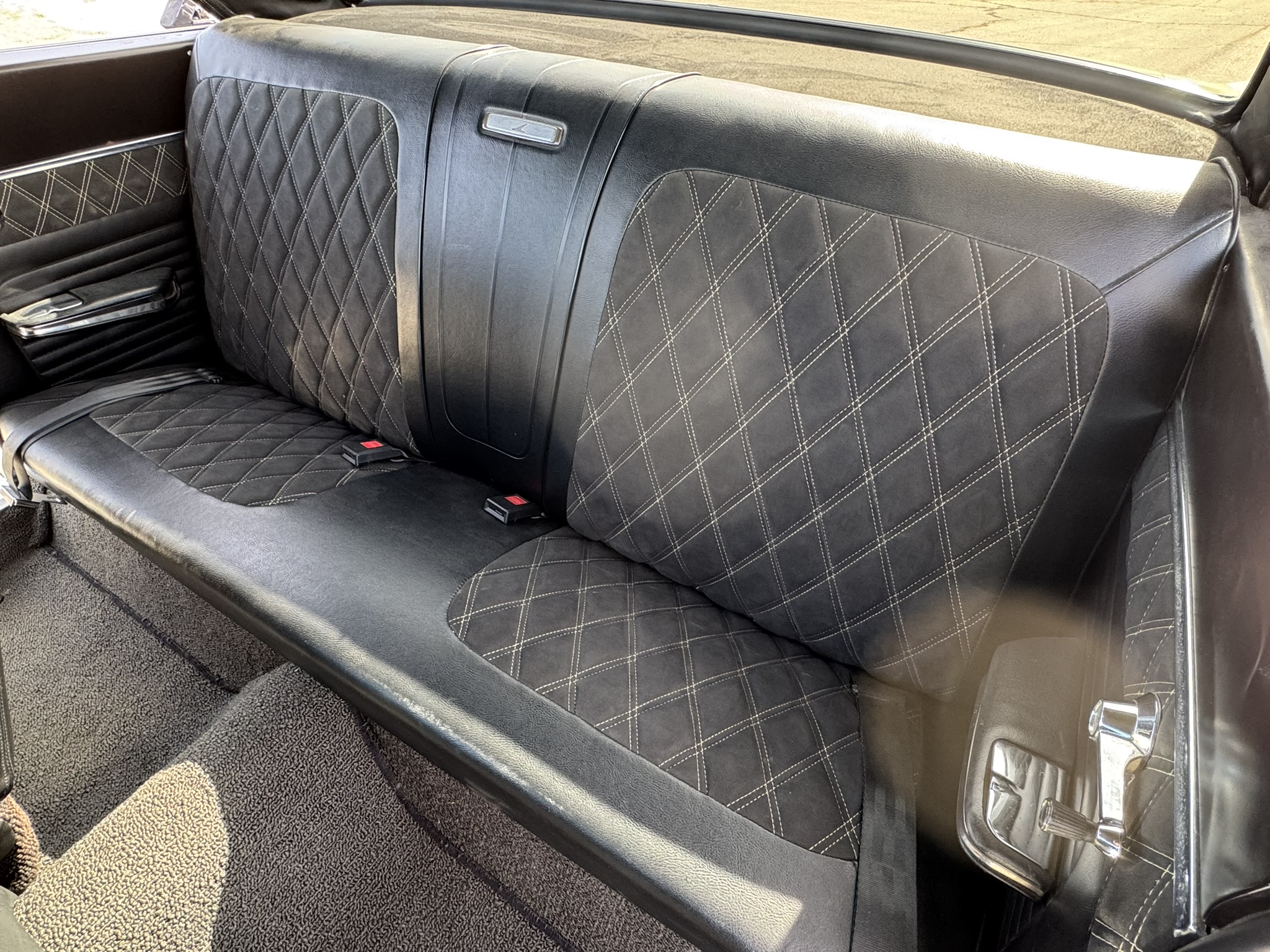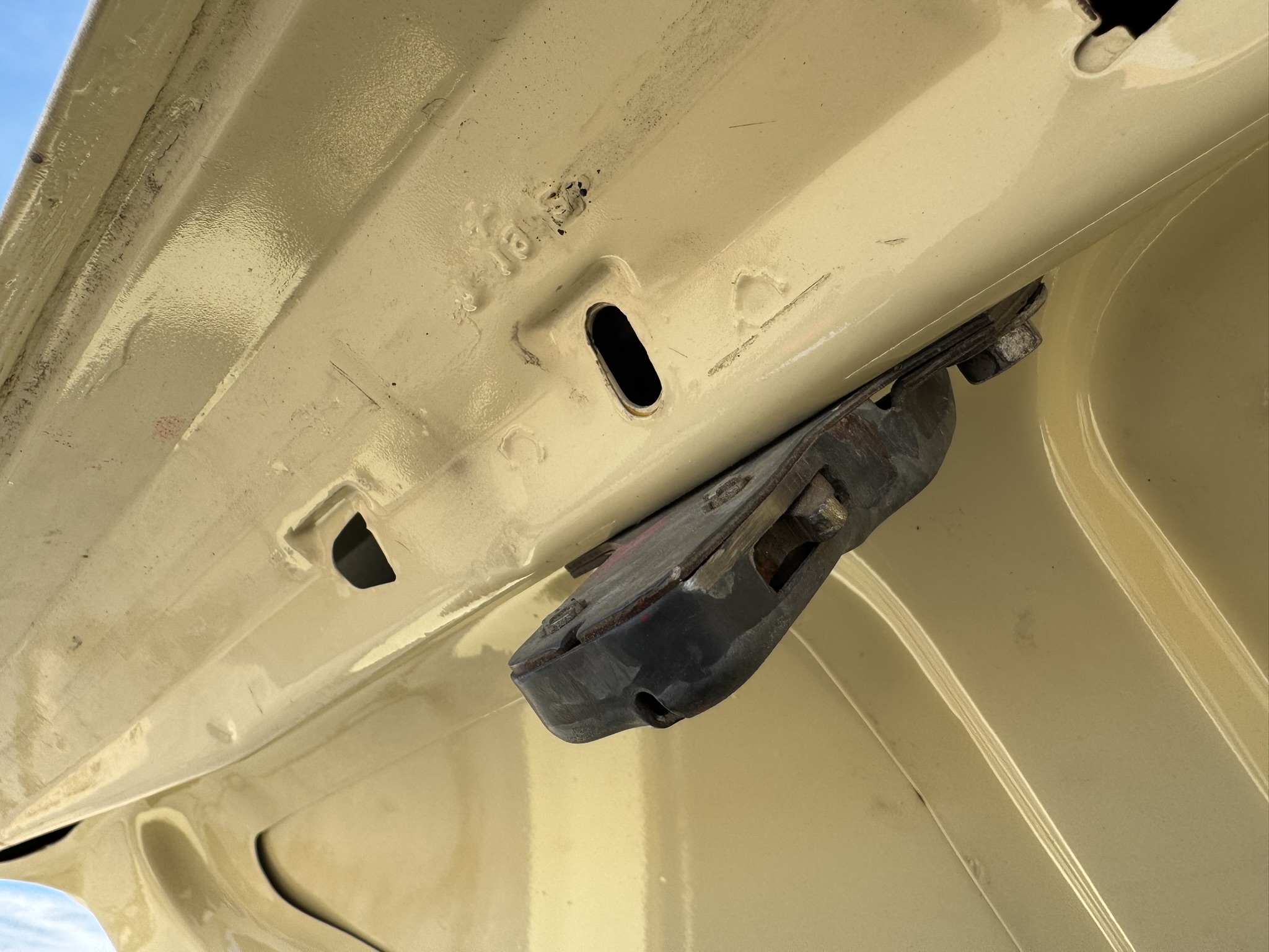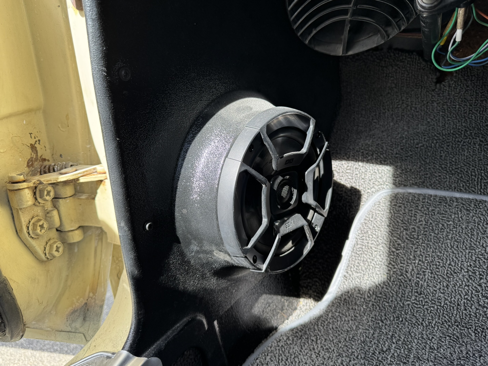 Door panels do not sit completely flush on the bottom edge. There is a small hole in the driver seat upholstery on the bottom side. There is some overspray from the re-paint as pictured.