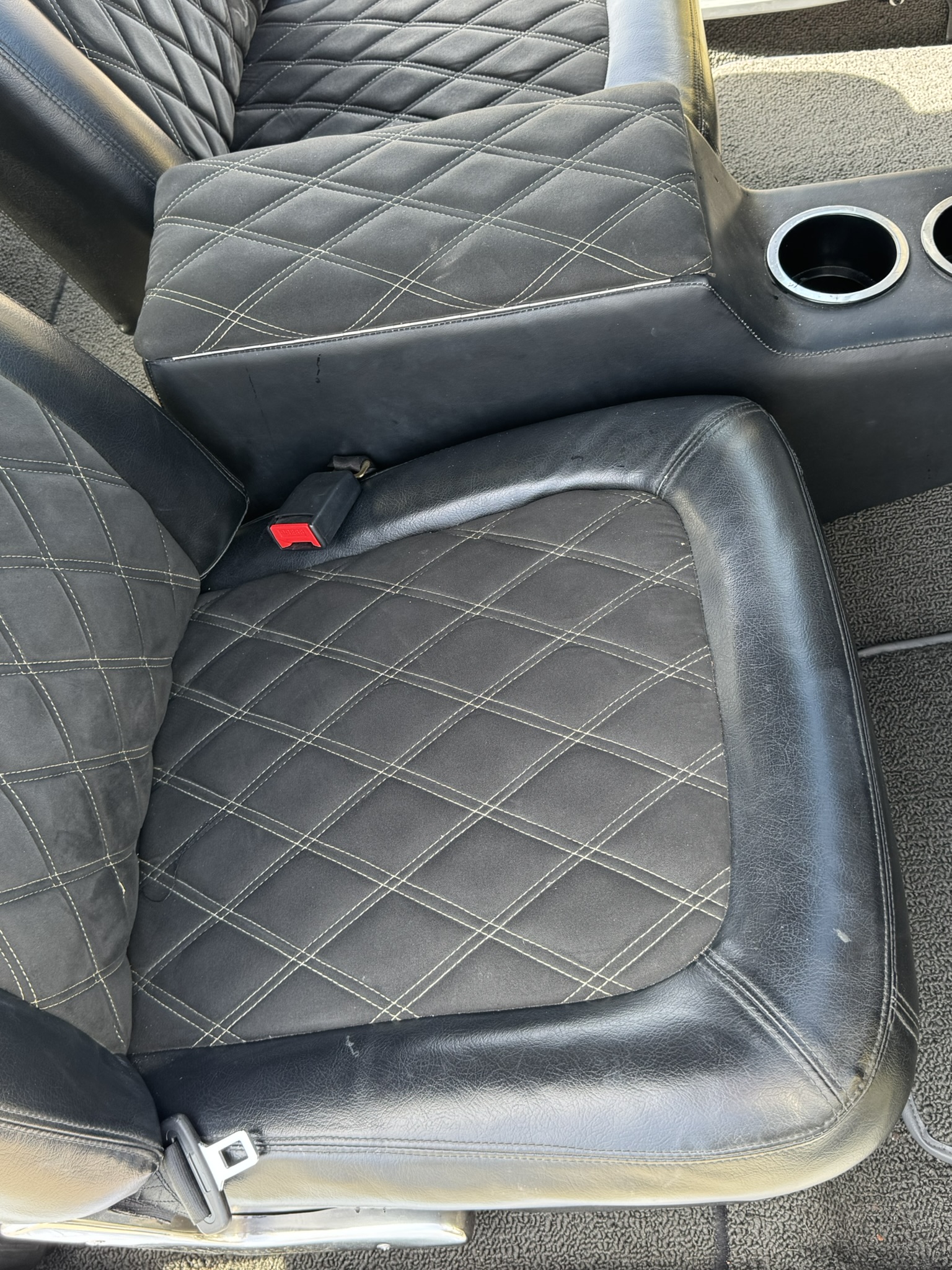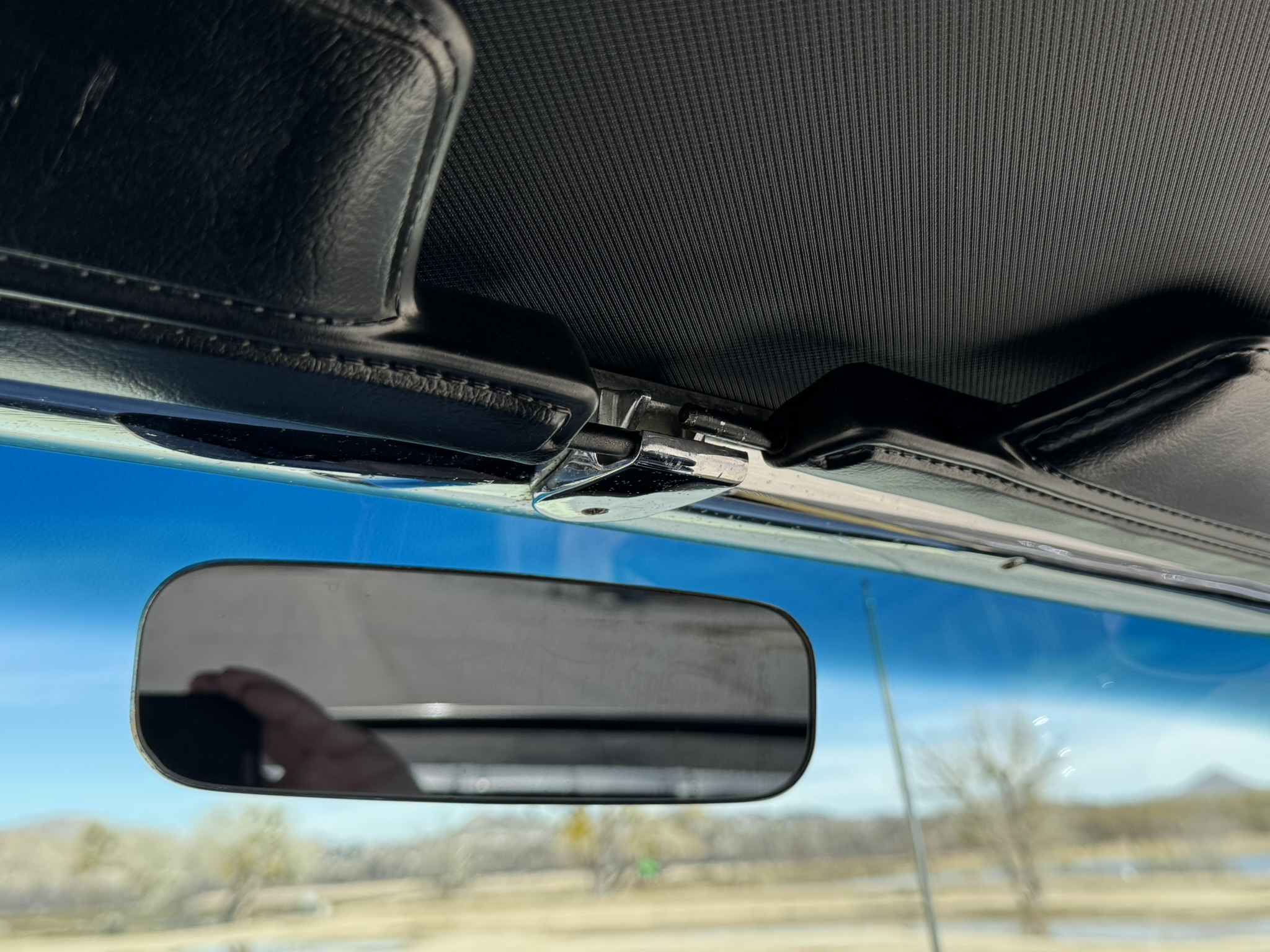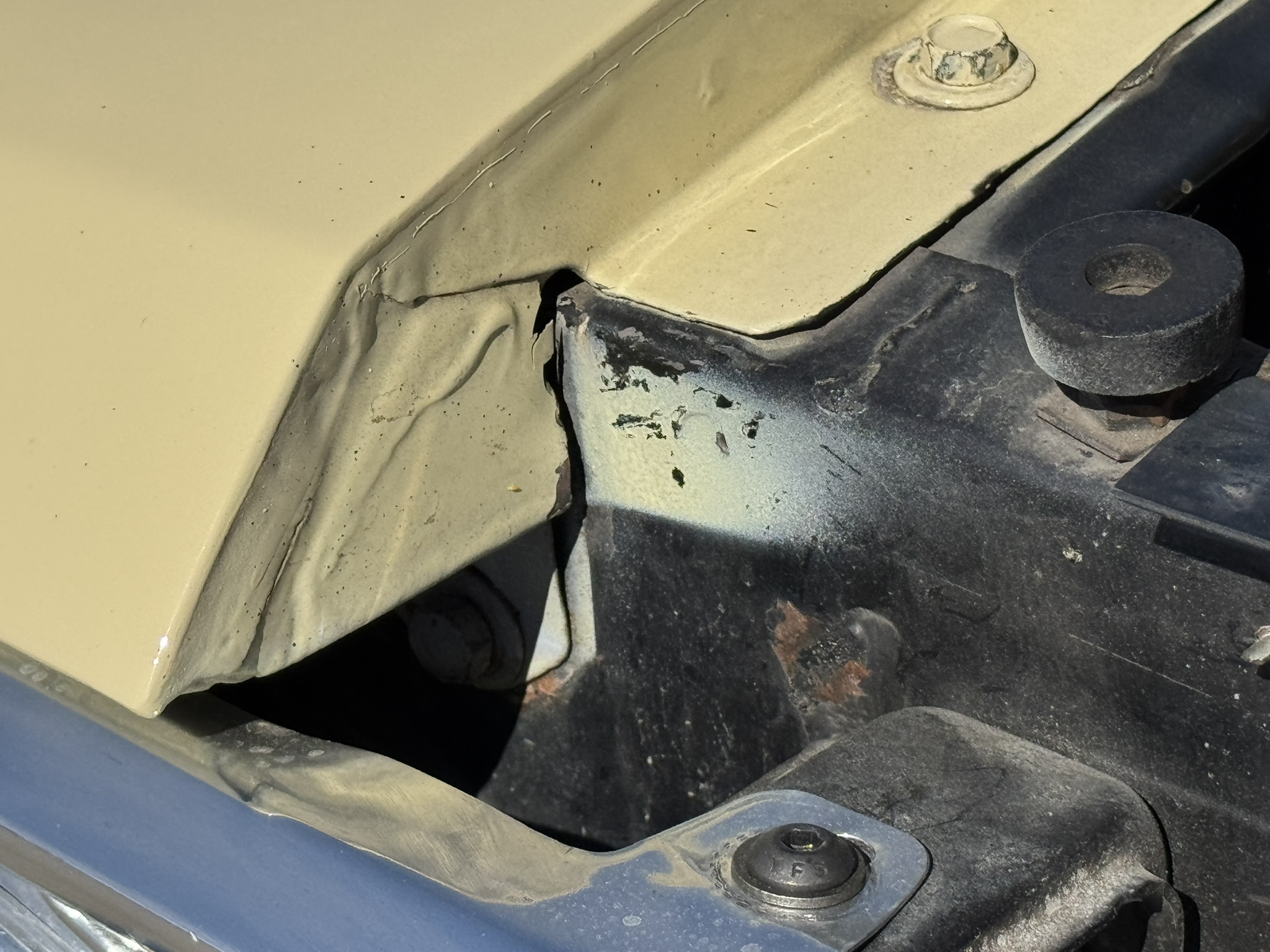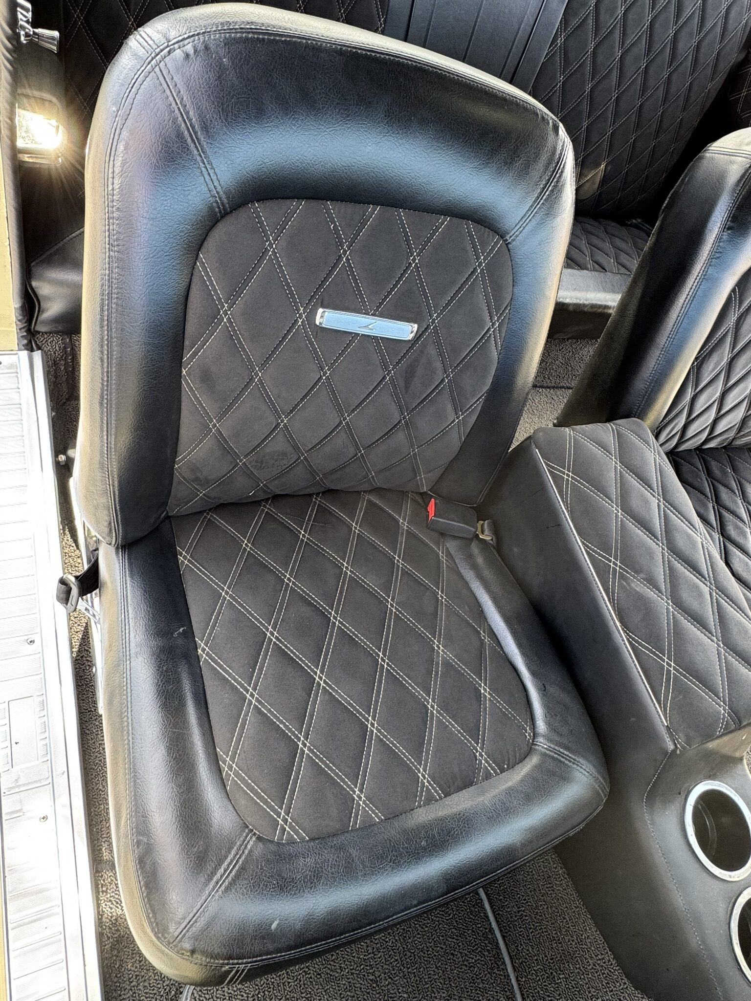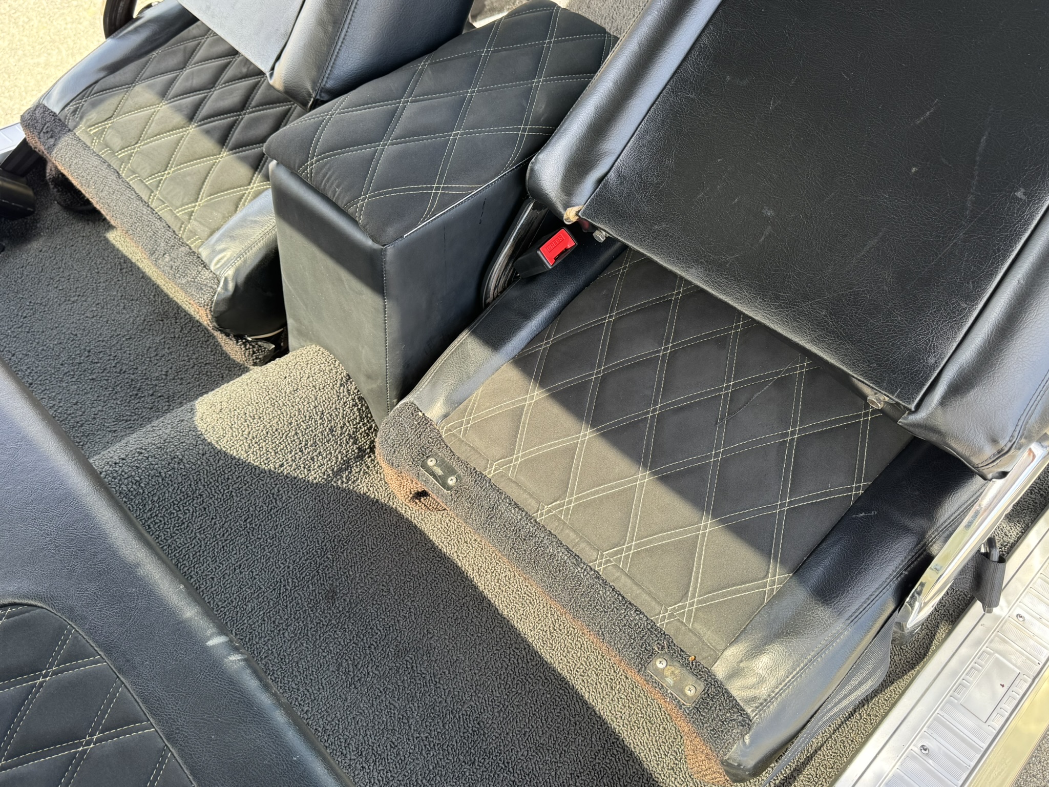 Door panels do not sit completely flush on the bottom edge. There is a small hole in the driver seat upholstery on the bottom side. There is some overspray from the re-paint as pictured.