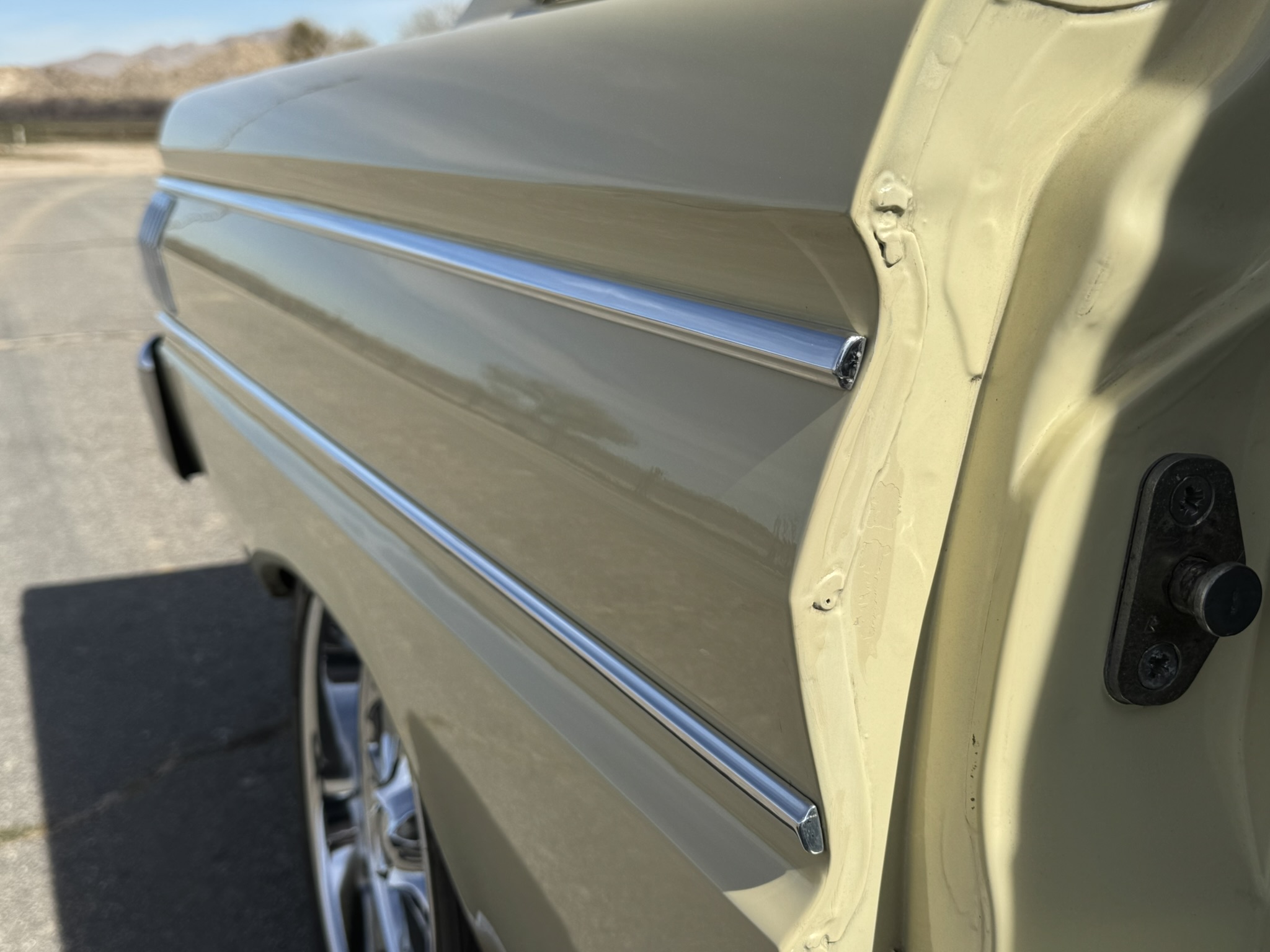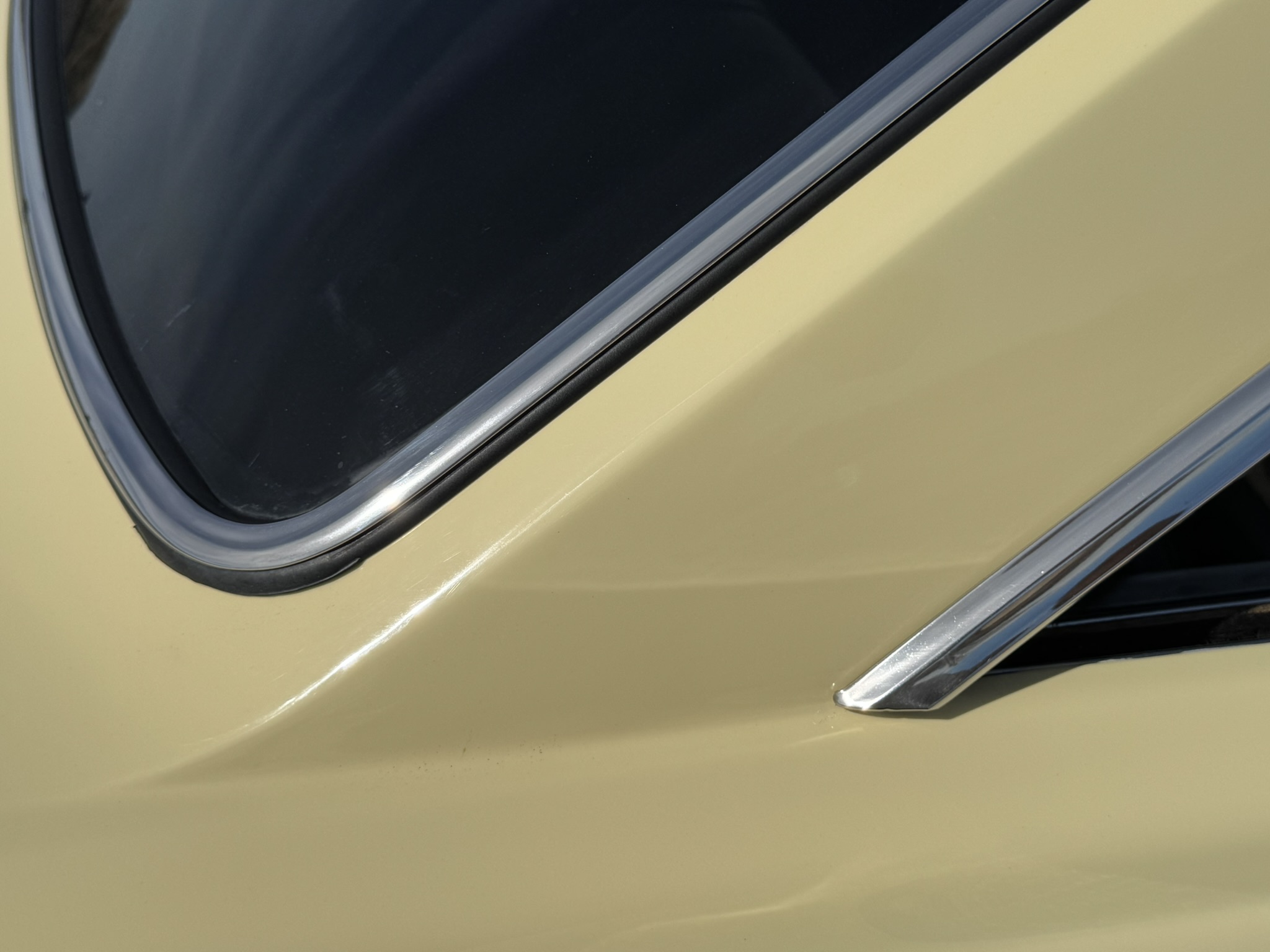Paint & Body: The car received a complete professional repaint in its original Phoenician Yellow in June 2025. The only body work performed was to make it more straight. The $8,000 paint job was completed by Angel’s Body Shop in Montclair, CA, an award winning body shop. All 31 pieces of body trim were professionally re-polished at a cost of $900 and reinstalled. New door handles and fender emblems were installed as well. The body is straight with excellent panel fit.