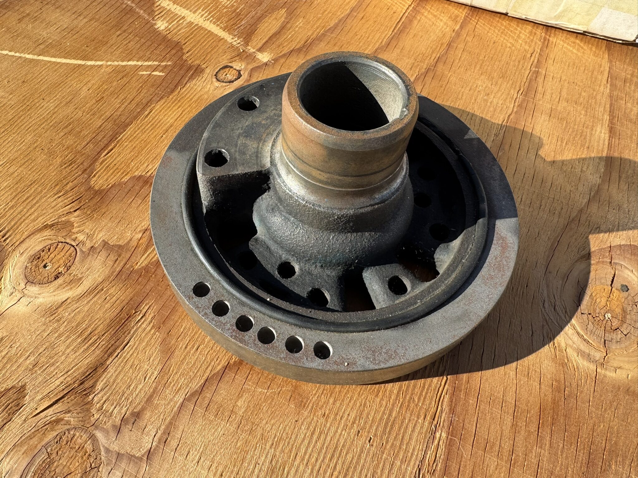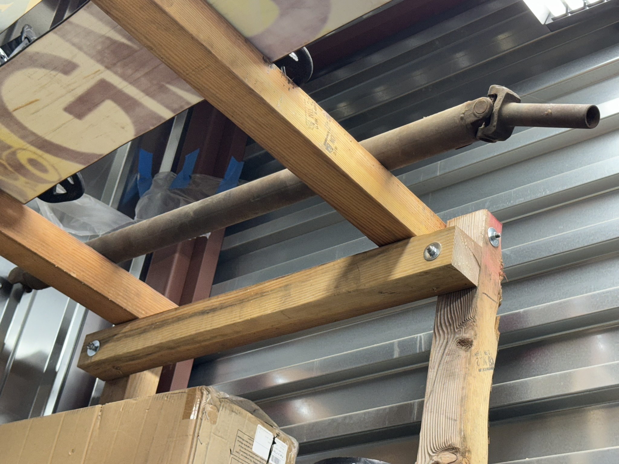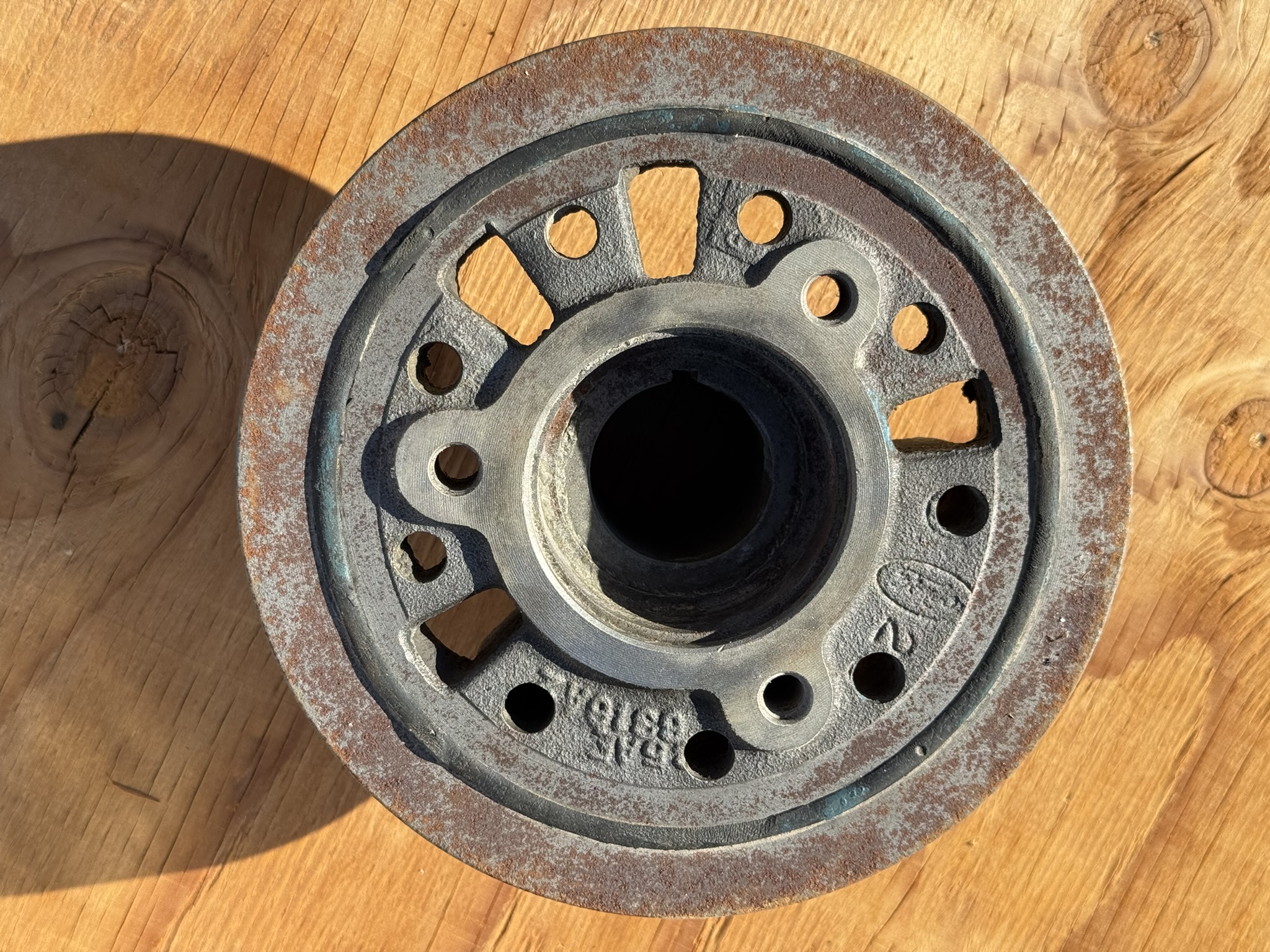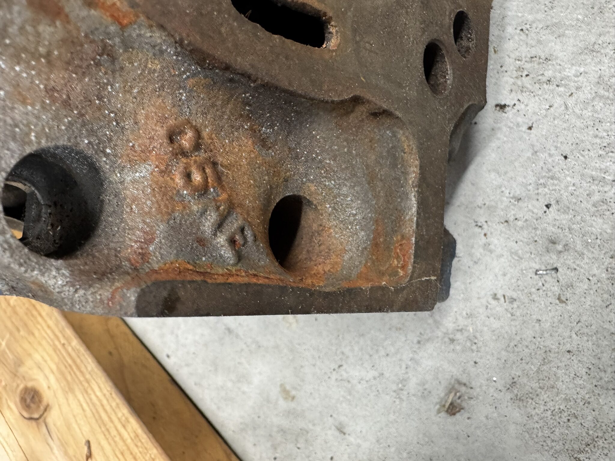 This A-Code Mustang came from the factory with a 4-barrel 289 V8, which is no longer with the car, making it a rolling chassis. Engine parts included are a 1965 date-coded block, 1965 289 heads, and a 1965 four-barrel intake with four-hole spacer. A crankshaft is also included along with other engine parts: timing chain cover, water pump, distributors, oil pan, valve covers, air cleaner, fan, and exhaust manifolds. The T-10 transmission is correct for this vintage of Mustang, though it's unknown whether it's original as the metal tag with date code is missing. An aluminum bellhousing, new 10-inch clutch kit, and motor plate are included. The 8-inch axle appears original with 3.00:1 gears and open differential. A driveshaft is included. The front suspension was updated with new components 10 years ago and should be inspected. The rear suspension appears factory correct and there is a rear sway bar included.