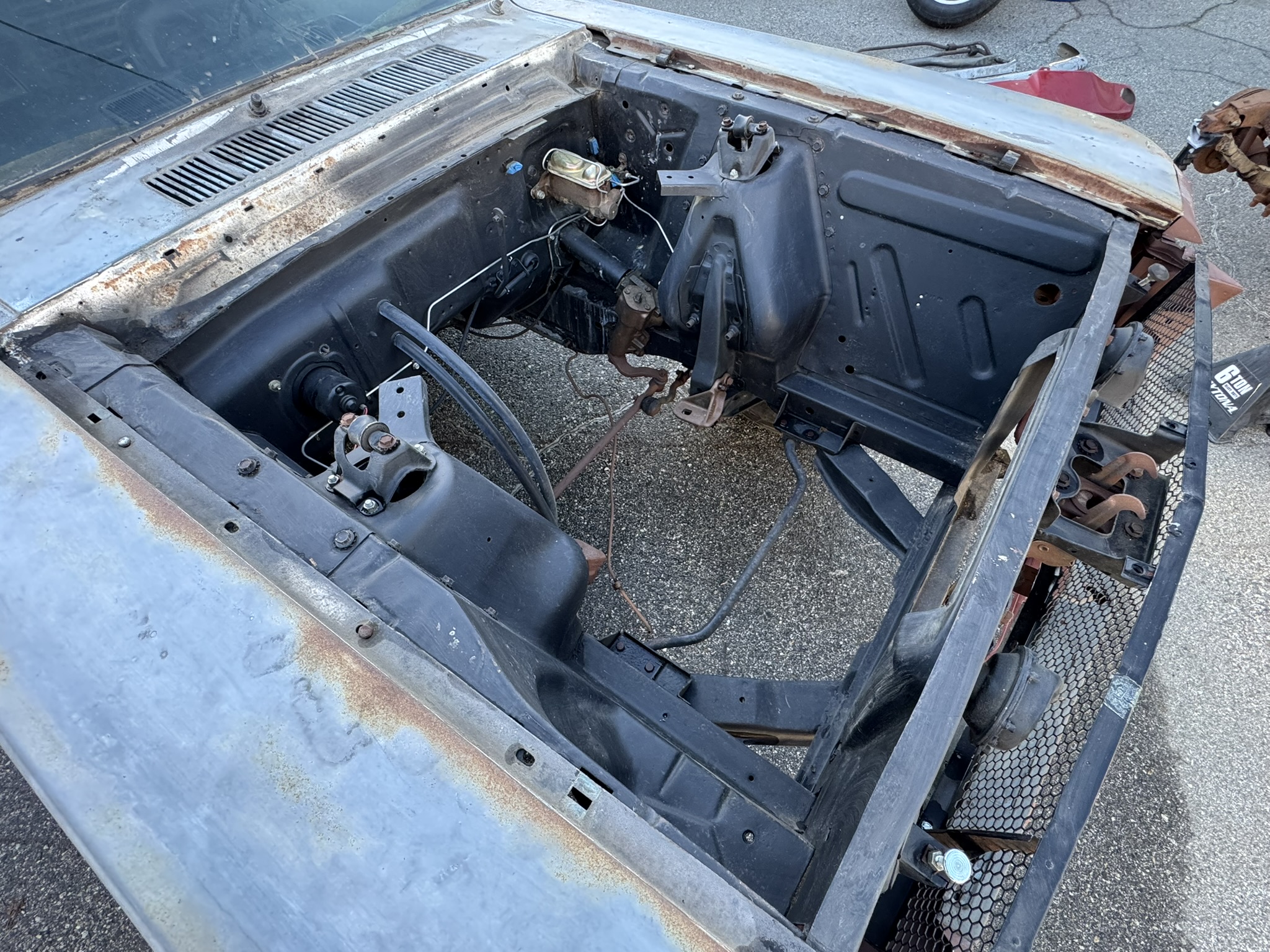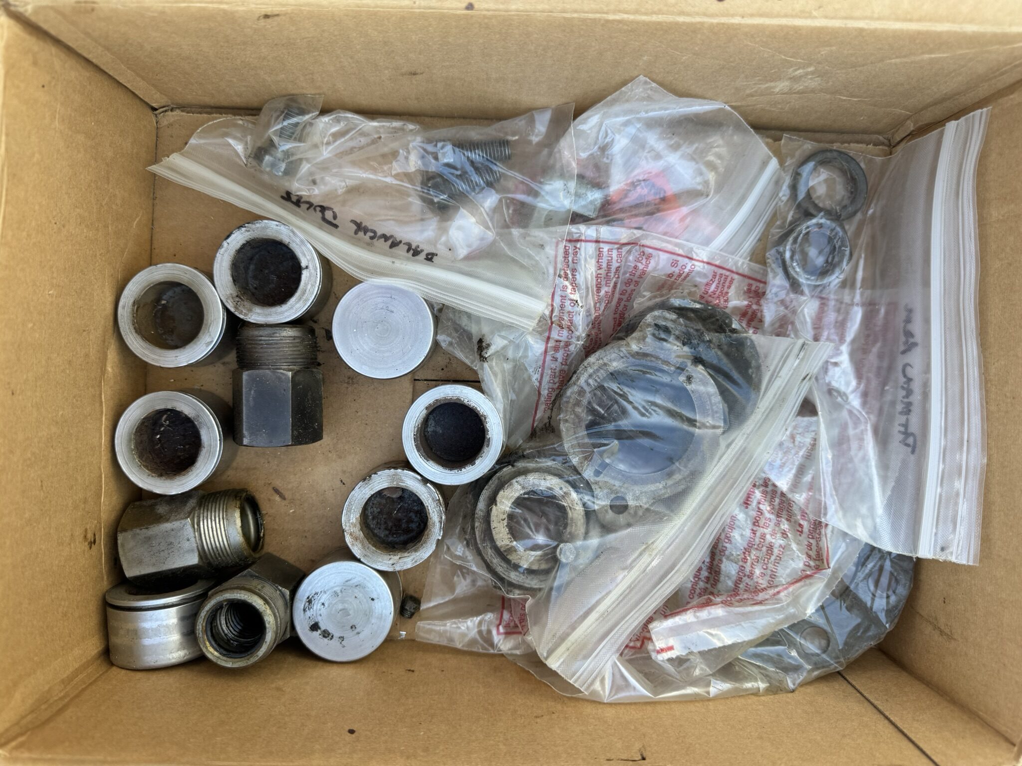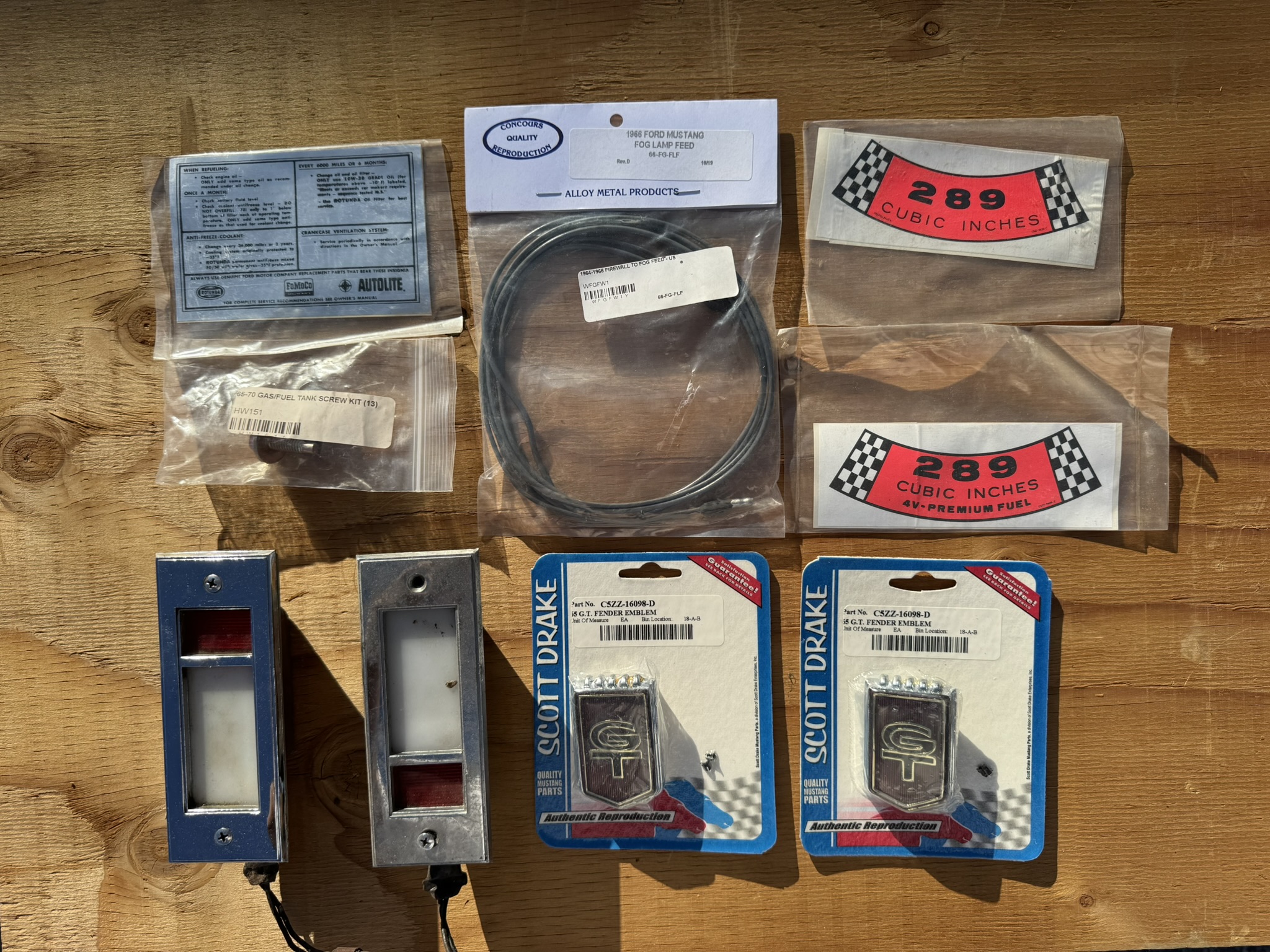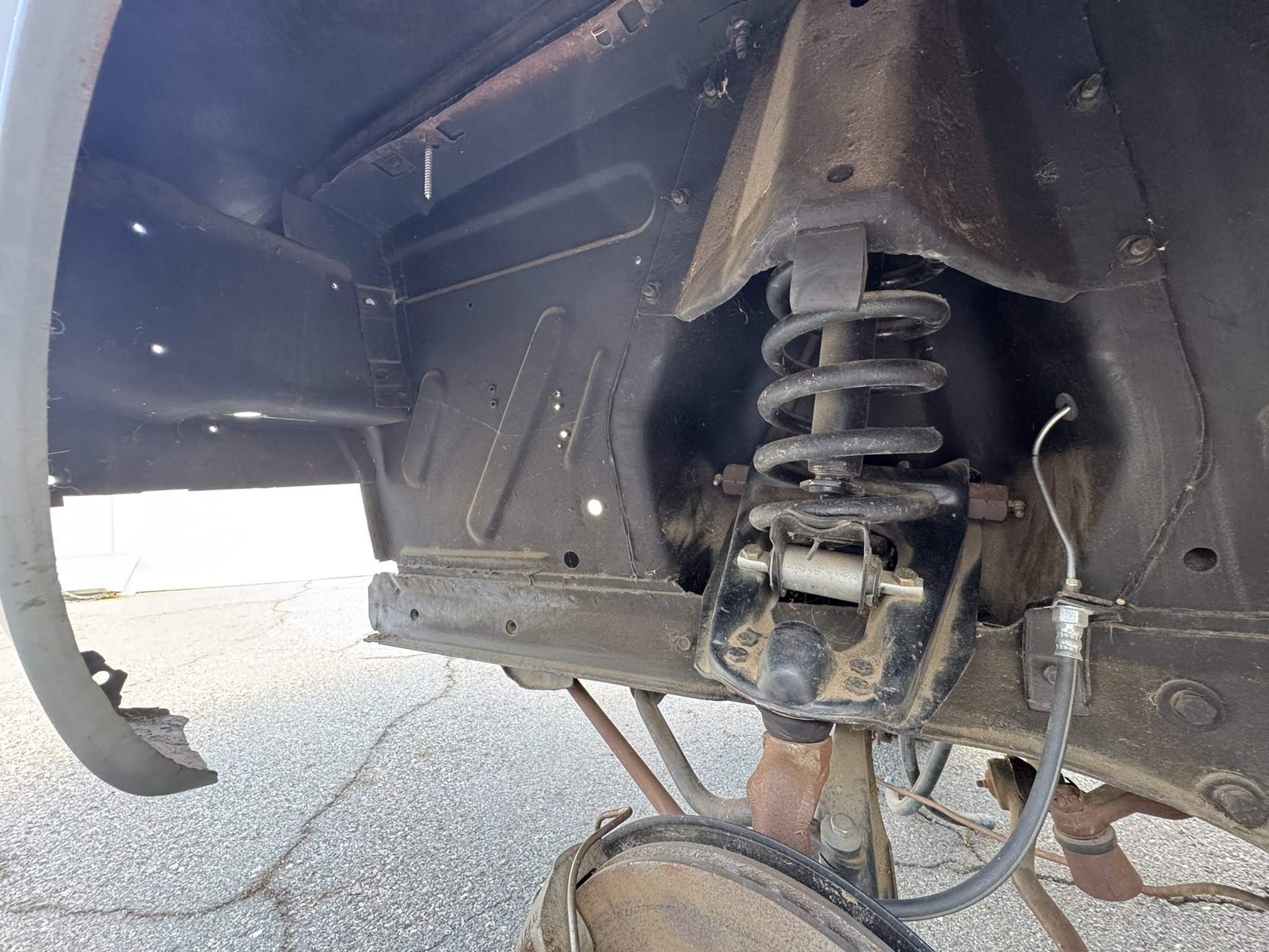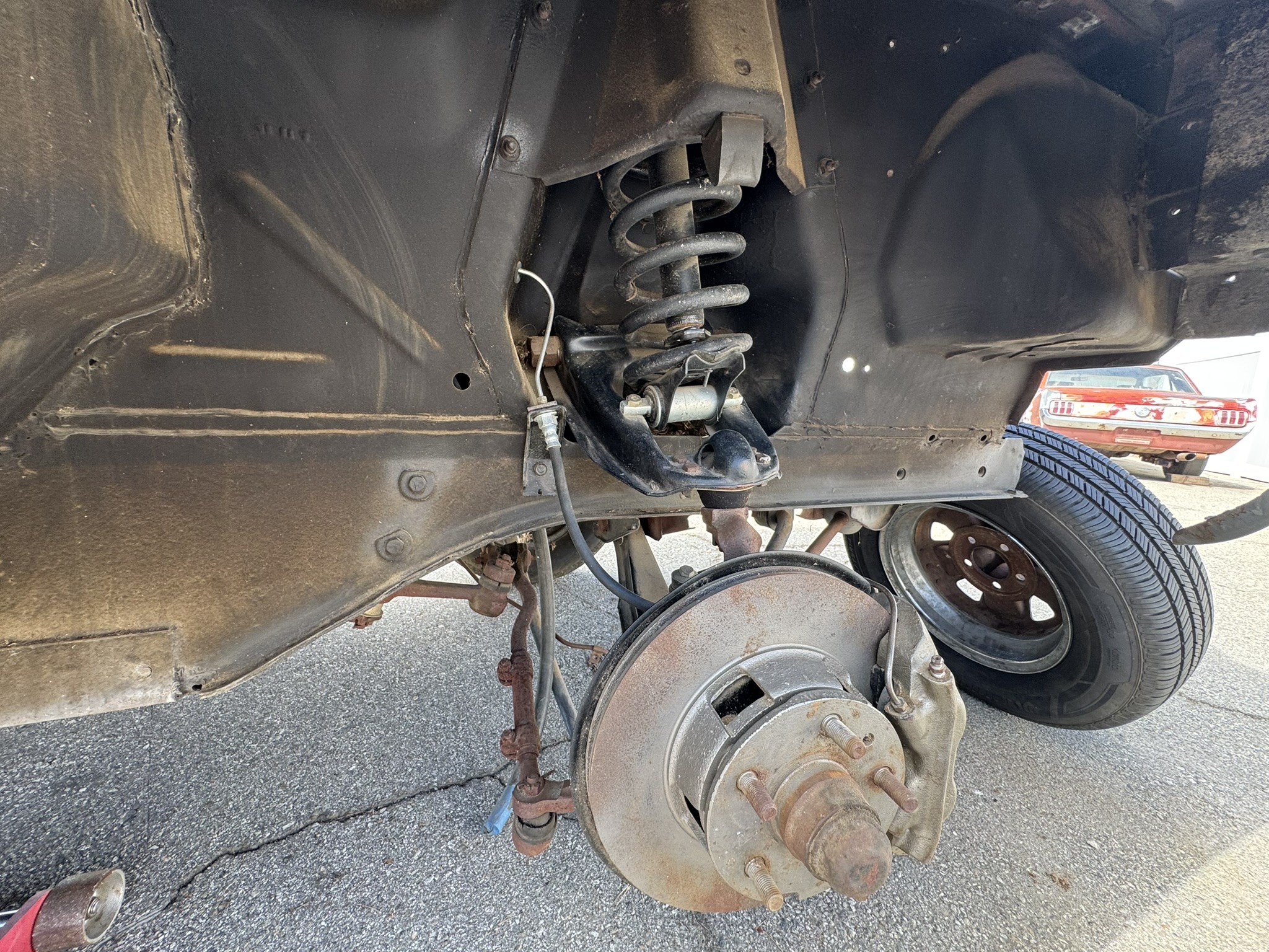 With the original 289 missing, the included engine parts can be used for a rebuild or you can source the engine of your choice. The T-10 transmission spins freely with gears in apparently good condition, but should be inspected and rebuilt if needed, along with the shifter linkage. Several years have passed since the front disc and rear drum brakes were rebuilt, so their function will need to be checked. The single master cylinder was swapped for a new dual reservoir unit. The front end was rebuilt with new components but should be checked for cracked rubber and proper installation.