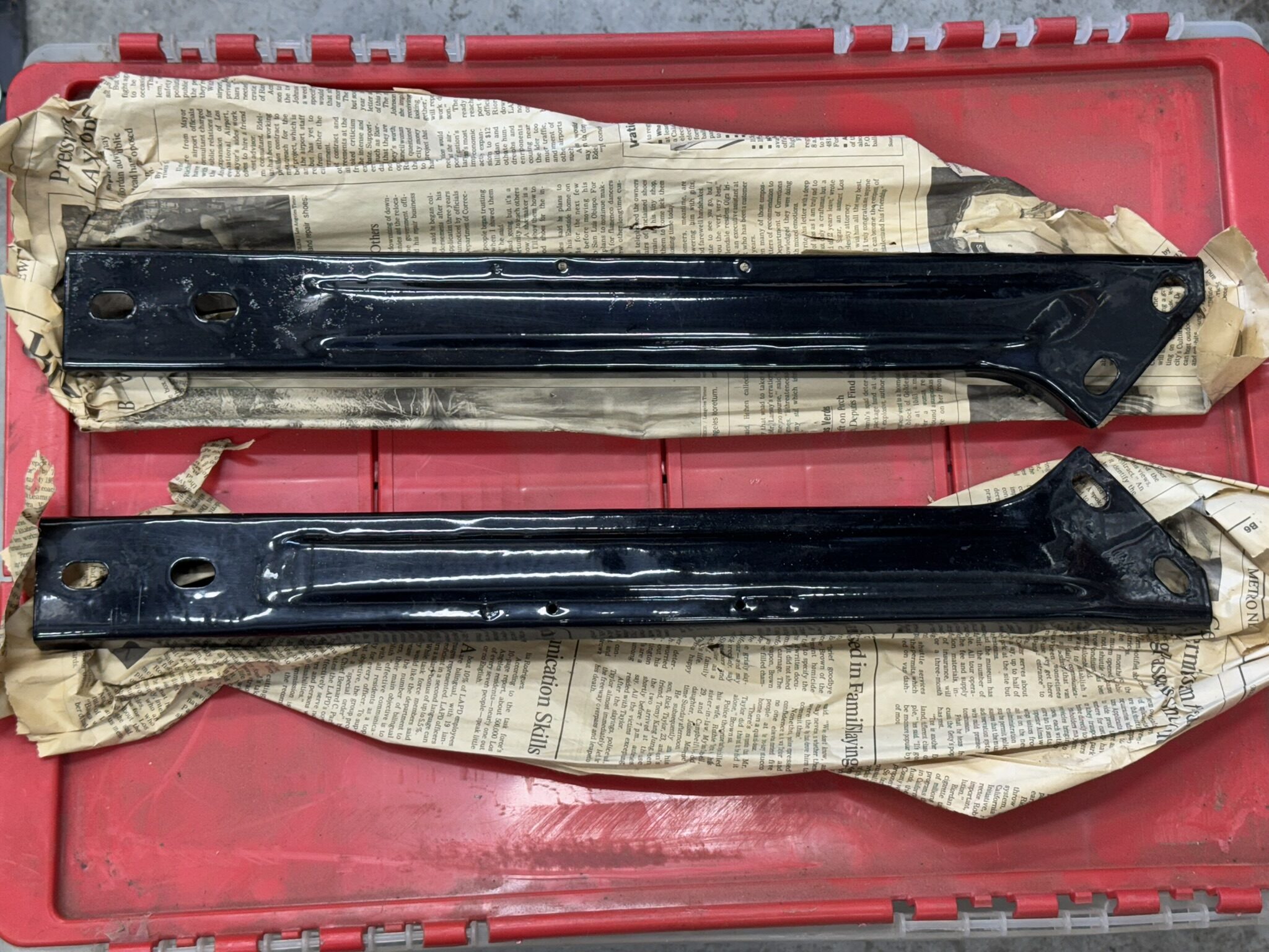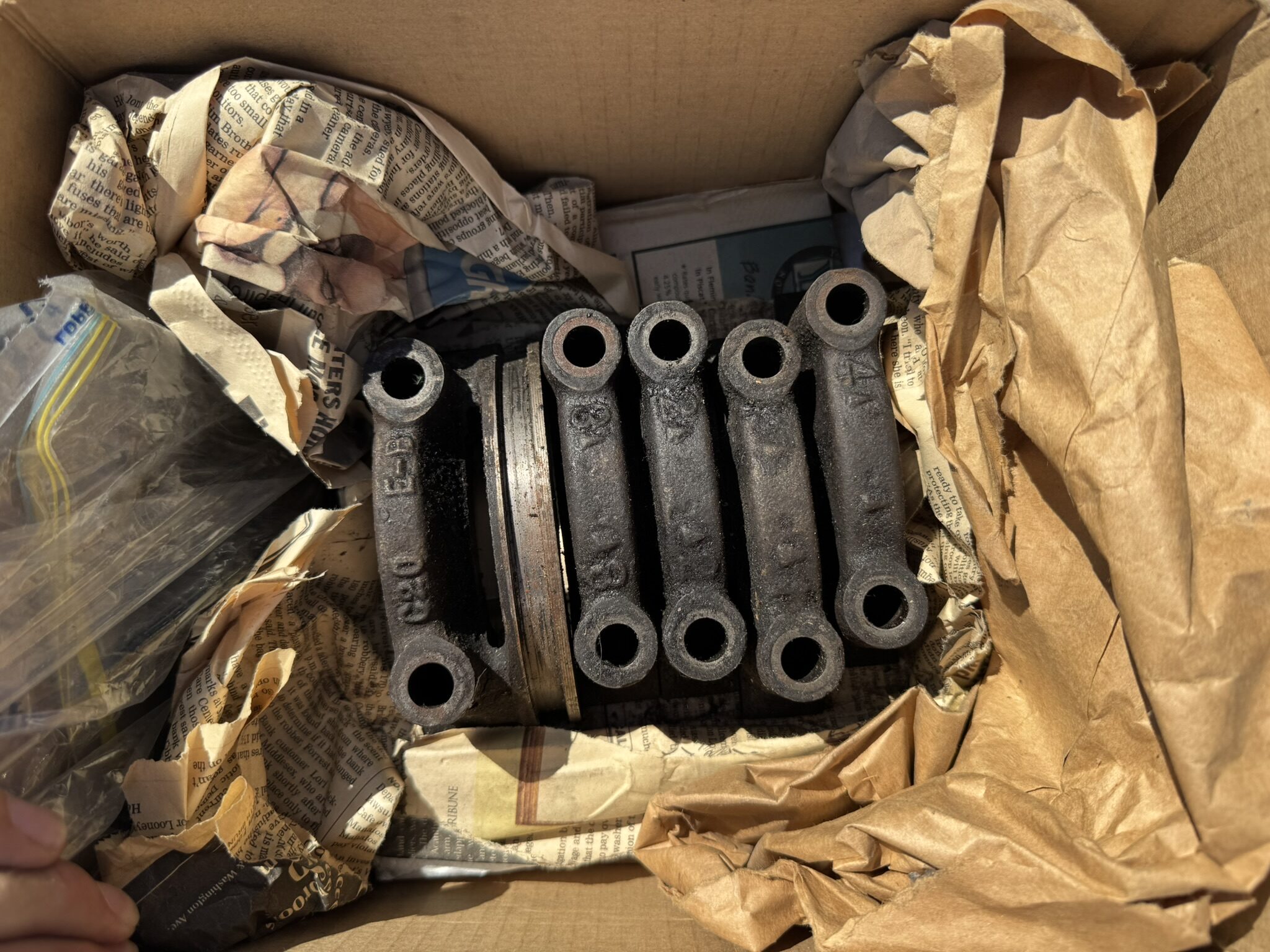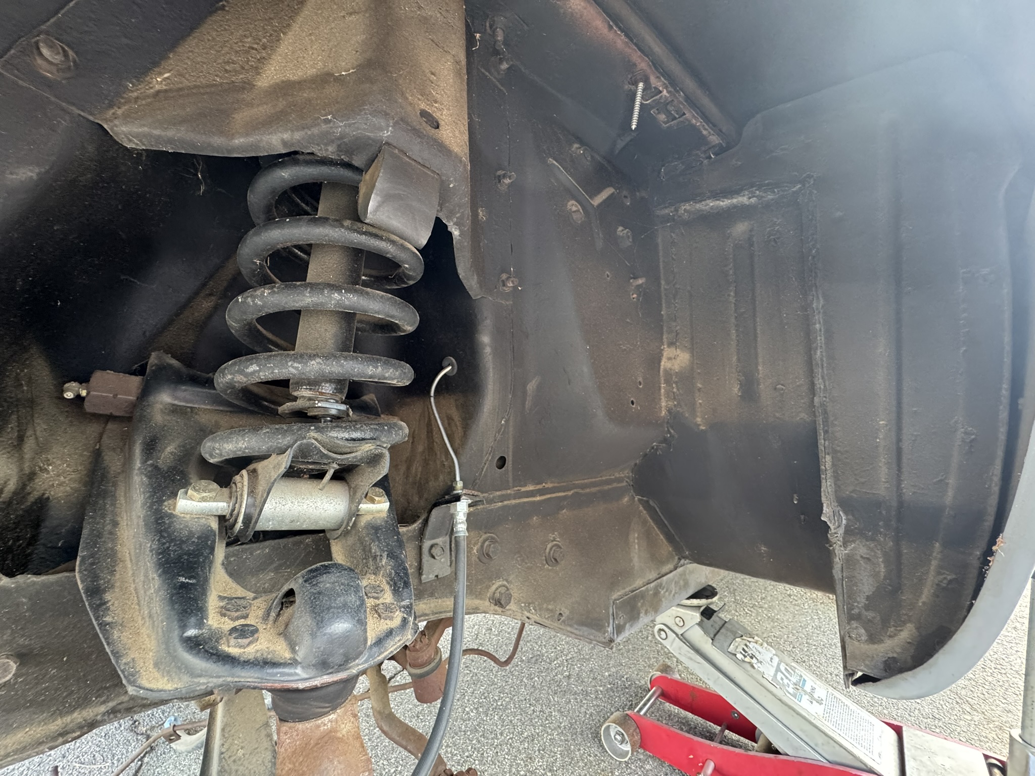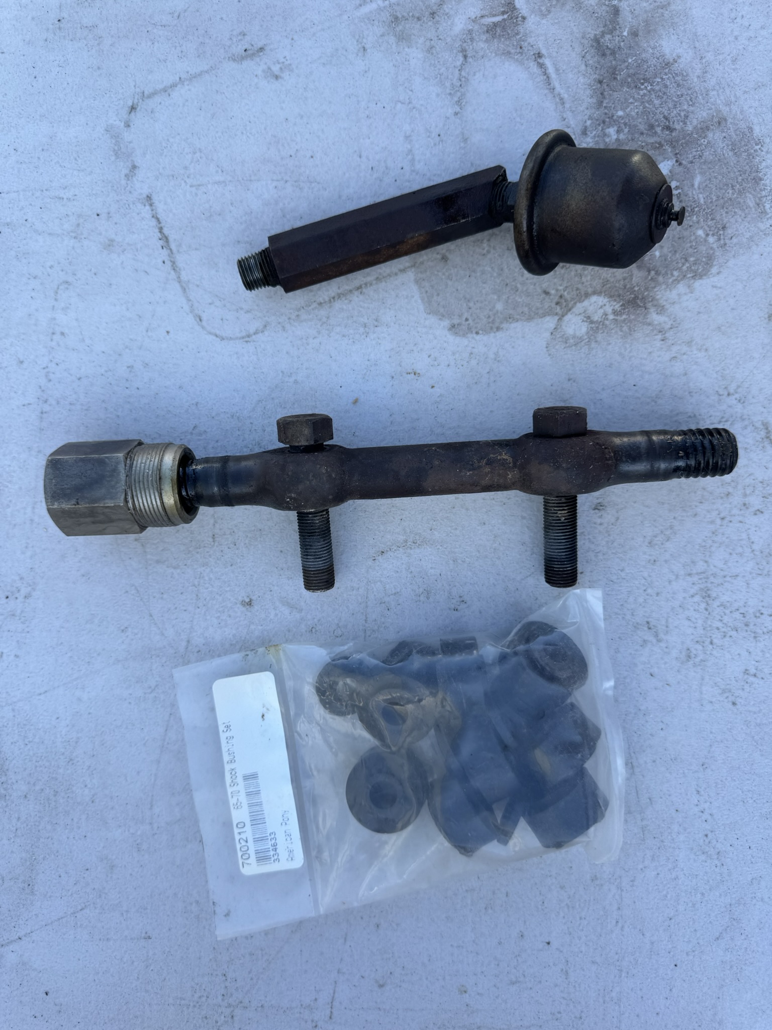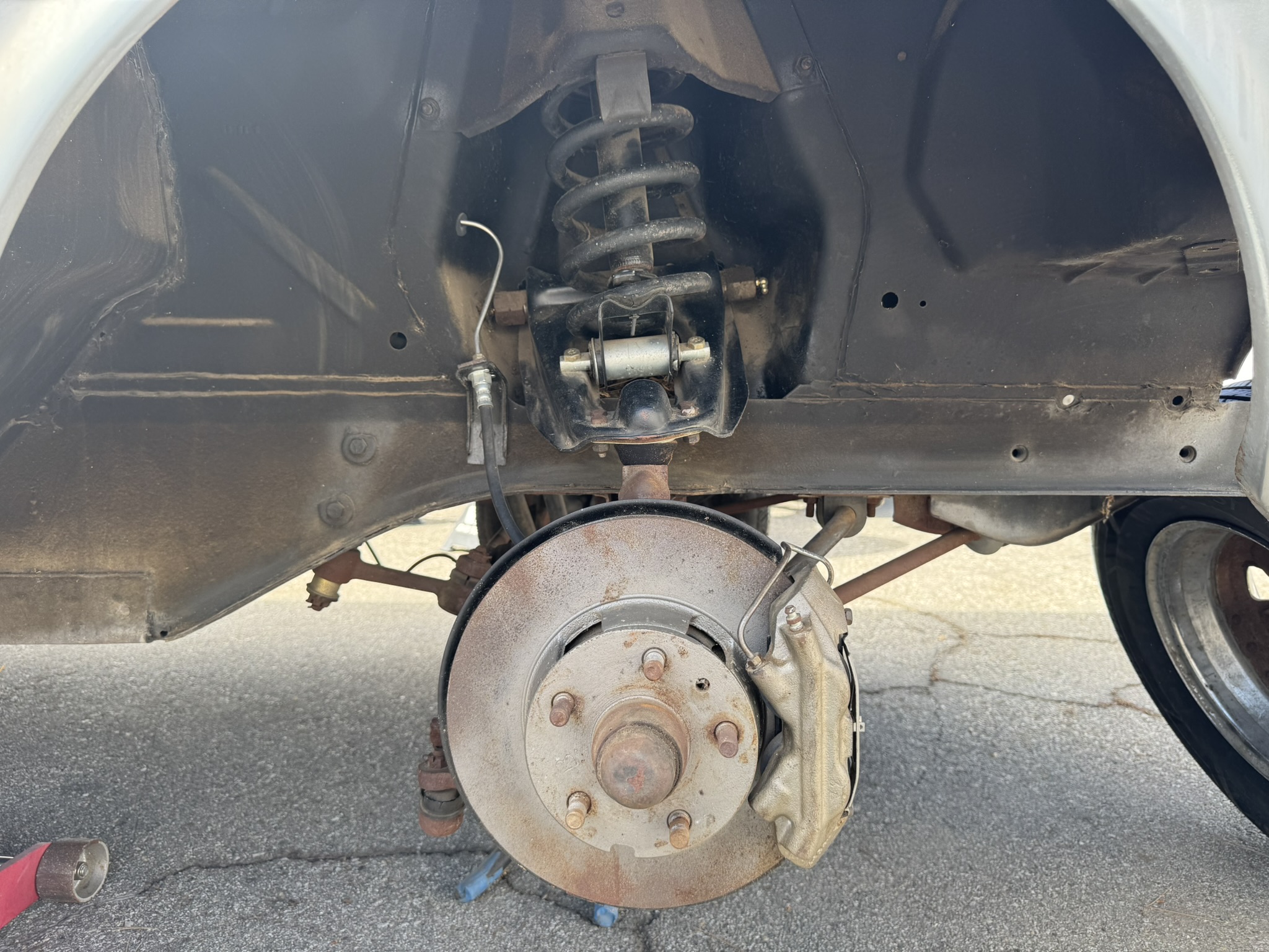 With the original 289 missing, the included engine parts can be used for a rebuild or you can source the engine of your choice. The T-10 transmission spins freely with gears in apparently good condition, but should be inspected and rebuilt if needed, along with the shifter linkage. Several years have passed since the front disc and rear drum brakes were rebuilt, so their function will need to be checked. The single master cylinder was swapped for a new dual reservoir unit. The front end was rebuilt with new components but should be checked for cracked rubber and proper installation.