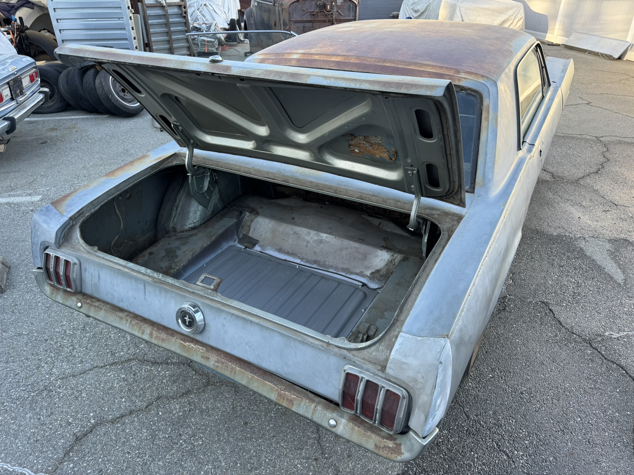 The Ford Mustang recently celebrated its 60th anniversary. This Silver Smoke Gray Mustang coupe rolled off the San Jose, CA production line on March 22nd, 1965 with a 225 horsepower 289ci V8 mated to a Borg Warner T-10 4-speed manual. It has been in project status for more than four decades, spanning two owners during that time. The first owner, a young man, had it parked at his parent’s house for 20 years before moving away without completing the work. The second owners, a father and son duo, began restoration by stripping the body to bare metal, installing new brakes and lines, new front suspension, new gas tank, new heater core, and new instrument bezel before life circumstances forced them to let it go.