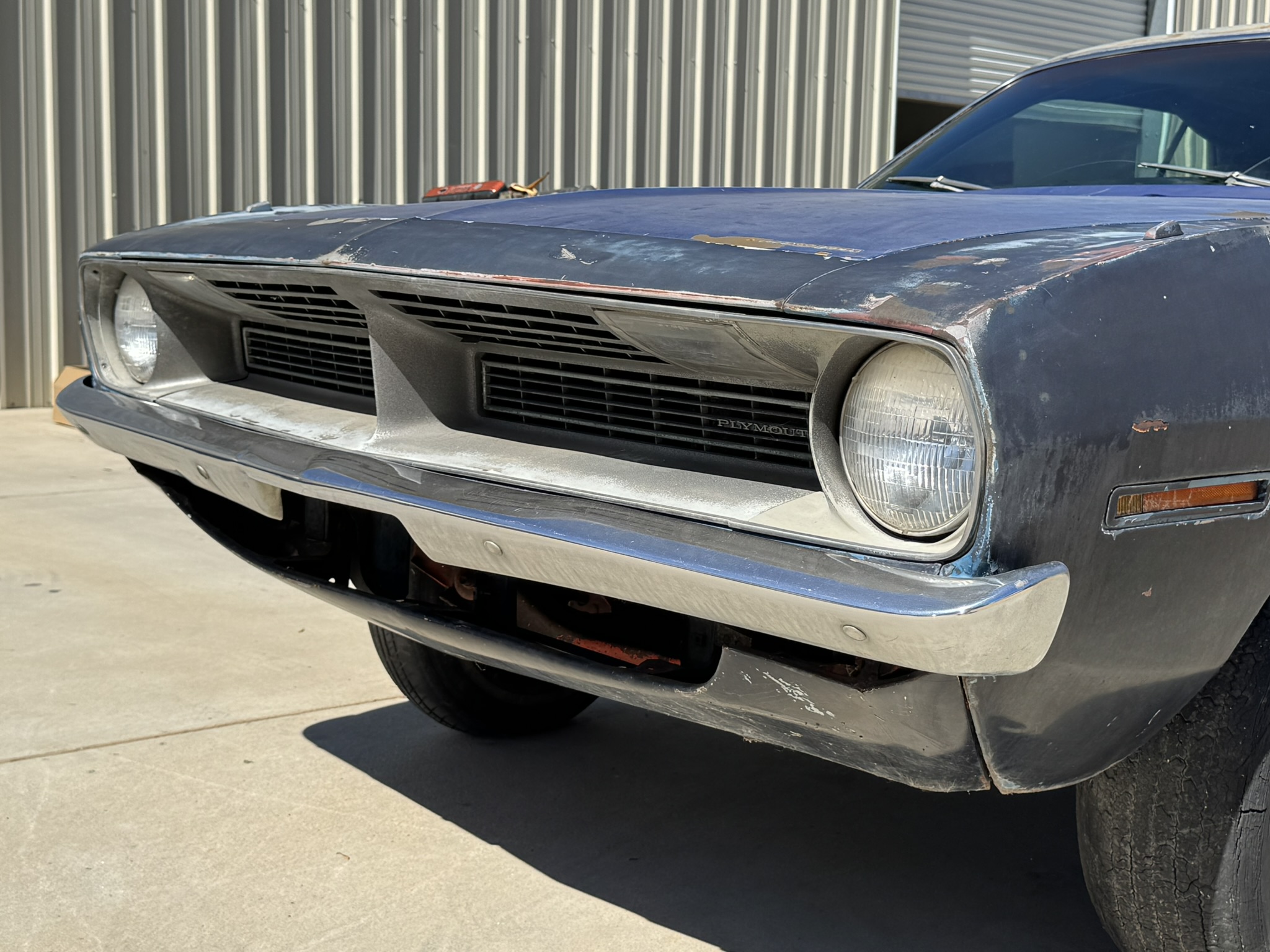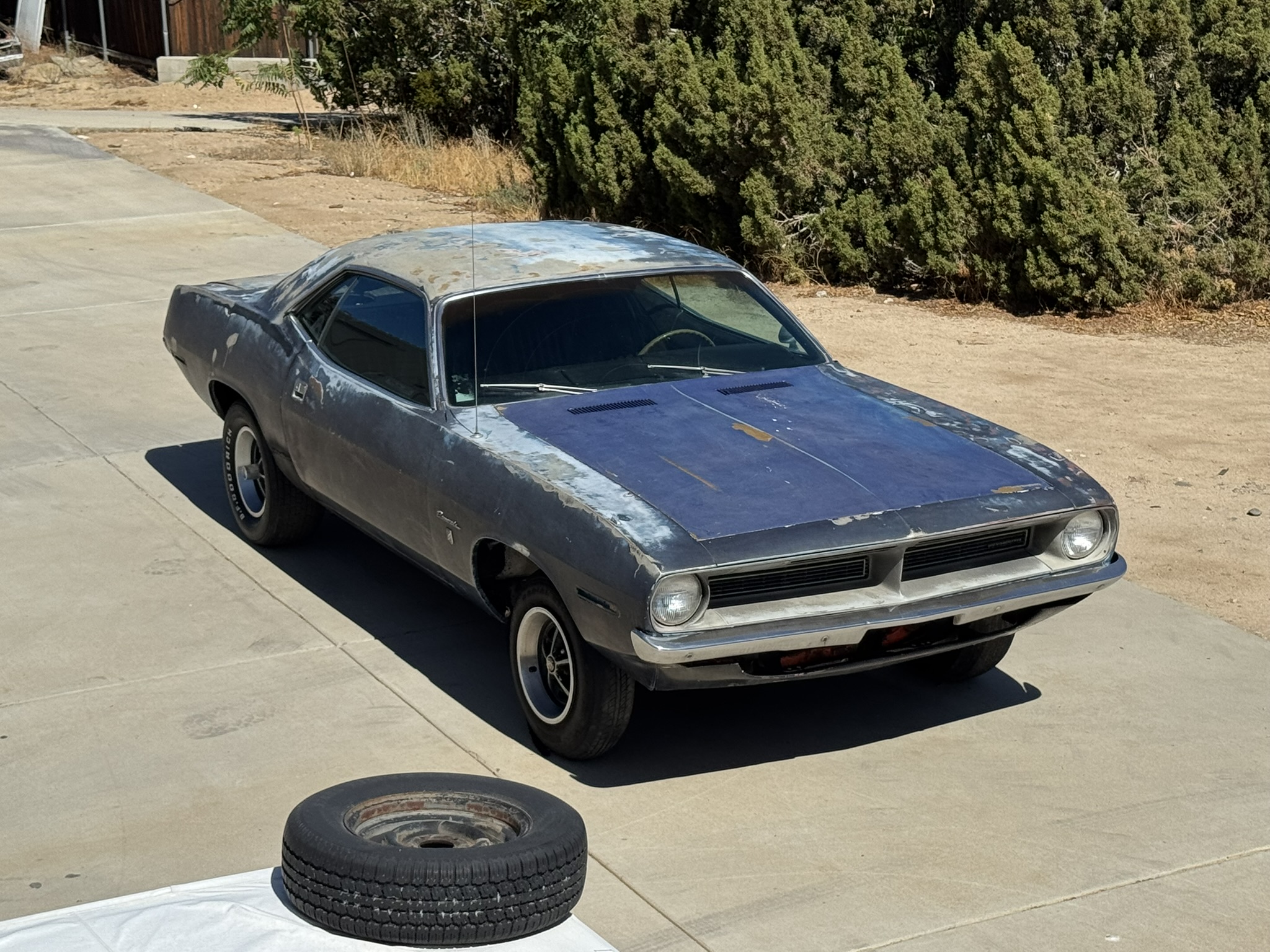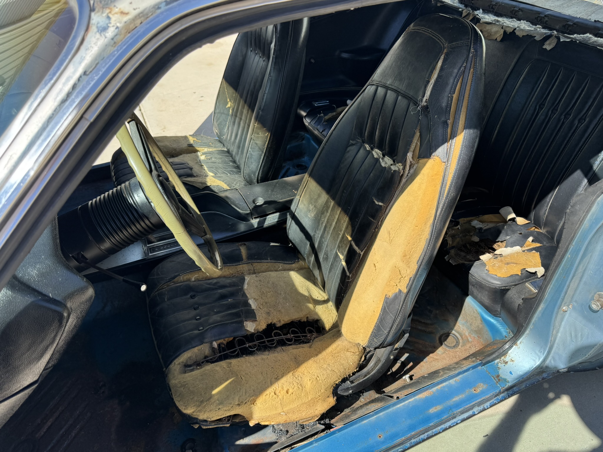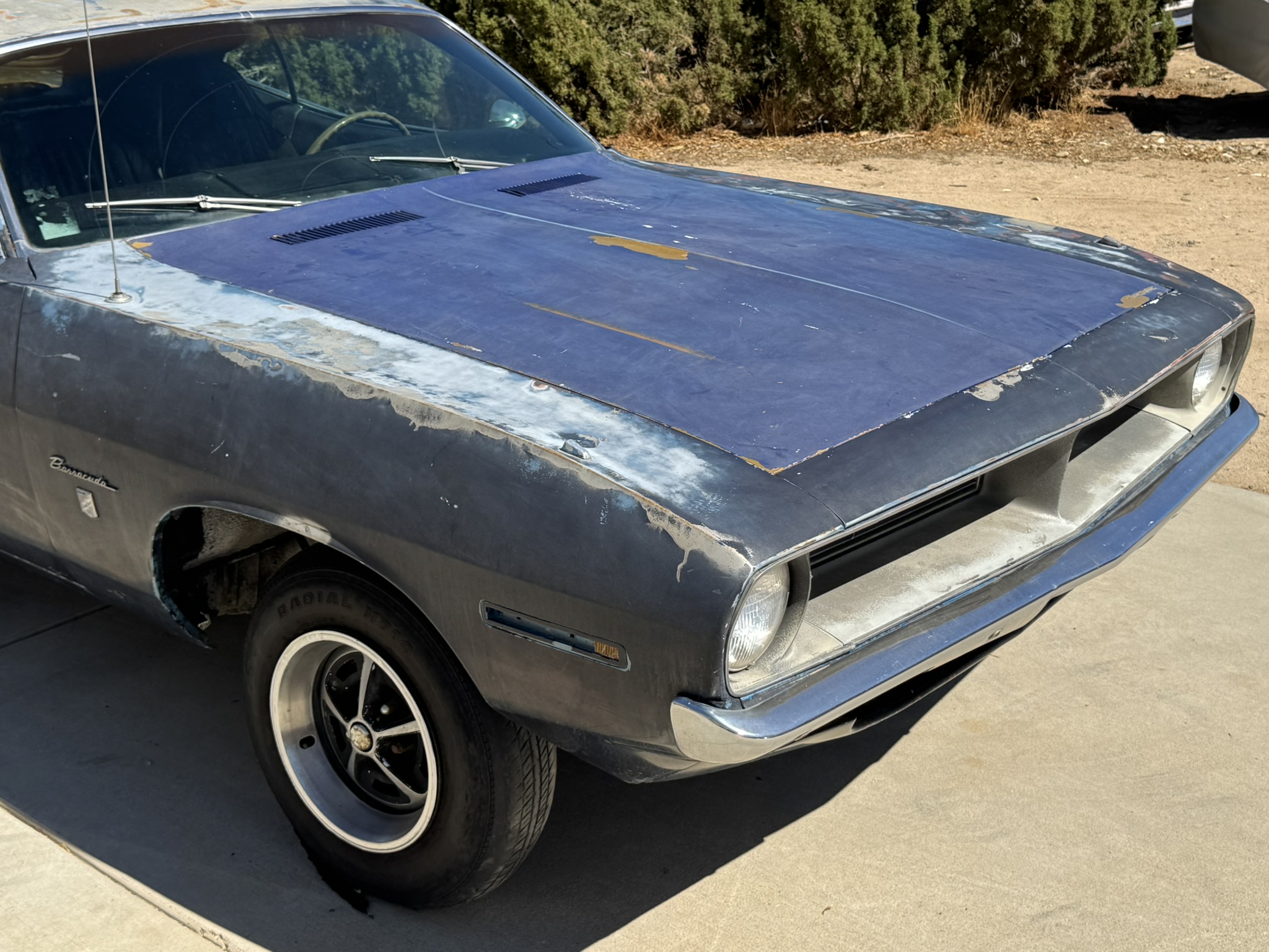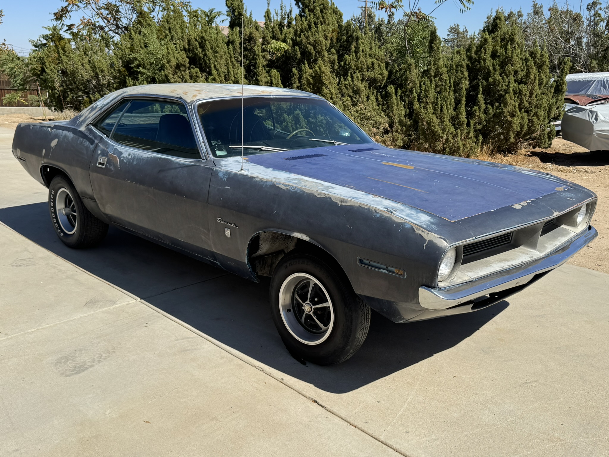 This Los Angeles built 1970 Barracuda Gran Coupe represents the upscale side of Mopar's pony car lineup. The Gran Coupe package elevated the Barracuda with luxury touches like leather seat inserts, dual consoles, woodgrain accents, and distinctive exterior badging that set it apart from standard models. This rolling chassis comes complete with a 383ci V8 that was pulled from a running car, ready to transform this six-cylinder luxury cruiser into a proper muscle machine. The original B5 Bright Blue Poly paint still shows throughout the engine bay, floors, and body panels, telling the story of its factory-correct heritage. The factory fender tag is present with the rarely seen inspection tag still underneath, appearing to have never been off the car.