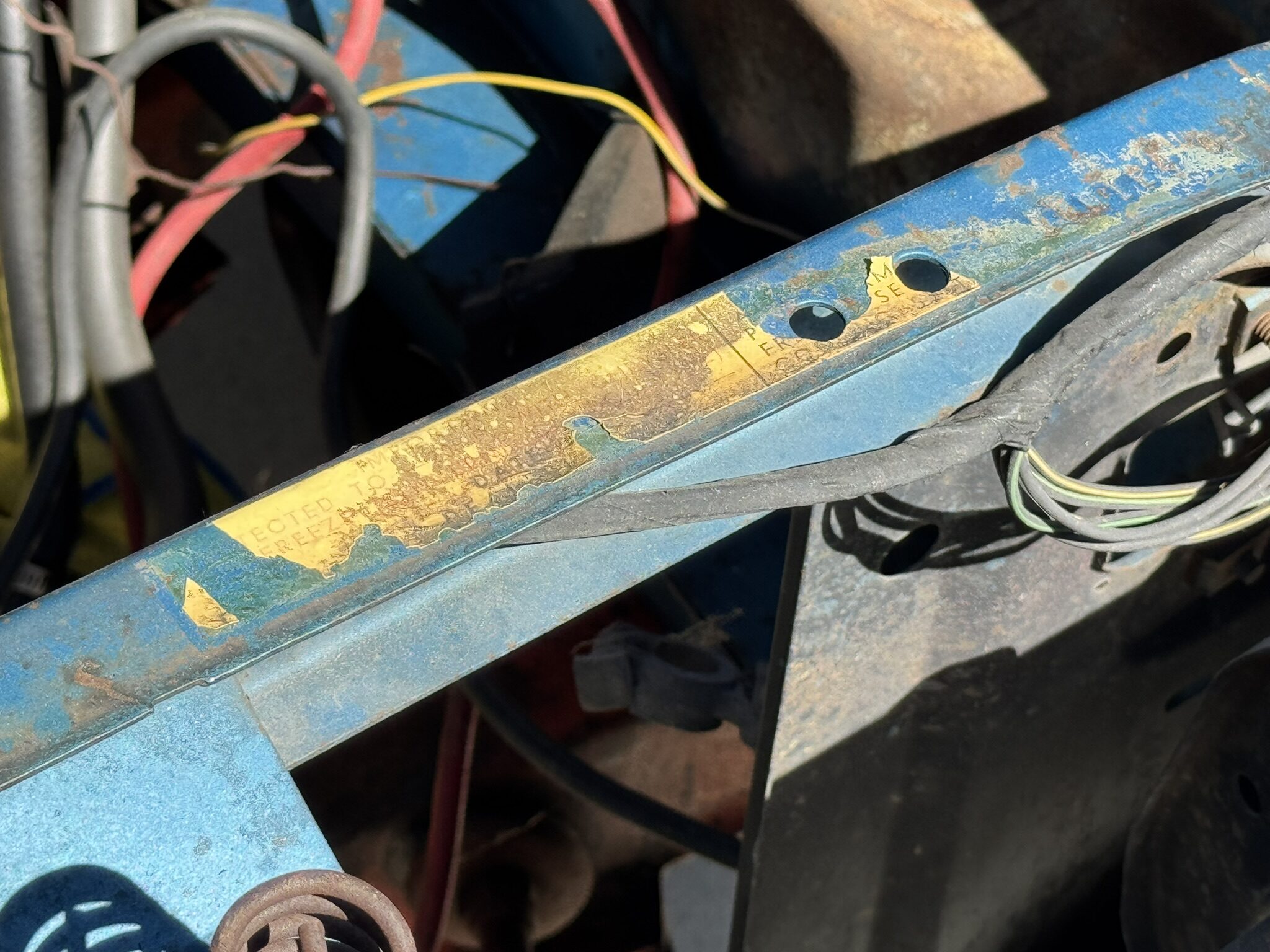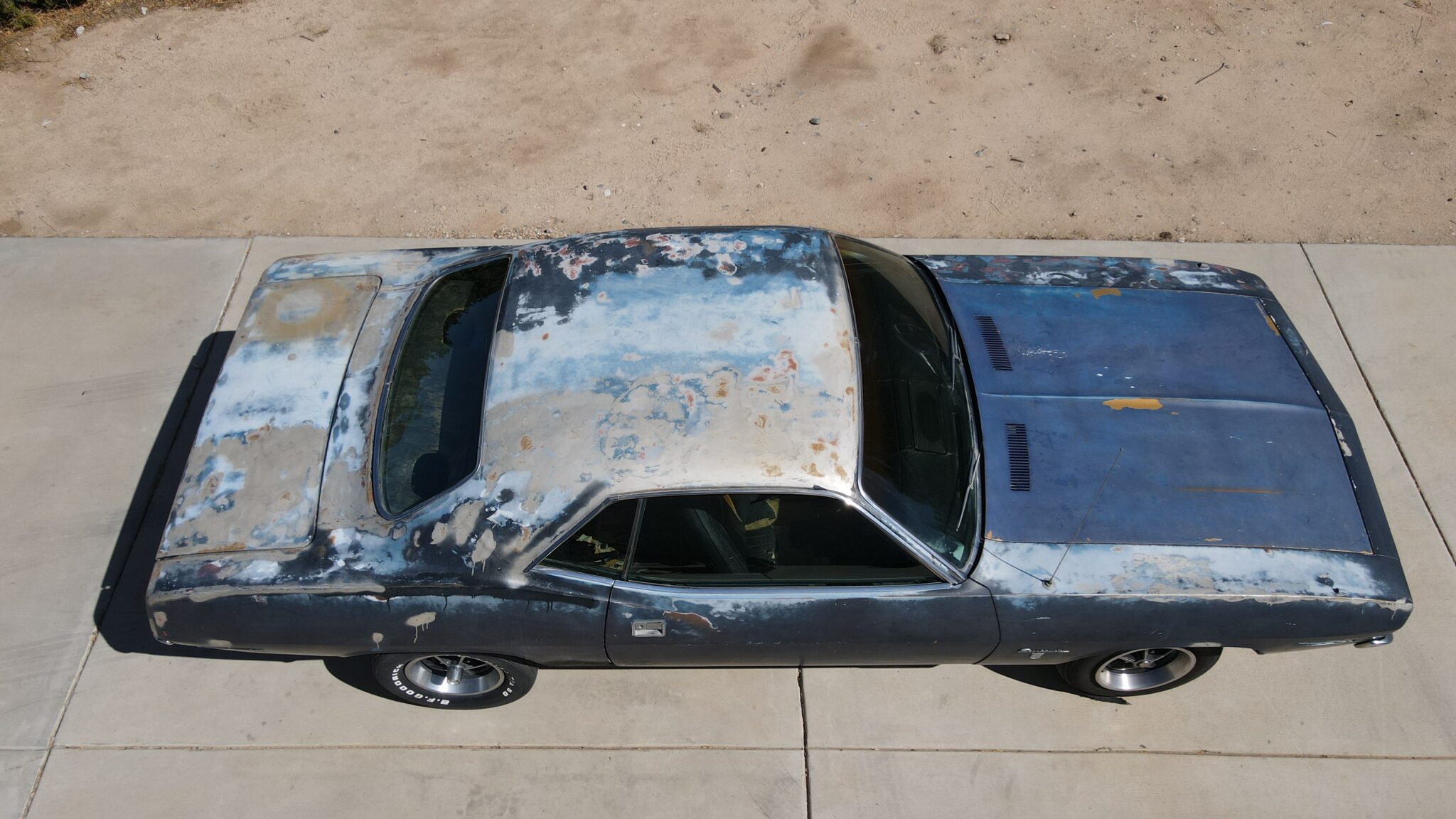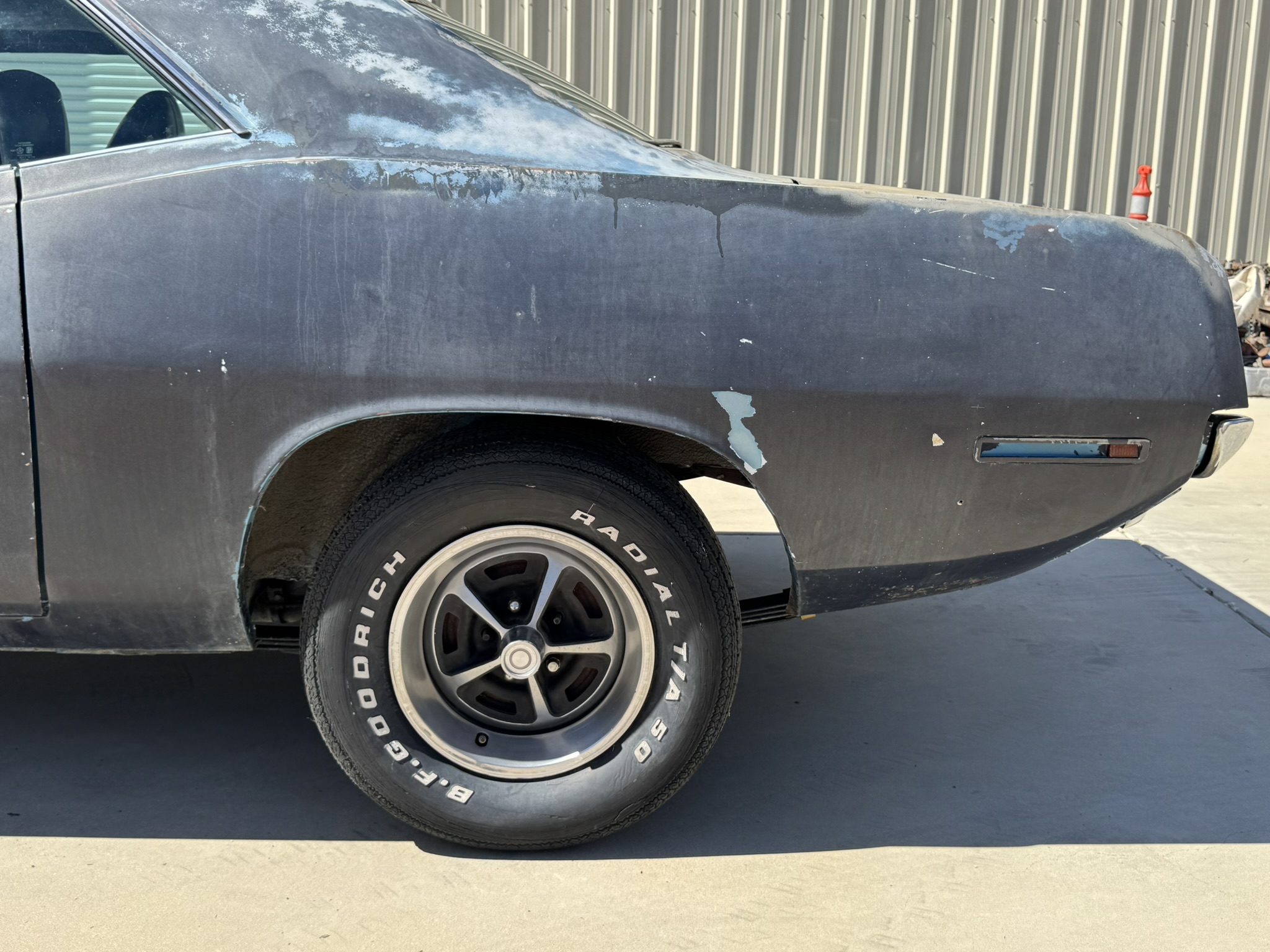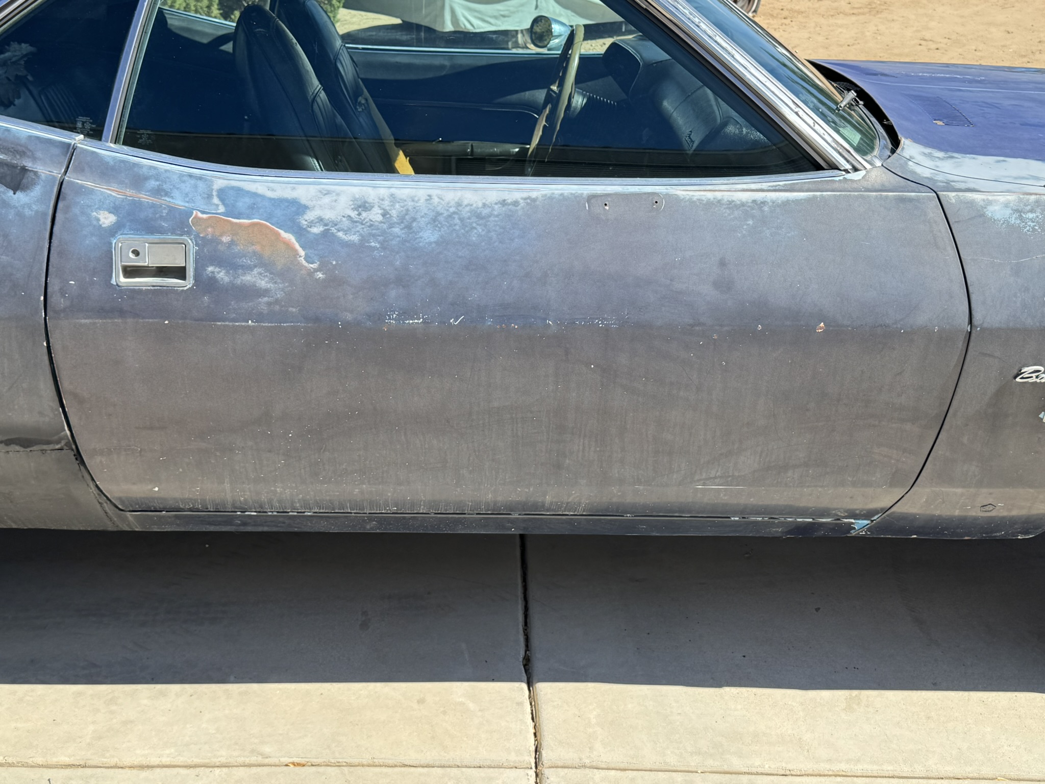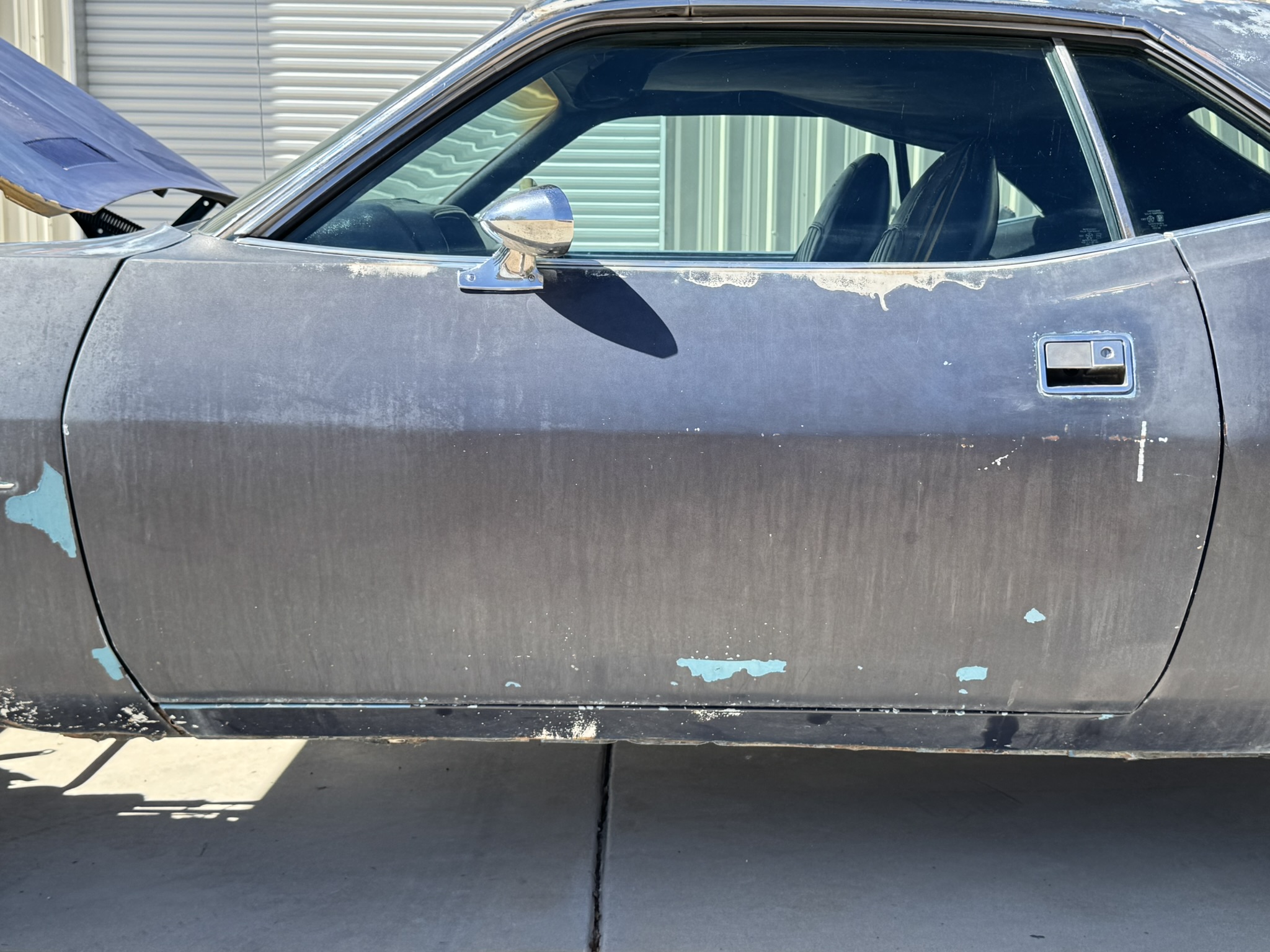 This Los Angeles built 1970 Barracuda Gran Coupe represents the upscale side of Mopar's pony car lineup. The Gran Coupe package elevated the Barracuda with luxury touches like leather seat inserts, dual consoles, woodgrain accents, and distinctive exterior badging that set it apart from standard models. This rolling chassis comes complete with a 383ci V8 that was pulled from a running car, ready to transform this six-cylinder luxury cruiser into a proper muscle machine. The original B5 Bright Blue Poly paint still shows throughout the engine bay, floors, and body panels, telling the story of its factory-correct heritage. The factory fender tag is present with the rarely seen inspection tag still underneath, appearing to have never been off the car.