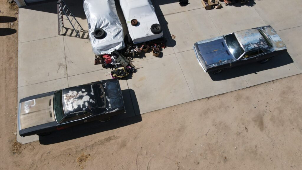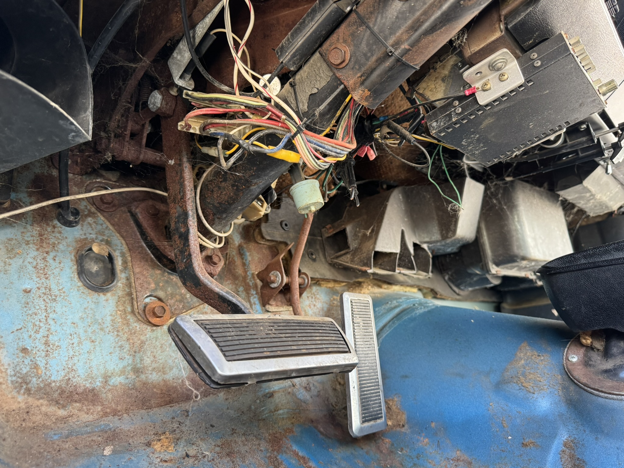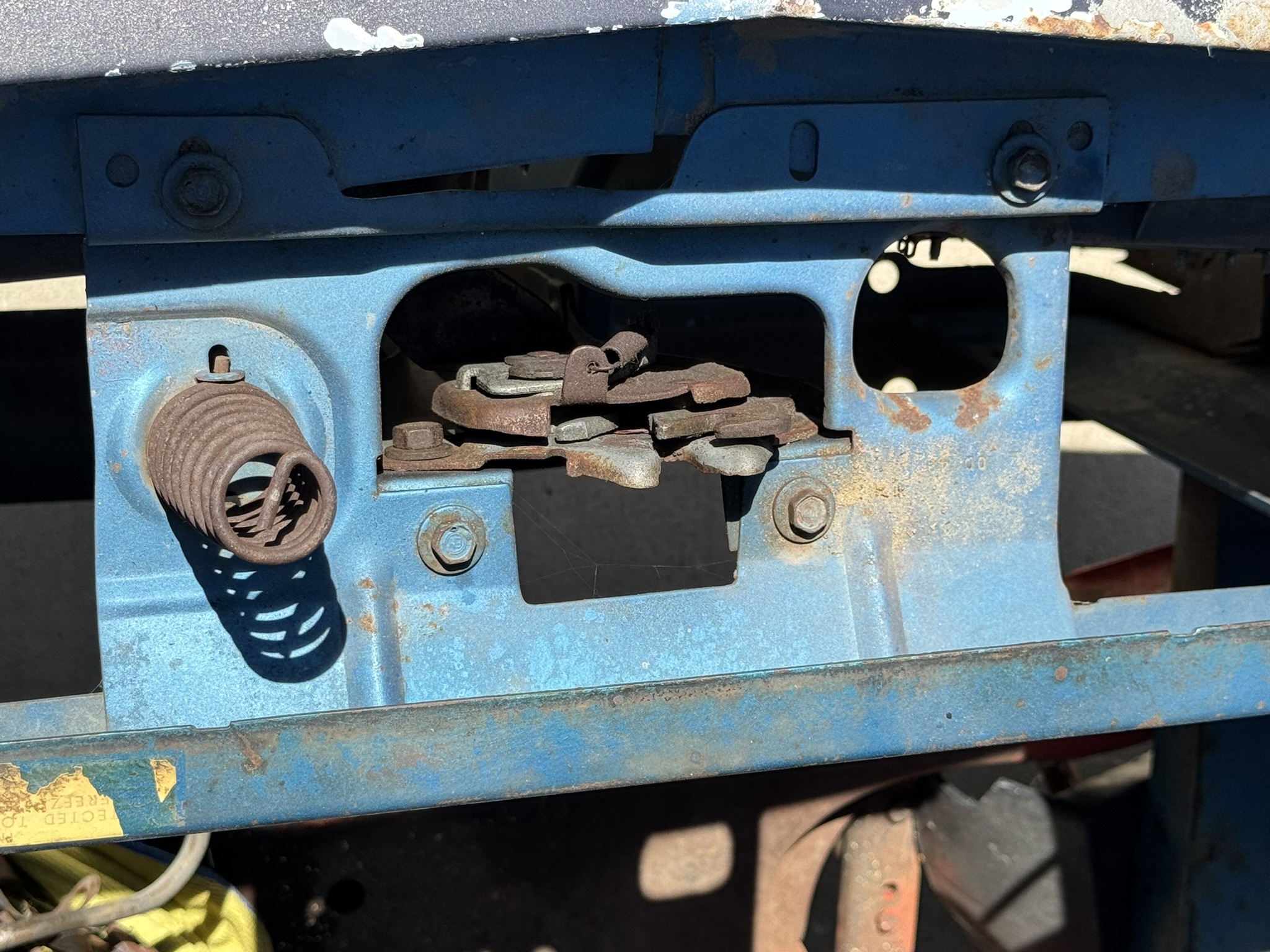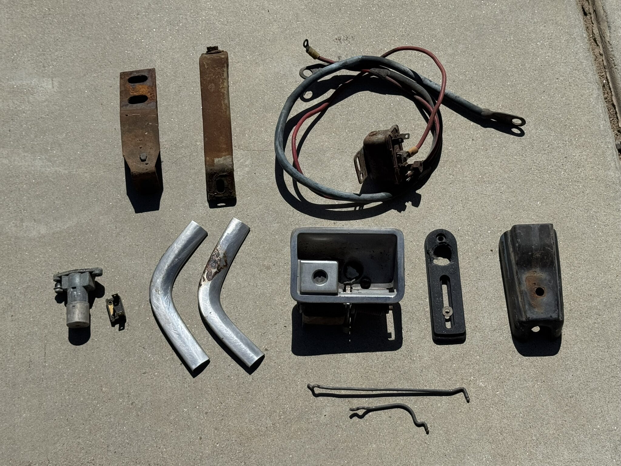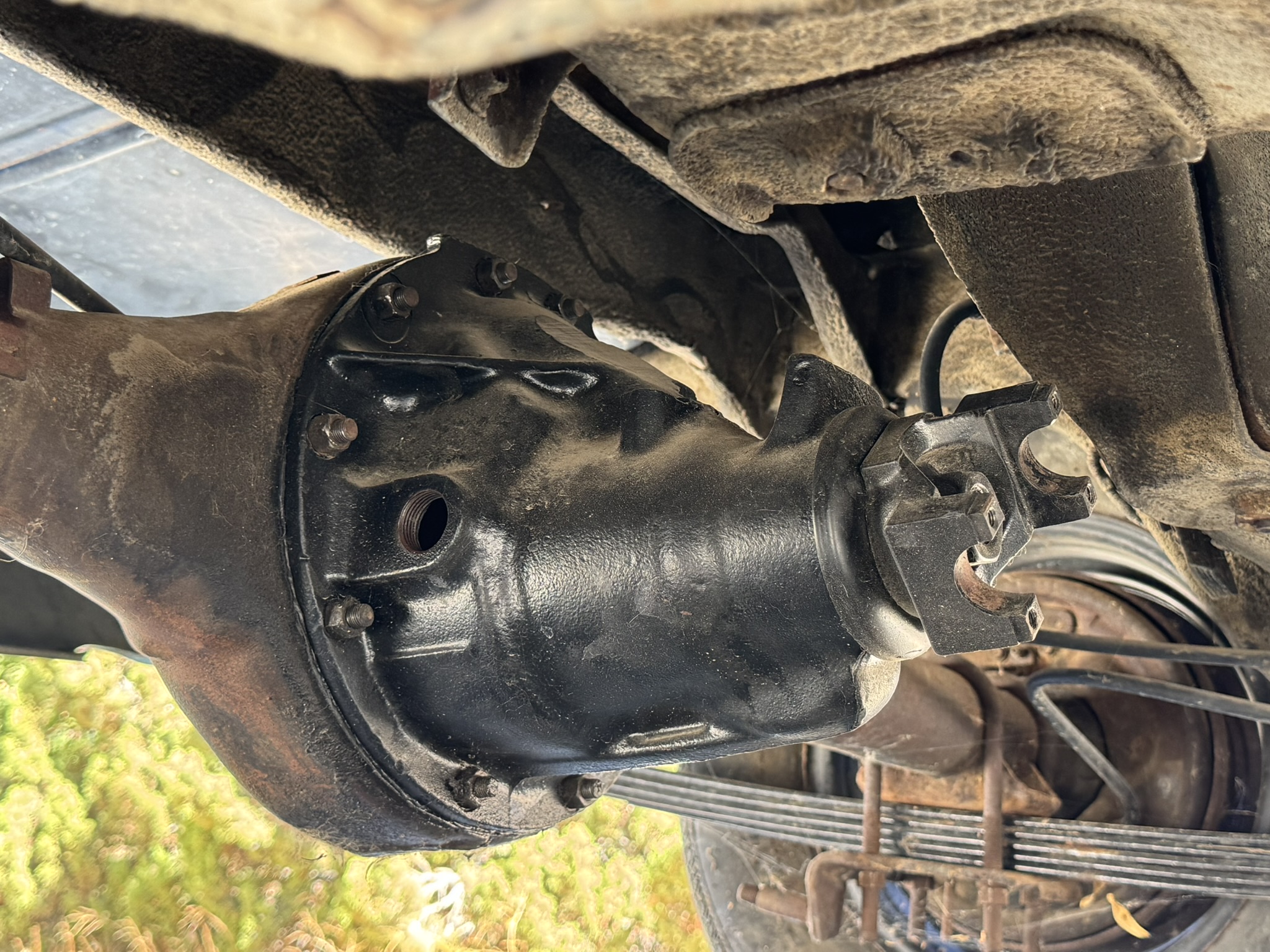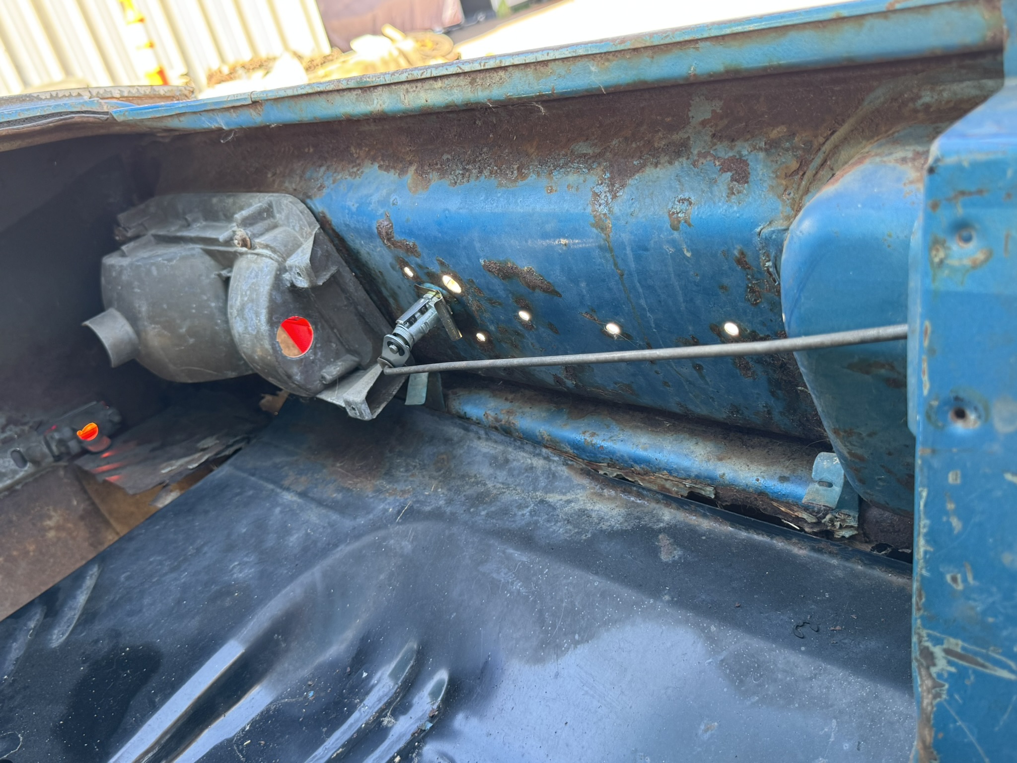 The missing Slant 6 and automatic transmission leave the drivetrain a blank slate. The 8 3/4 inch rear axle is ready for a performance makeover if desired. The drum brakes require a full inspection including shoes, lines, and hardware, or upgrade to disc brakes. Suspension bushings and shocks should be checked and replaced as necessary. The factory fuel tank and filler neck will need to be installed along with new rubber lines. A driveshaft and battery are needed. The tires are rollers enough for transport and storage, but need to be replaced.