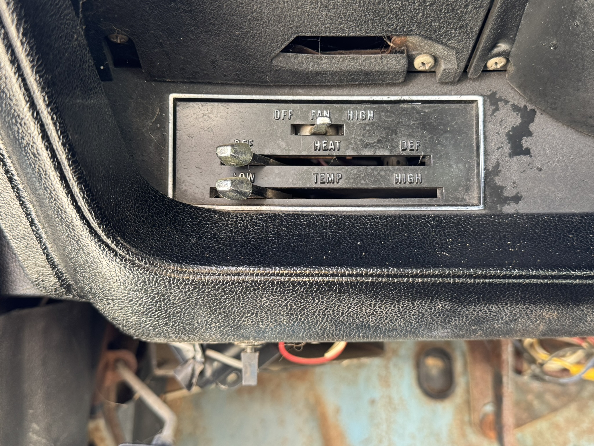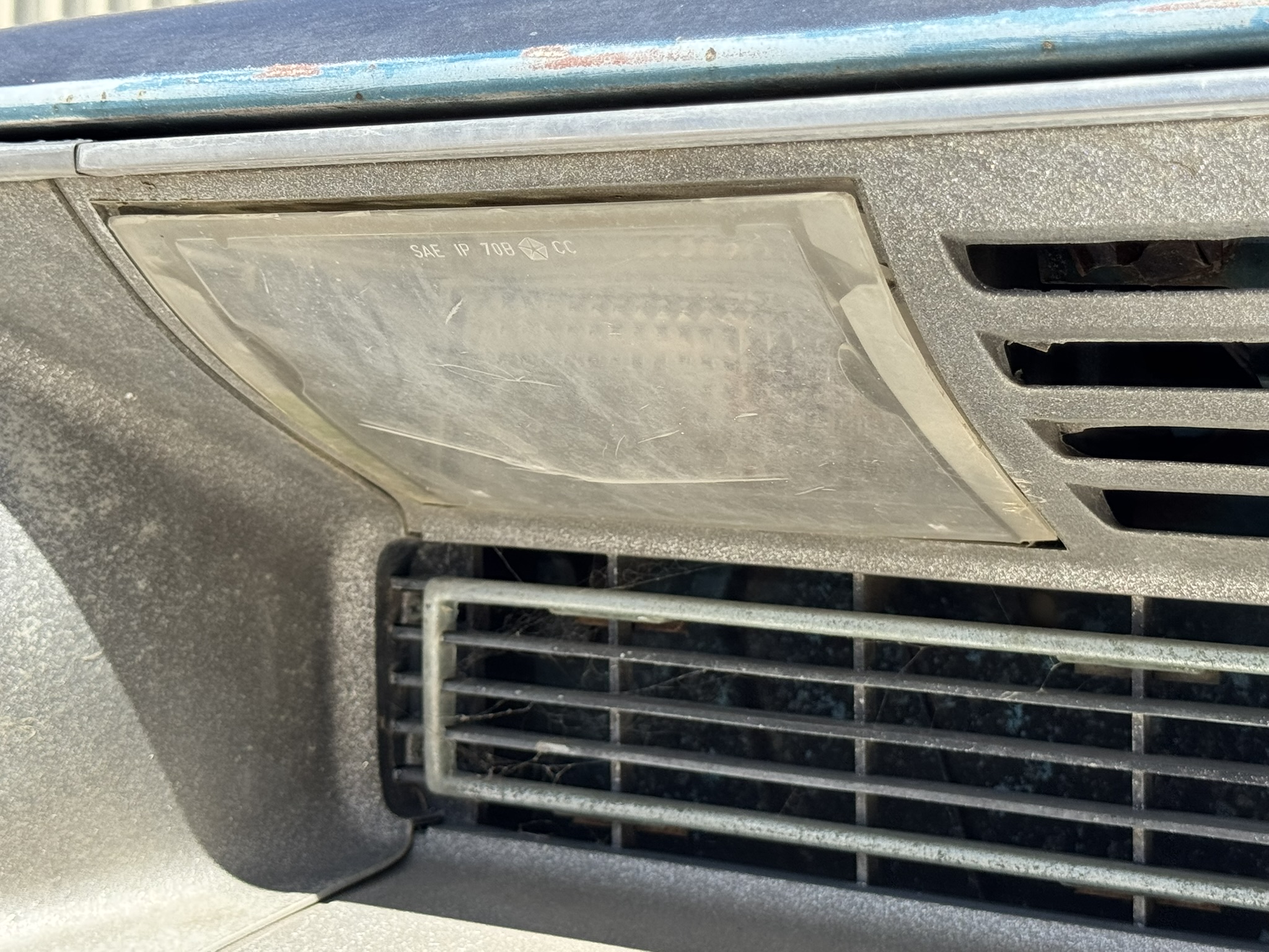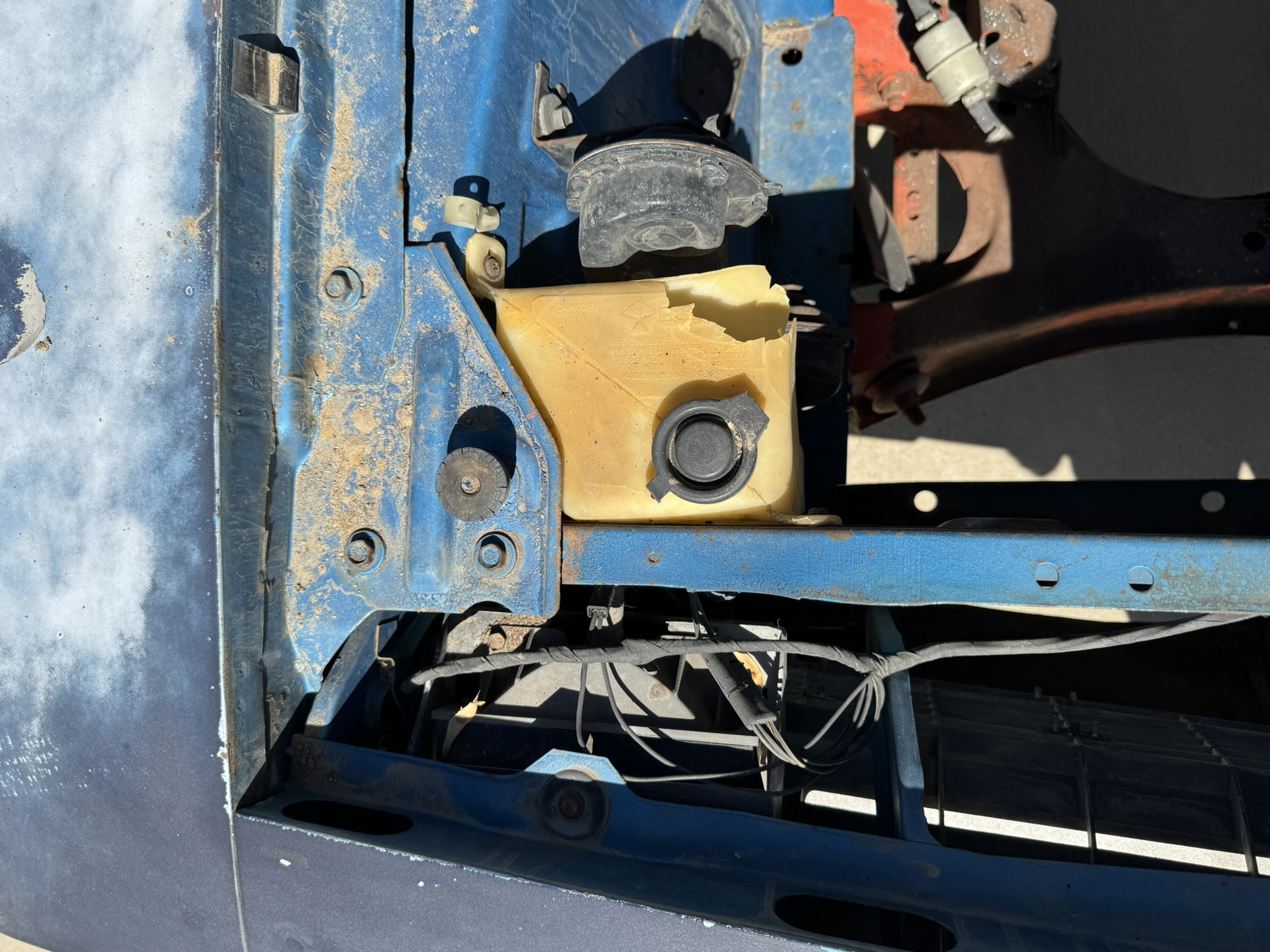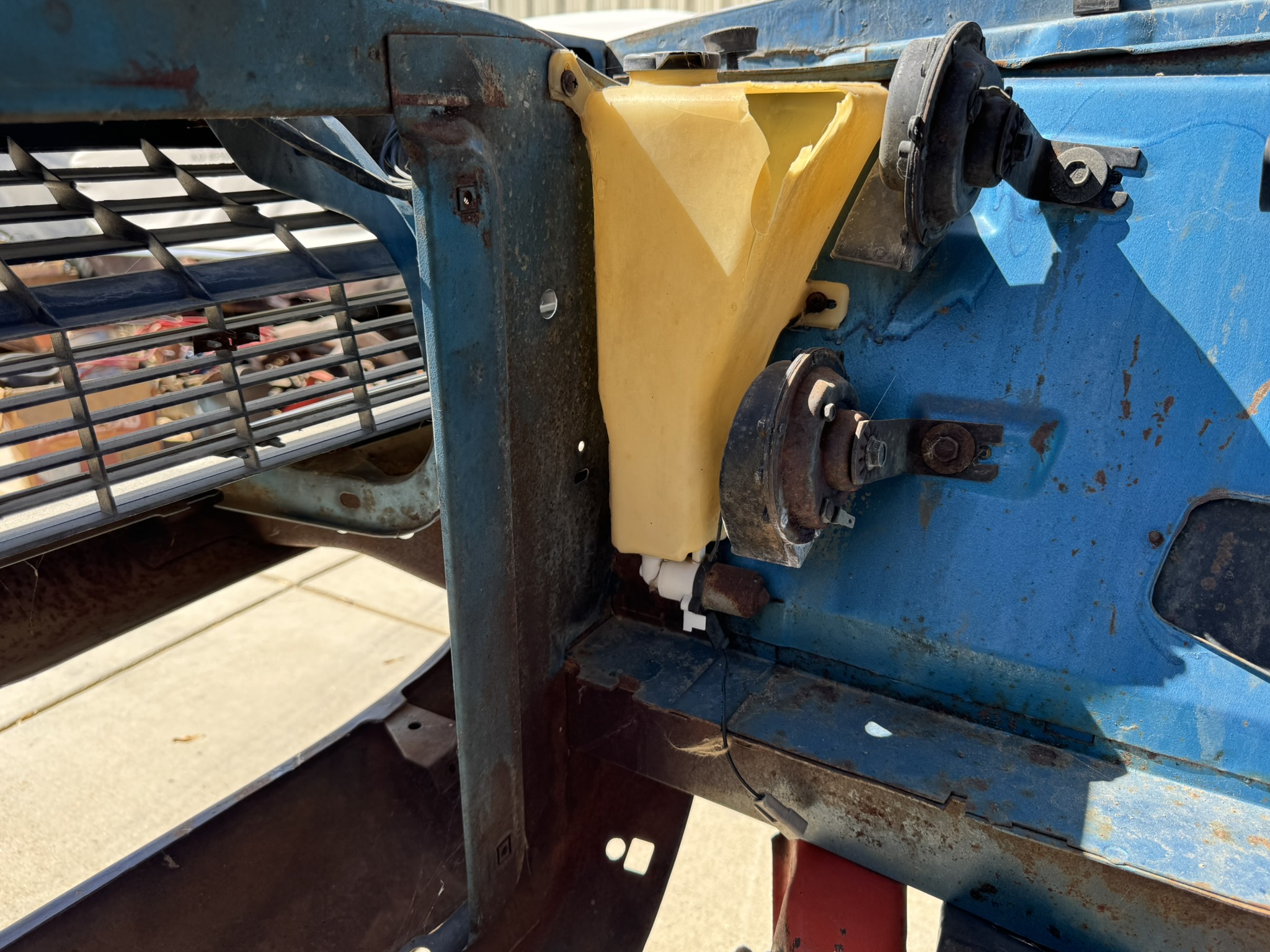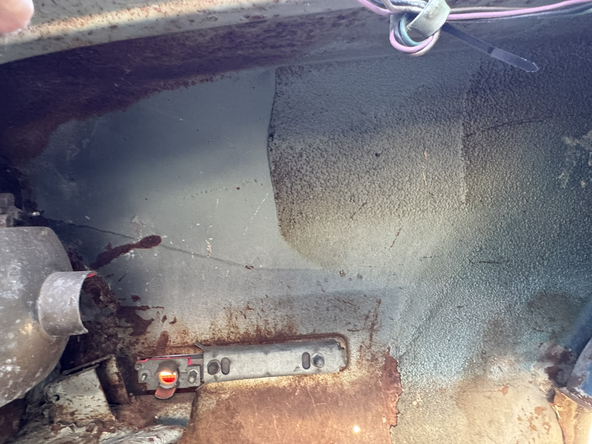 Finished originally in B5 Bright Blue Poly, the original paint can still be seen in many areas on the car. The only bondo identified on the car is a small section on the passenger side quarter panel towards the tail. Both factory bumpers are in place and in very good condition. The hood is from a donor car, which opens, closes, and latches easily. The rest of the body is original sheet metal. The factory fender turn signals are in place. This car has the correct options to allow for a shaker hood, such as the 3 speed wiper motor. The doors and trunk close nicely, only requiring minor adjustment. The rust is minimal and limited to the passenger side lower quarter panel. There was a patch panel started on the same quarter panel that will need finishing. The trunk floor has been cut out even though it wasn't very rusty and a new trunk floor has been set in place. New trunk floor extensions are included as well. The grill and headlight buckets are original, all in great condition. All of the factory tinted glass is in place with the windshield showing scratches from windshield wipers without blades.