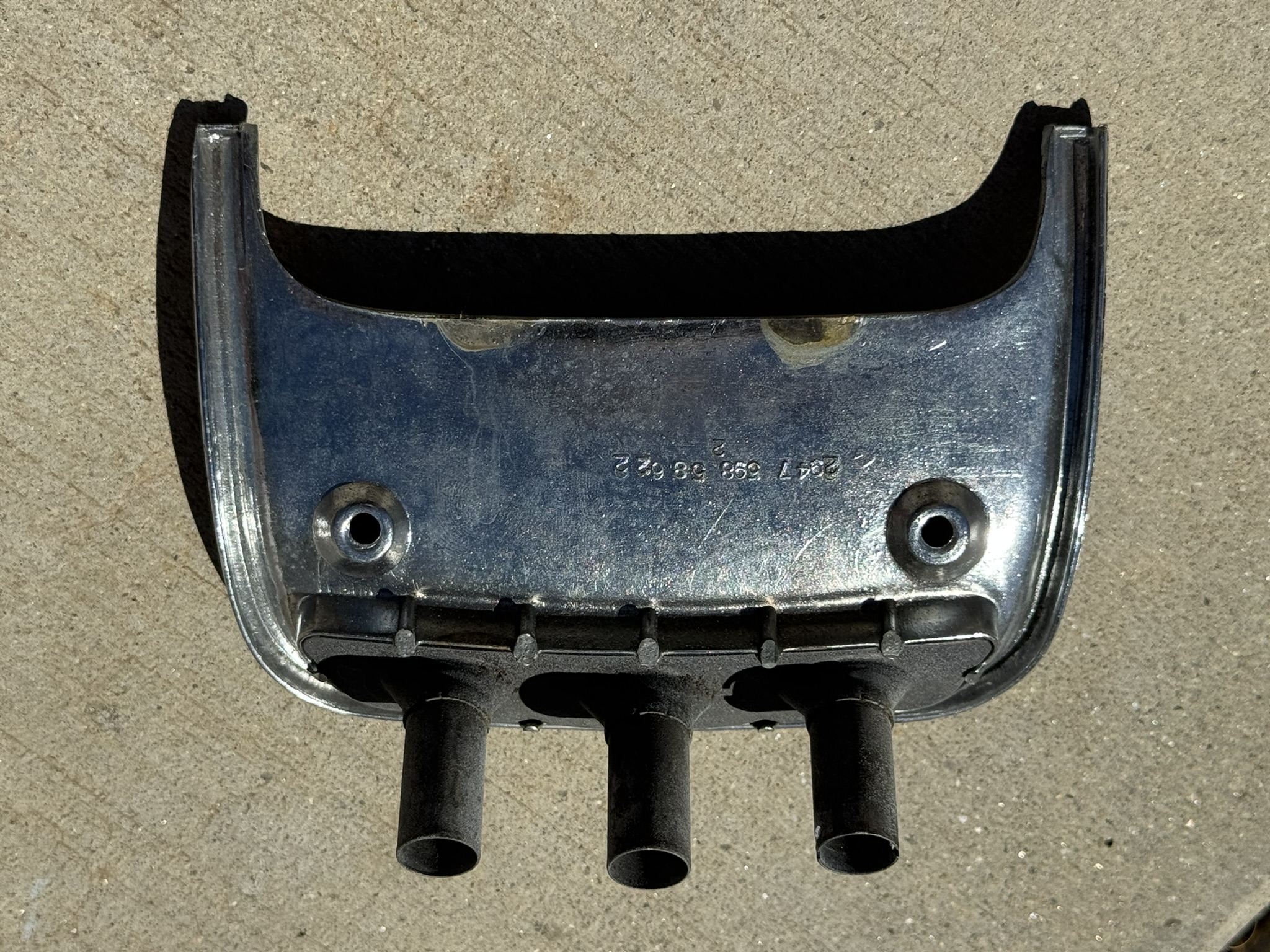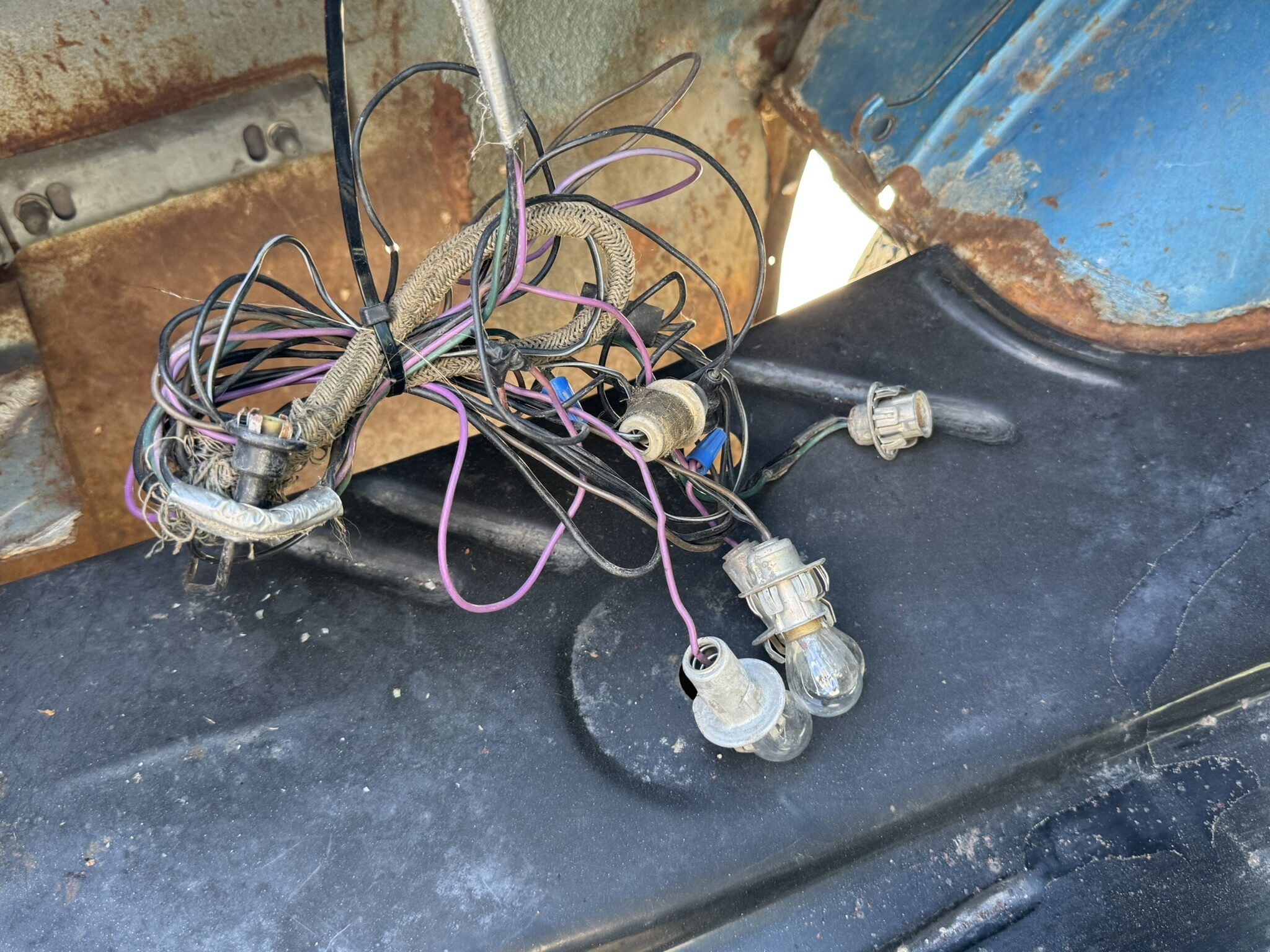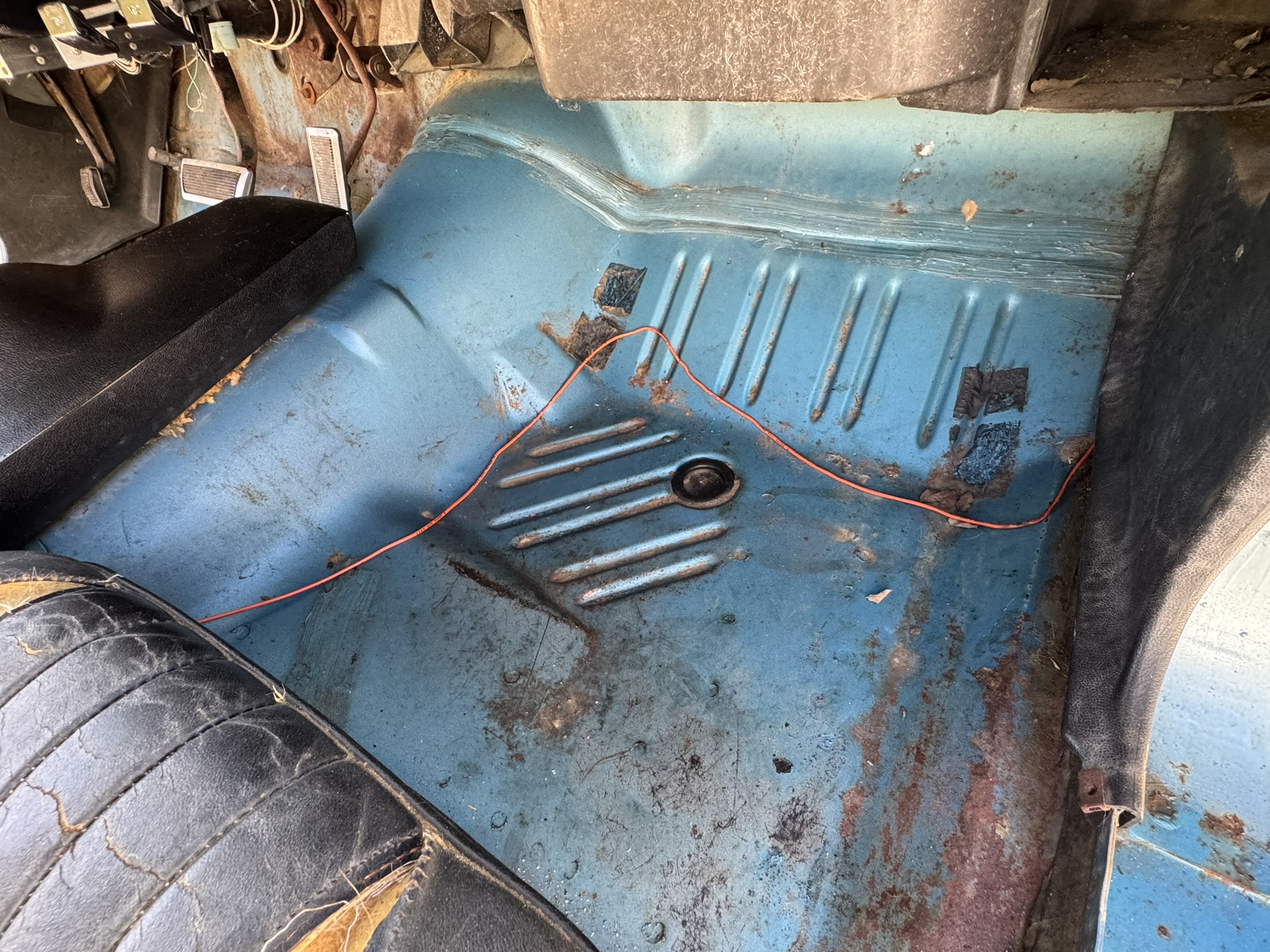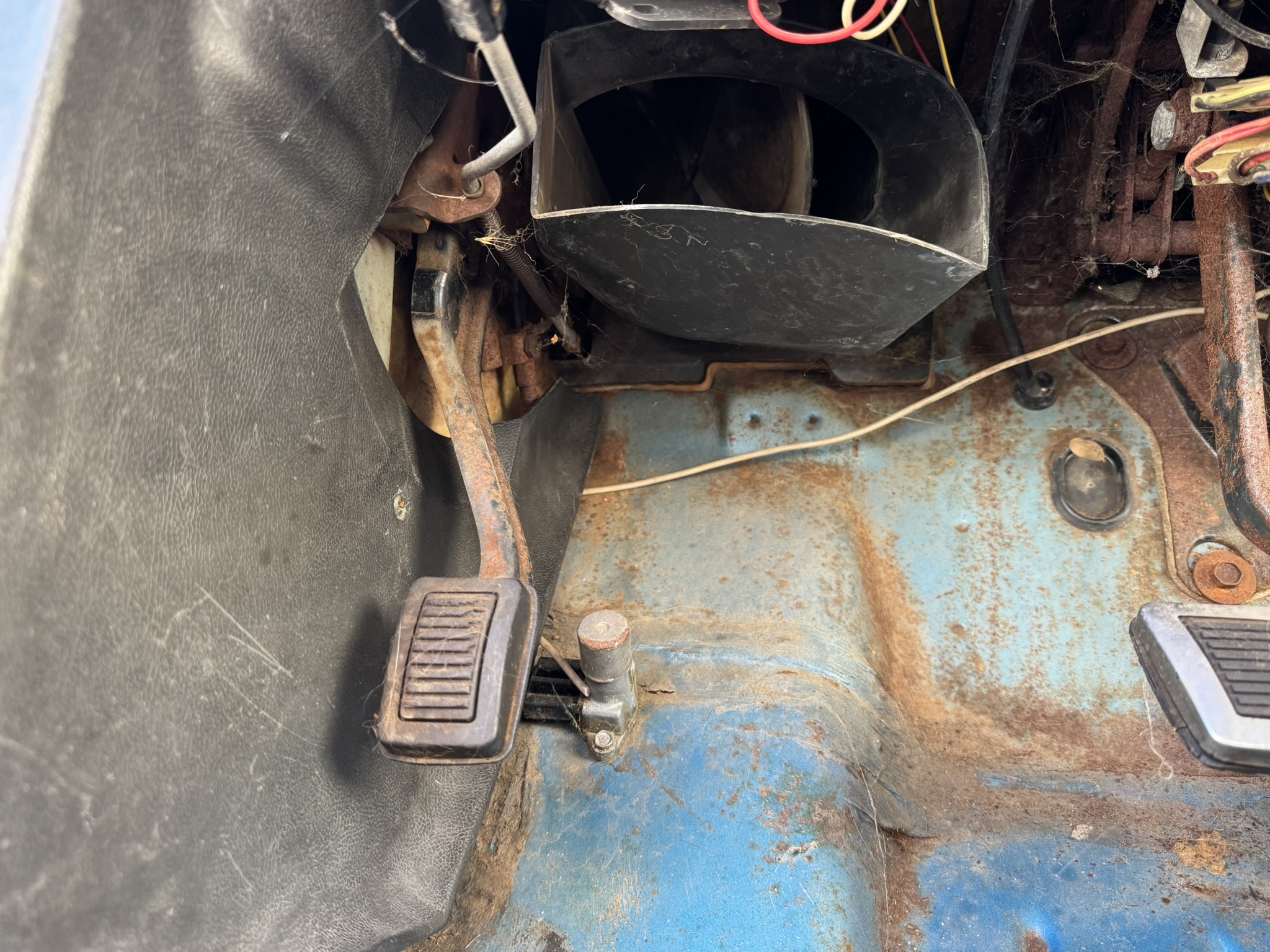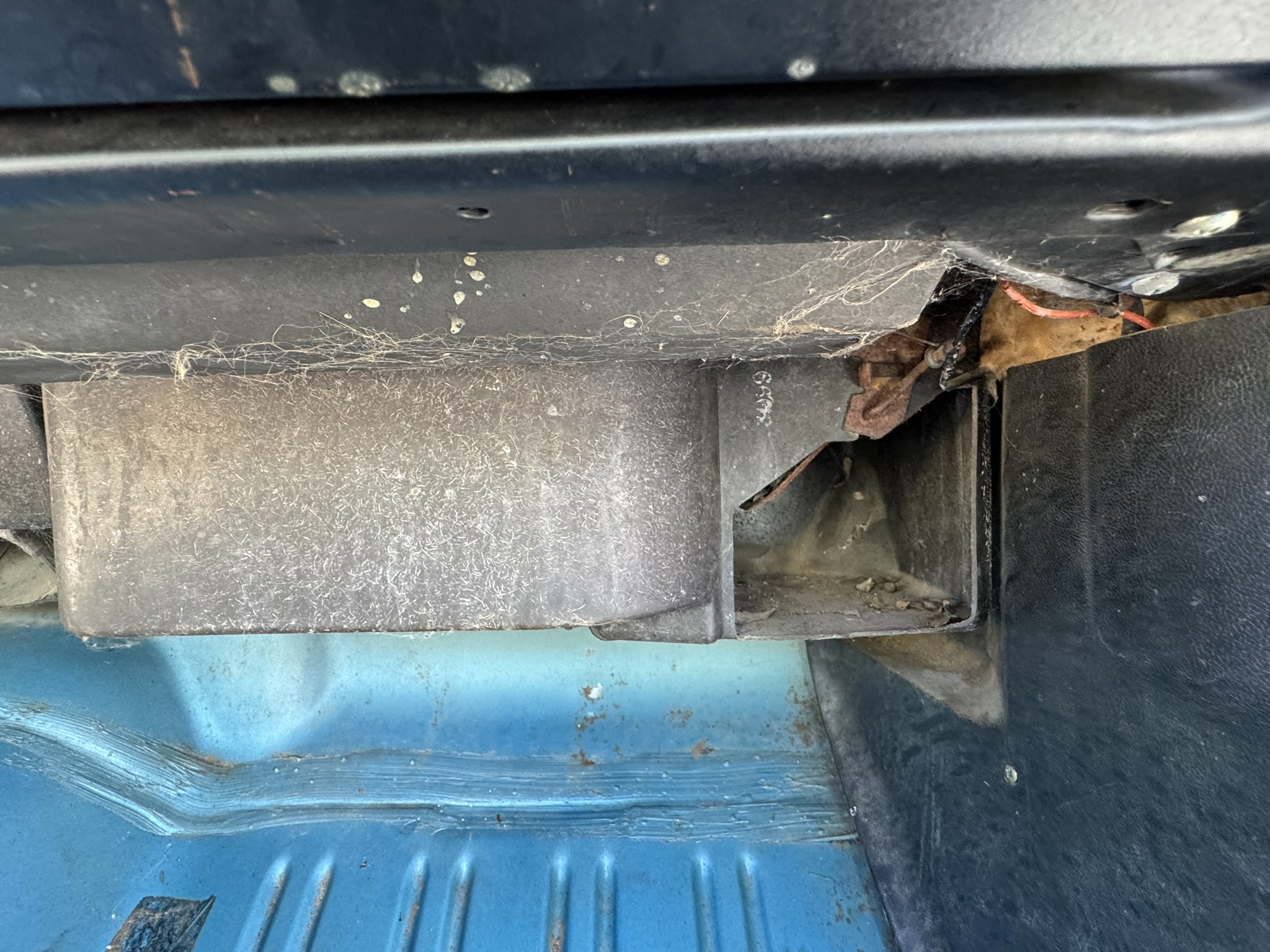 Finished originally in B5 Bright Blue Poly, the original paint can still be seen in many areas on the car. The only bondo identified on the car is a small section on the passenger side quarter panel towards the tail. Both factory bumpers are in place and in very good condition. The hood is from a donor car, which opens, closes, and latches easily. The rest of the body is original sheet metal. The factory fender turn signals are in place. This car has the correct options to allow for a shaker hood, such as the 3 speed wiper motor. The doors and trunk close nicely, only requiring minor adjustment. The rust is minimal and limited to the passenger side lower quarter panel. There was a patch panel started on the same quarter panel that will need finishing. The trunk floor has been cut out even though it wasn't very rusty and a new trunk floor has been set in place. New trunk floor extensions are included as well. The grill and headlight buckets are original, all in great condition. All of the factory tinted glass is in place with the windshield showing scratches from windshield wipers without blades.