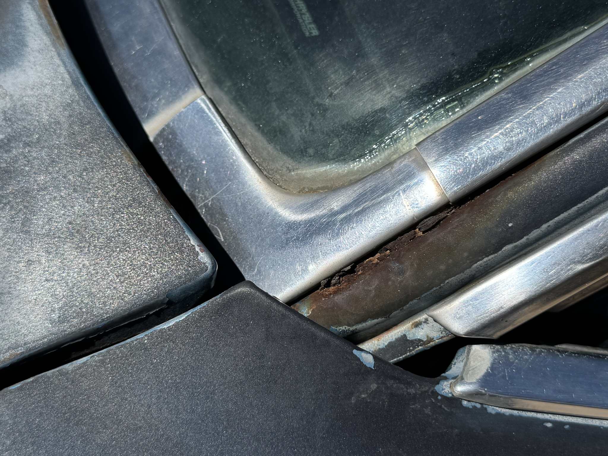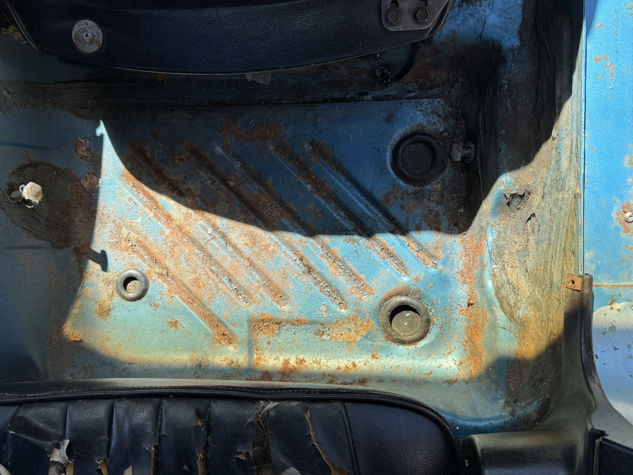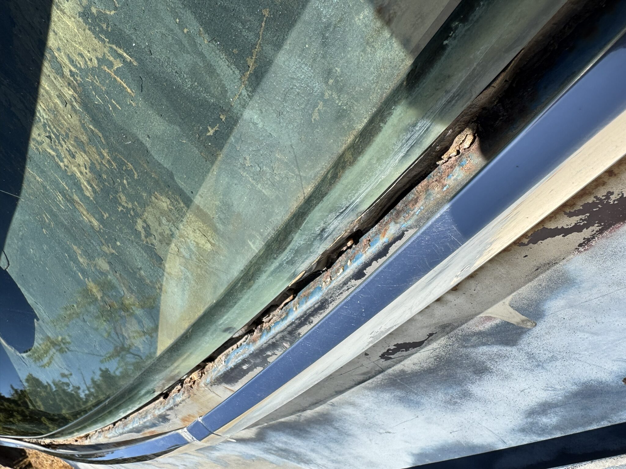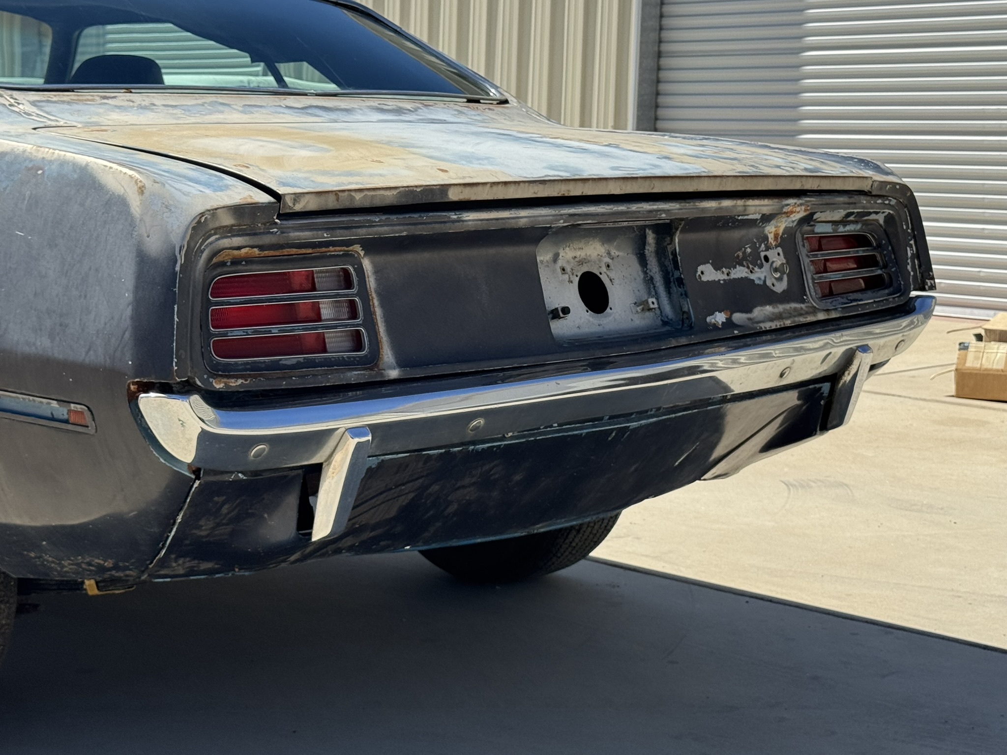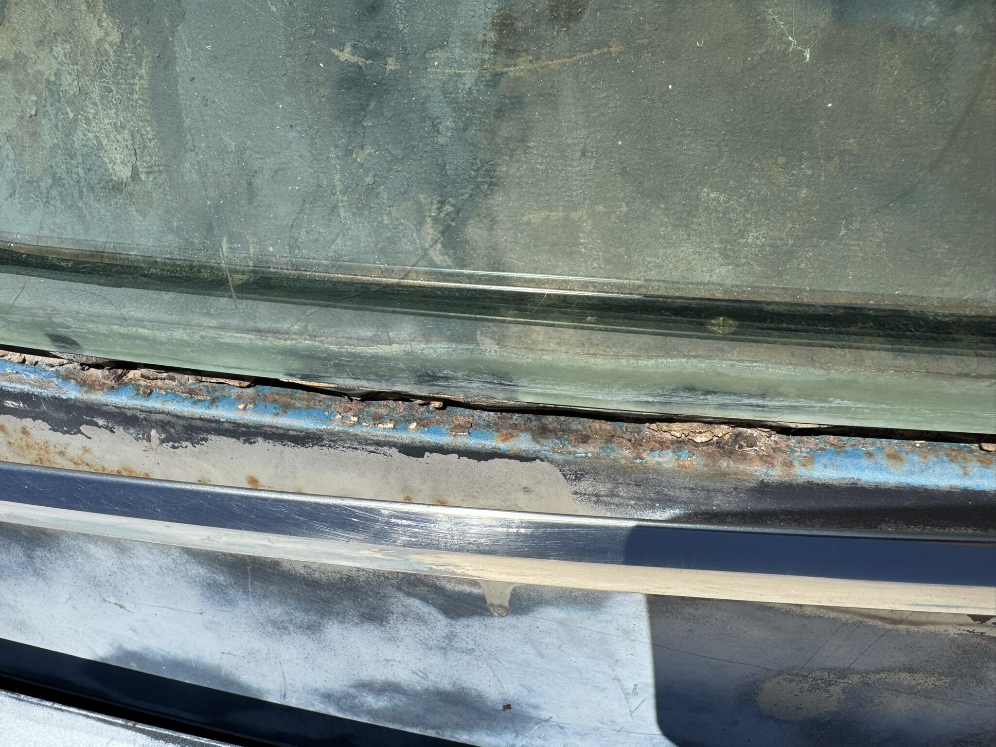 Bodywork will be focused on the passenger lower rear quarter where there is rust and the area that has a patch panel started. The rear part of the quarter can be repaired with patch panel. The factory seams on the roof need to be ground out and refilled. All new weather stripping is required. Both license plate brackets are included