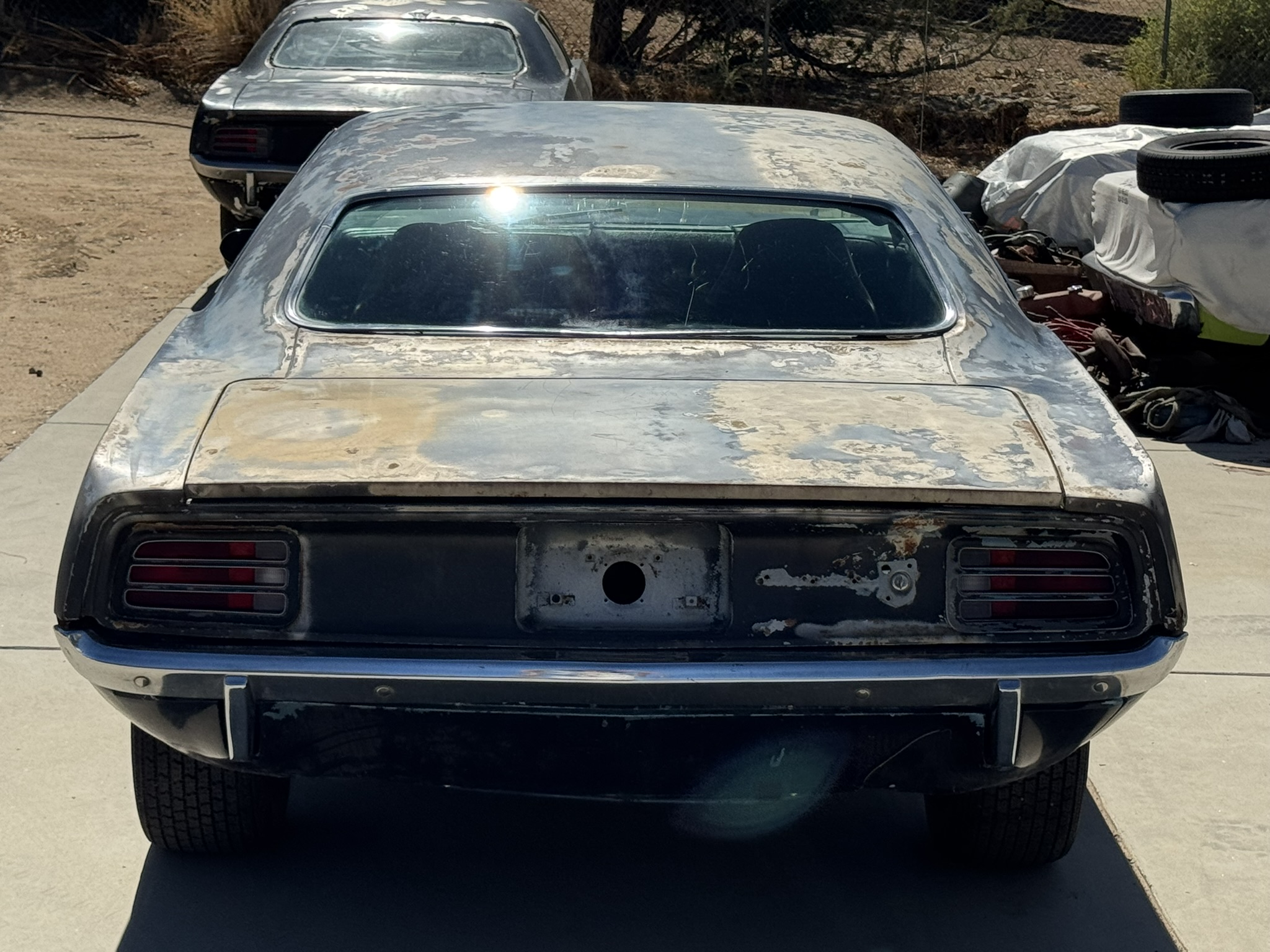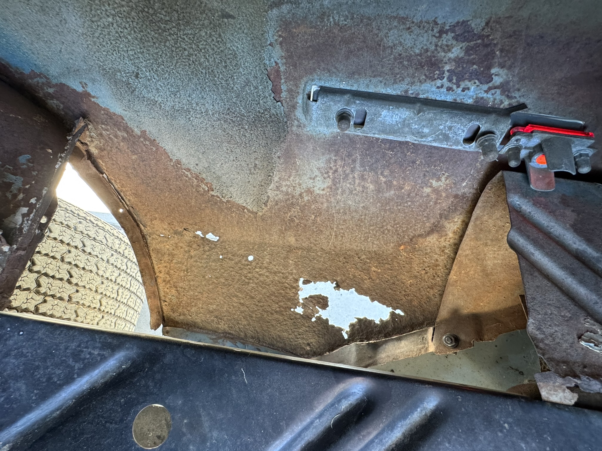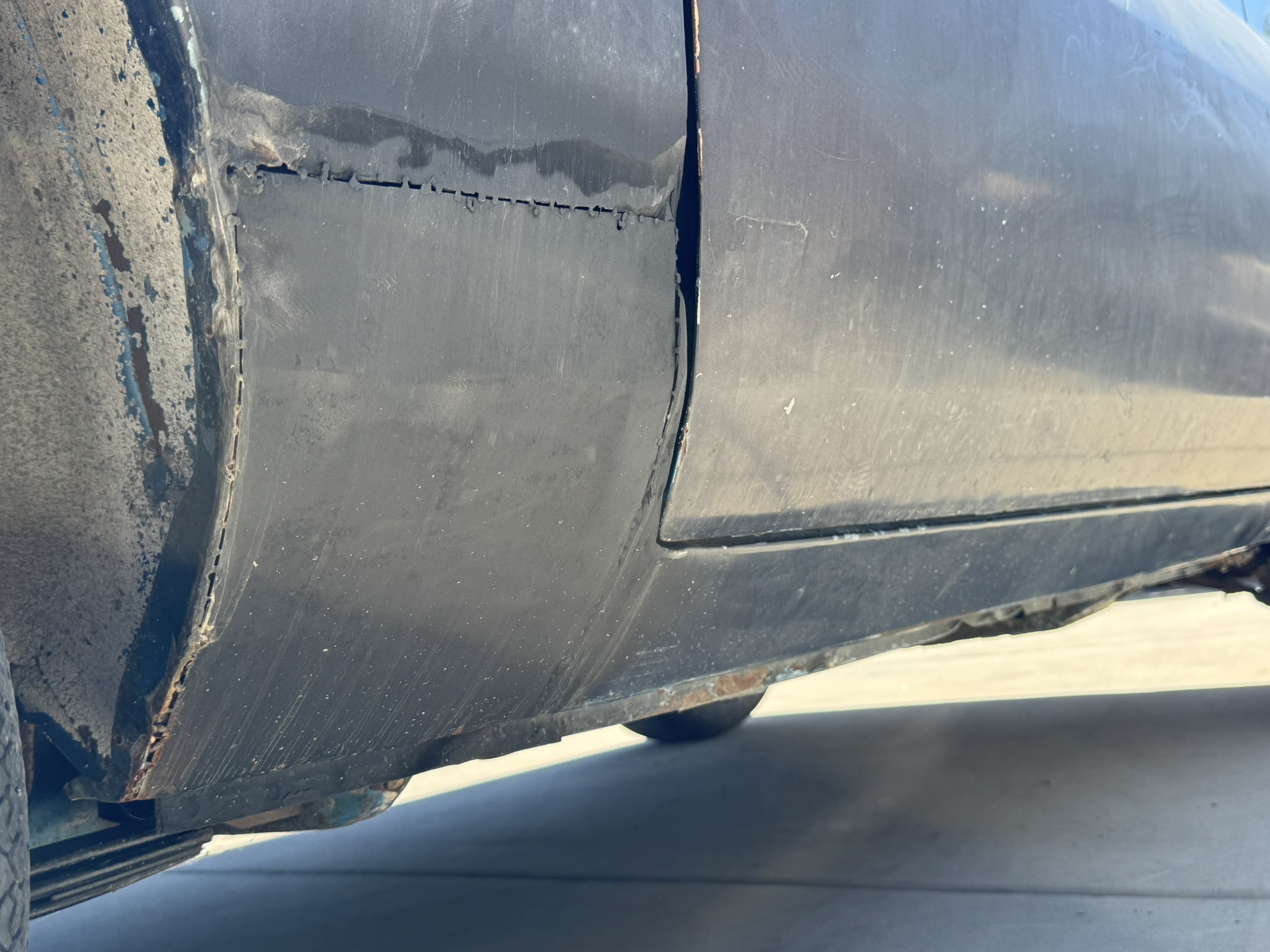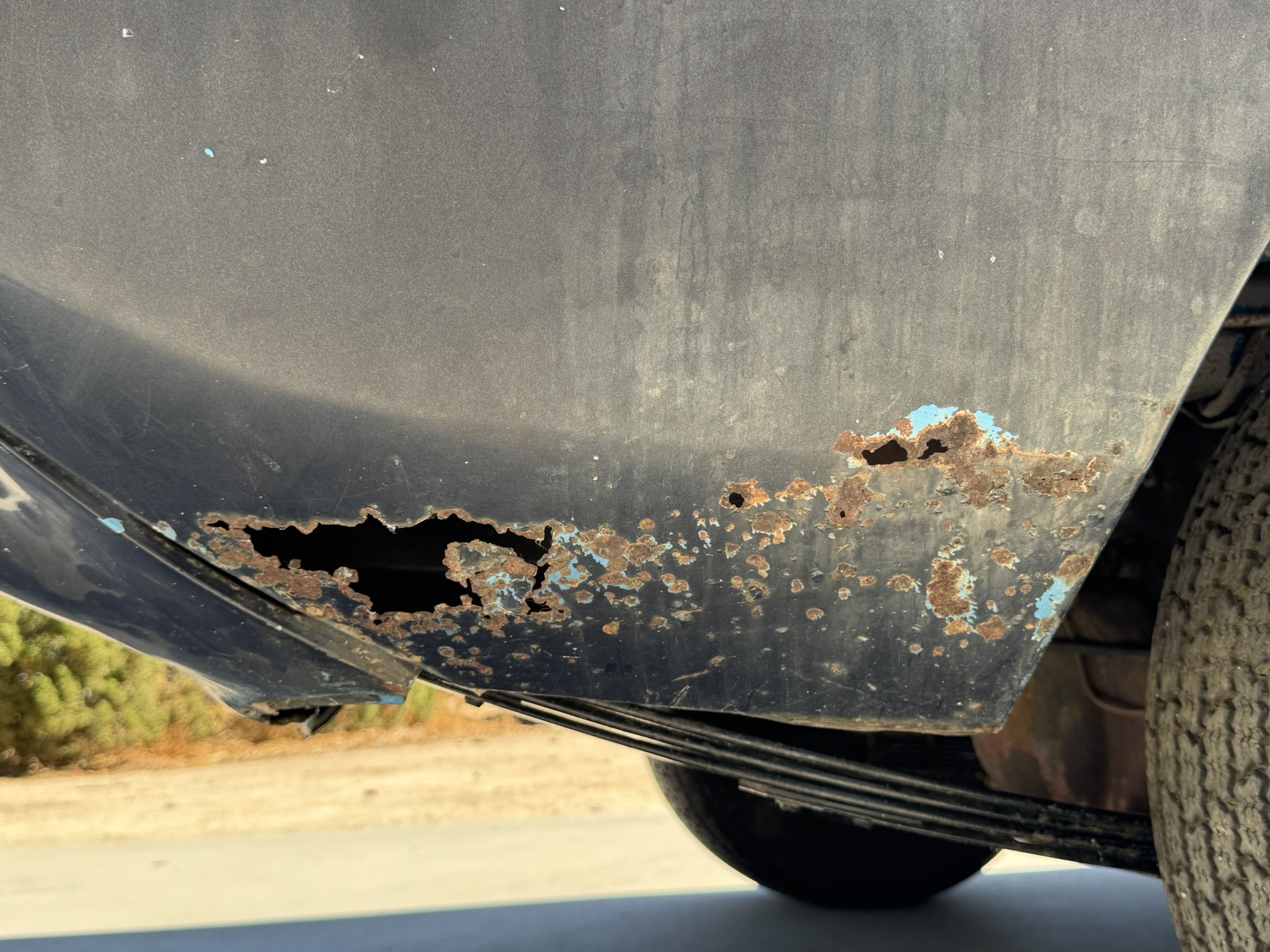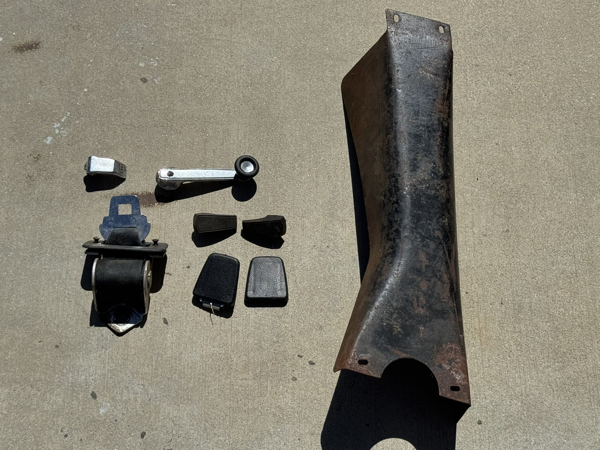 Bodywork will be focused on the passenger lower rear quarter where there is rust and the area that has a patch panel started. The rear part of the quarter can be repaired with patch panel. The factory seams on the roof need to be ground out and refilled. All new weather stripping is required. Both license plate brackets are included