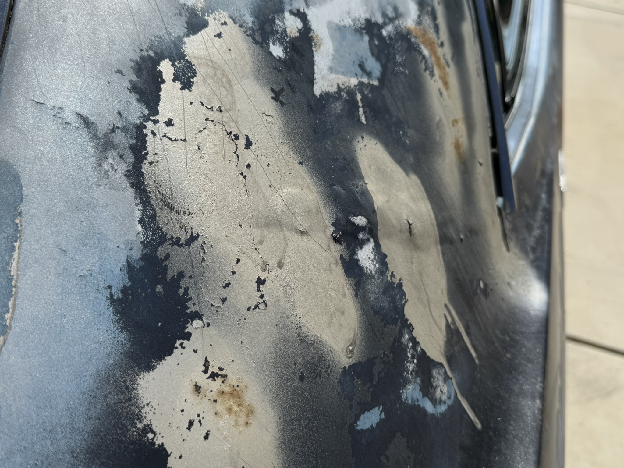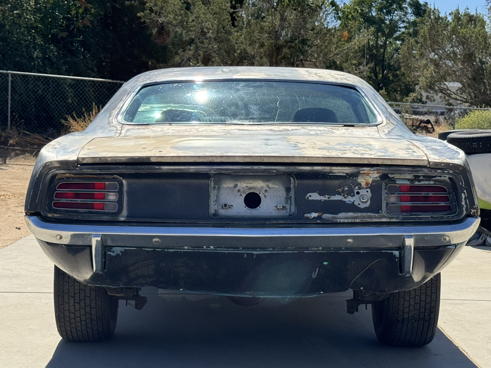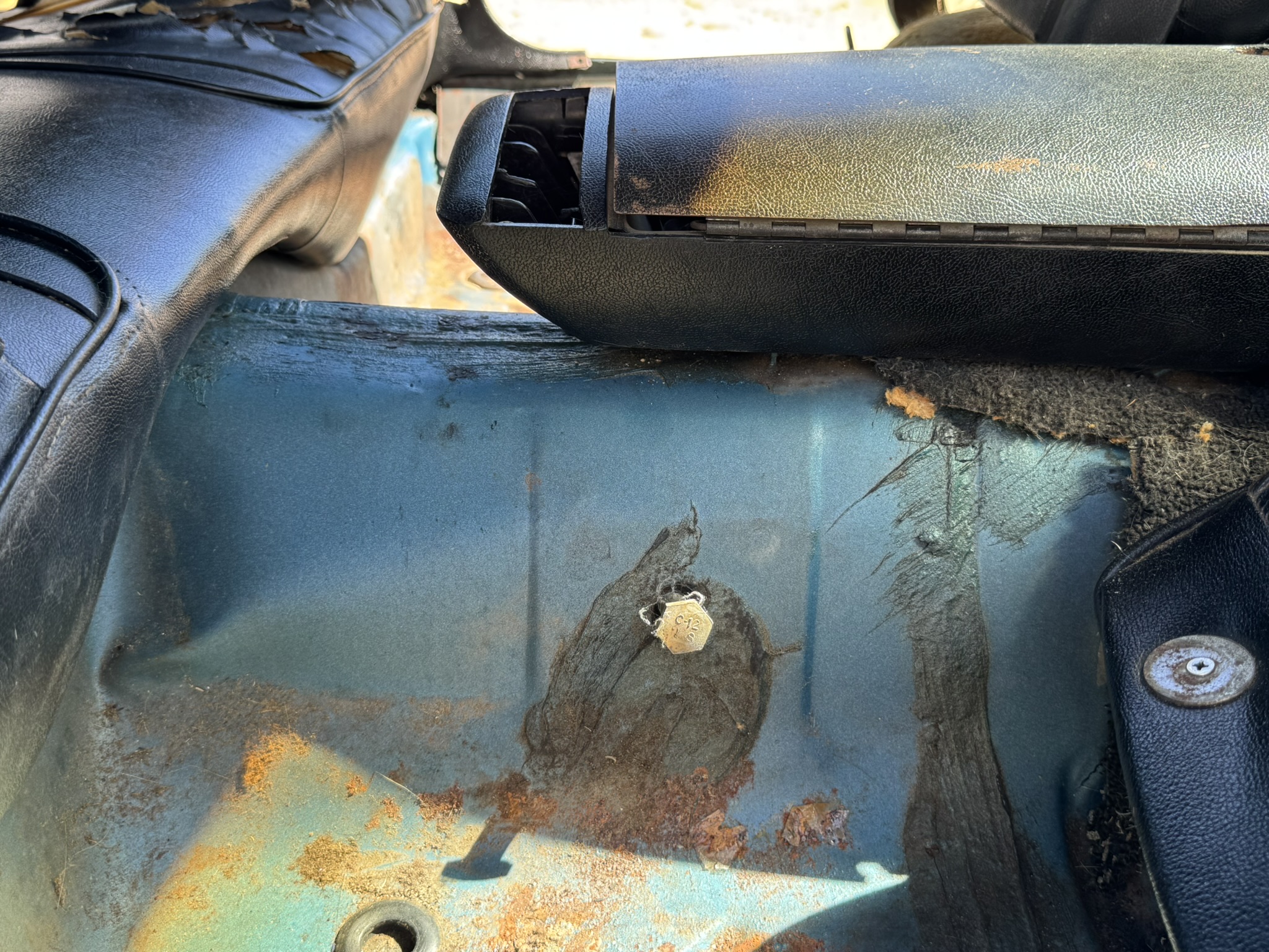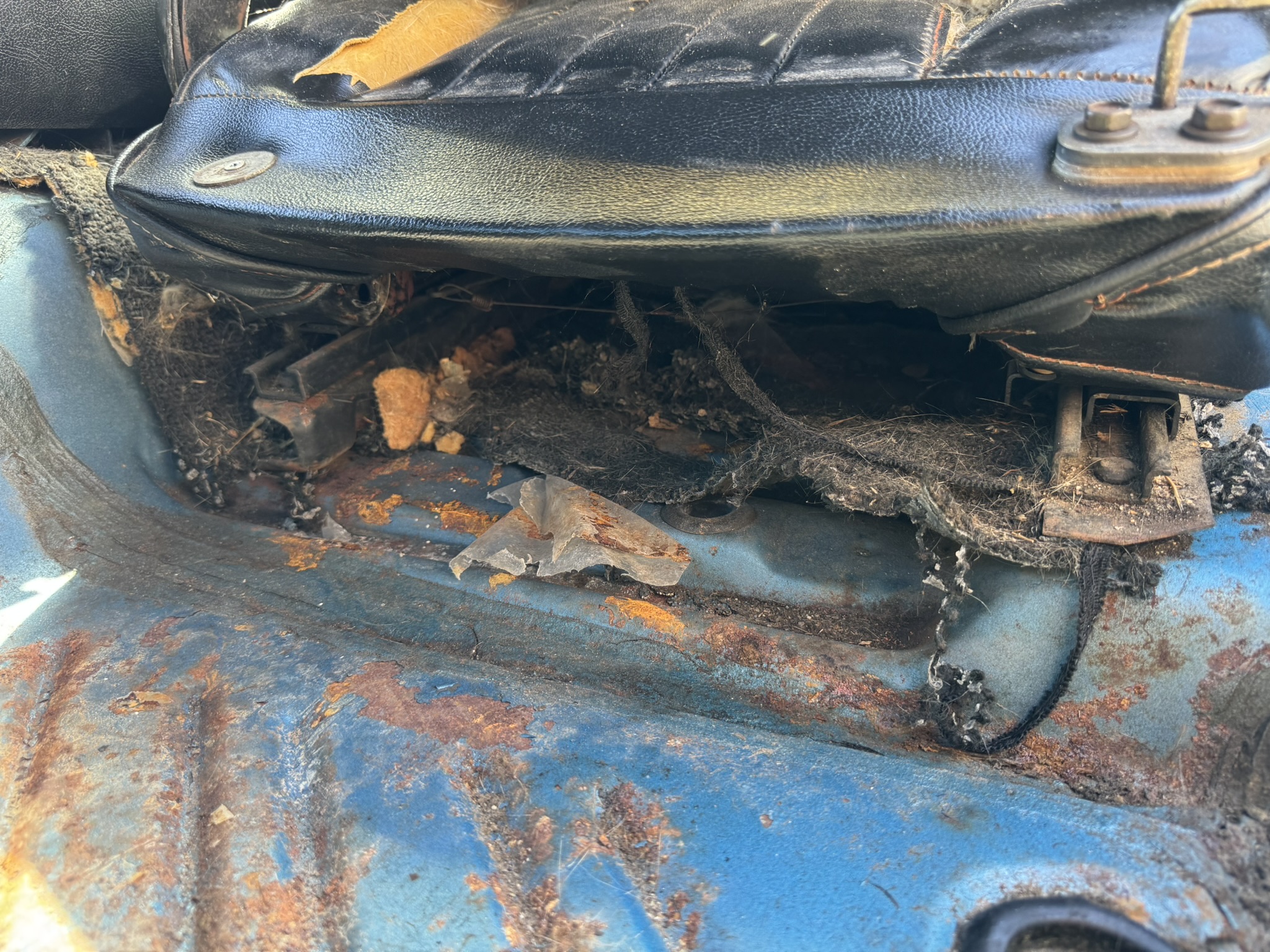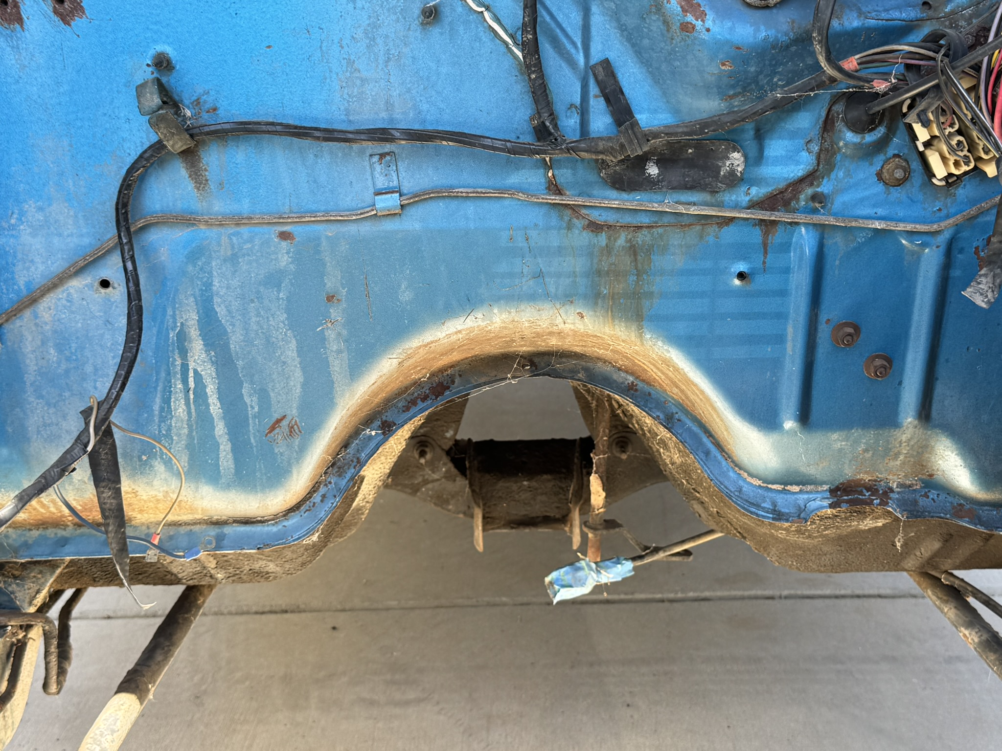 Bodywork will be focused on the passenger lower rear quarter where there is rust and the area that has a patch panel started. The rear part of the quarter can be repaired with patch panel. The factory seams on the roof need to be ground out and refilled. All new weather stripping is required. Both license plate brackets are included